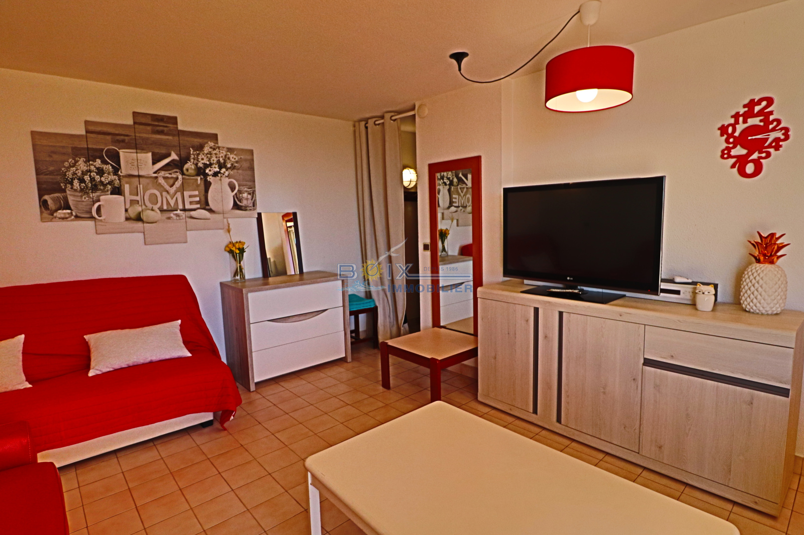 Location de vacances à Sète, située dans le célèbre quartier de La Corniche, dans une résidence à proximité des plages et offrant piscine, pataugeoire, terrains de tennis, terrain de volley, boulodrome et laverie. Ce charmant studio cabine pour 4 personnes en rez de jardin comprend un séjour canapé convertible, télévision écran plat, une kitchenette équipée avec four micro-ondes/grill, plaques chauffantes, réfrigerateur et lave-vaisselle, salle de bains avec wc, cabine avec 2 lits superposés. La terrasse est équipée du salon de jardin, vue sur la mer et la piscine de la résidence. L'appartement posséde un parking privé en sous-sol. Vous profiterez d'une situation idéale pour des vacances en allant à la plage à pied et en séjournant dans un quartier vivant à l'année grâce à ses commerces, ses restaurants, son casino, un rendez-vous hebdomadaire pour son marché le jeudi et la brocante du lundi. Vous pourrez rejoindre le port et le centre-ville très facilement à pied ou en bus. Le prix est de 340€/semaine en hors saison et de 790€/semaine en trés haute saison. Bon plan hors juillet/août, en réservant 2 semaines consécutives, la troisième est offerte (en cas de chevauchement des périodes, la semaine offerte est celle au tarif le plus bas). Les frais de dossiers sont inclus. N'hésitez pas à nous contacter pour les tarifs et disponibilités du lundi au samedi inclus 04.67.51.50.50 et infos@boix-immobilier.fr .