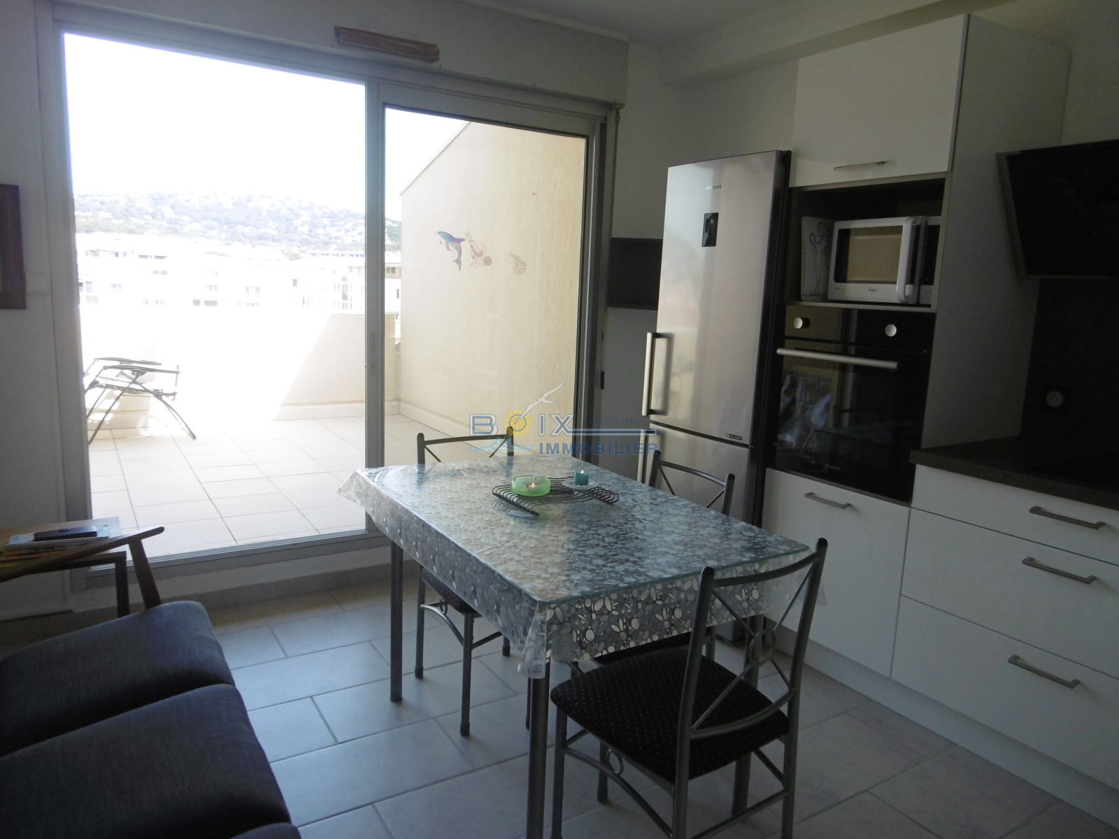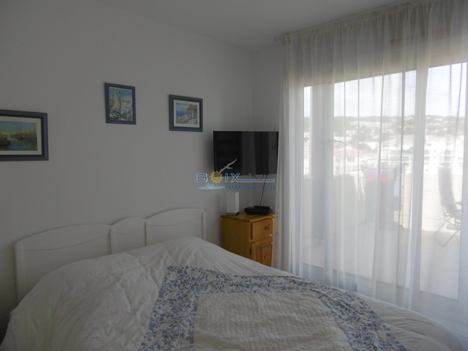 Location de vacances à Sète sur la Marina des Quilles, à deux pas de la plage. Vous séjournerez au 4ème et dernier étage avec ascenseur, dans un appartement 2 pièces prévu pour 4 personnes. Vous profiterez d'une grande terrasse ouverte offrant une vue imprenable sur la Marina. Vous trouverez un séjour avec coin cuisine amménagé et bien équipé (plaques de cuisson, réfrigérateur/congélateur, four, micro onde, lave linge, lave vaisselle, télévision). Vous trouverez également une chambre double avec un lit en 140 donnant sur terrasse et une cabine avec deux lits superposés en 90. La salle d'eau et les toilettes sont séparées. Vous disposerez d'une place de Parking privative au sein de la résidence sécurisée. La Marina des Quilles est un emplacement de choix pour vos paisibles vacances. En effet, vous serez proche de la plage du Villeroy et de son magnifique Lido, mais aussi des commerces des Quilles et des Salins. Notamments des "Halles", le marché couvert convivial où vous pourrez faire la rencontre de nombreux producteurs locaux. Tarif à partir de 350€/semaine jusqu'à 760€/semaine selon la période. L'Agence Boix Immobilier est à votre service, depuis plus de 30 ans. N'hésitez pas à nous contacter pour les disponibilités et pour une réservation en 10min du lundi au samedi inclus au 04.67.51.24.43 ou info@boiximmo.com.