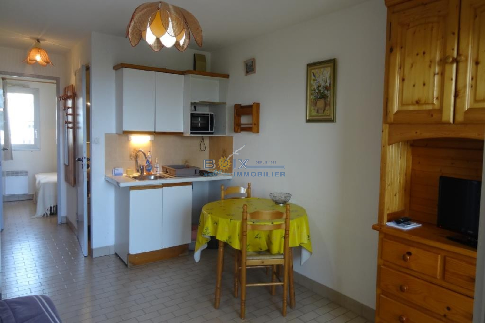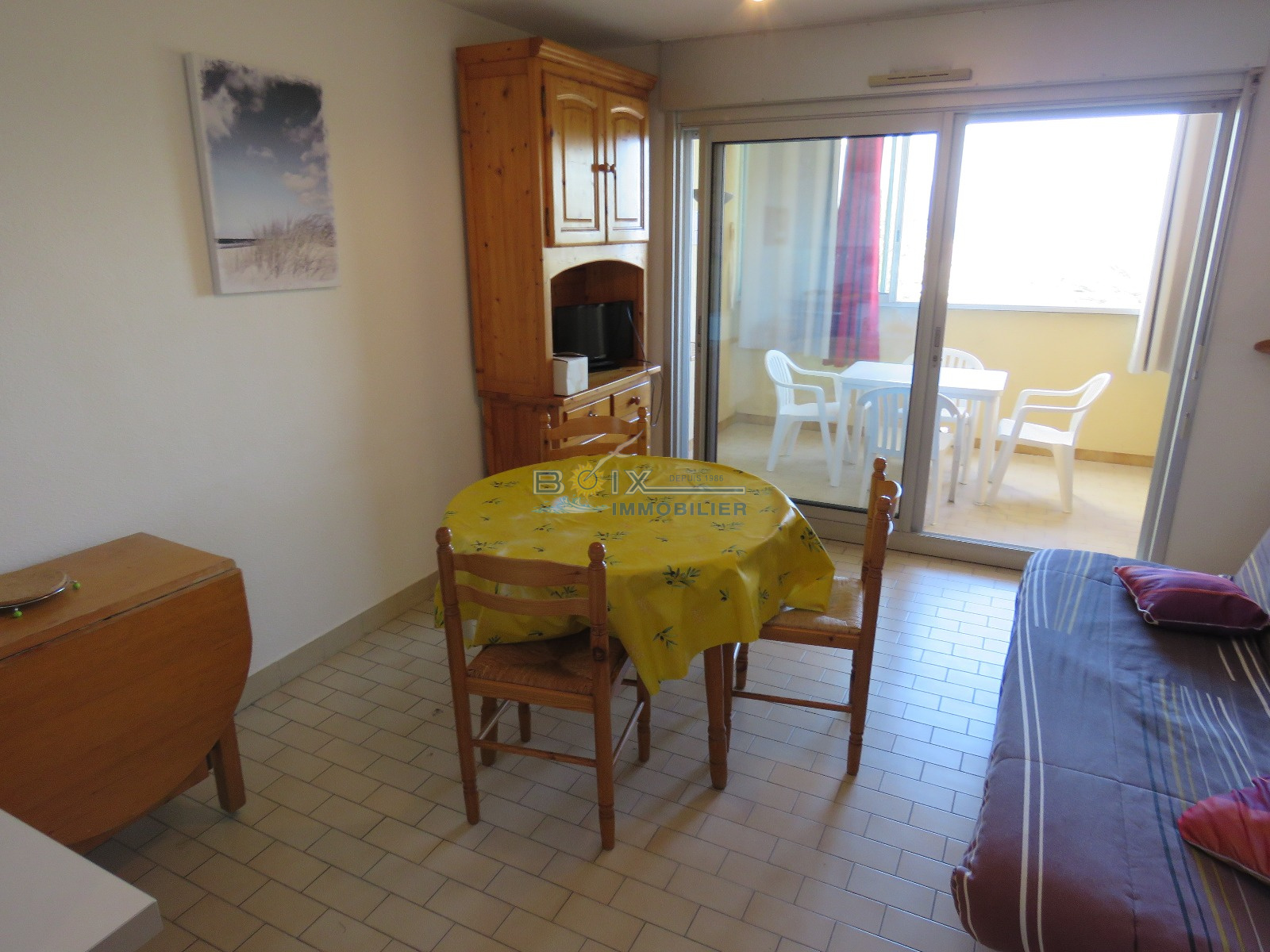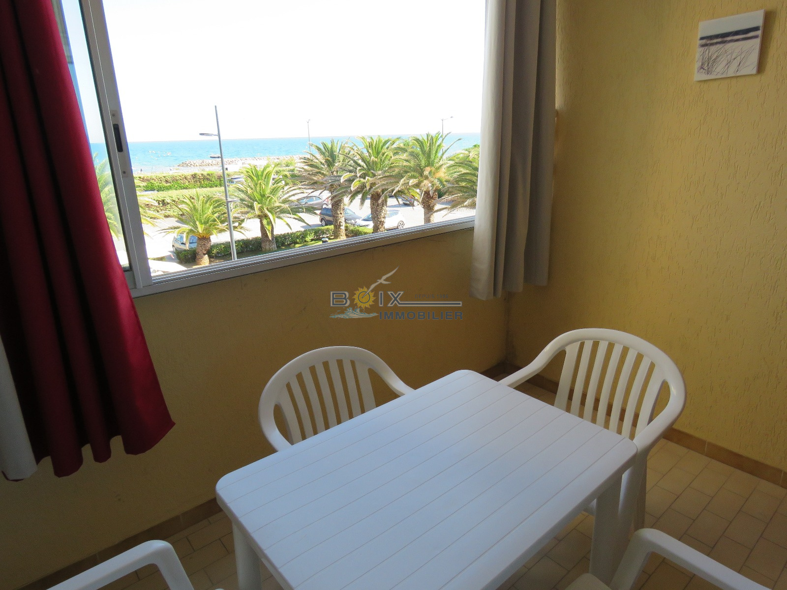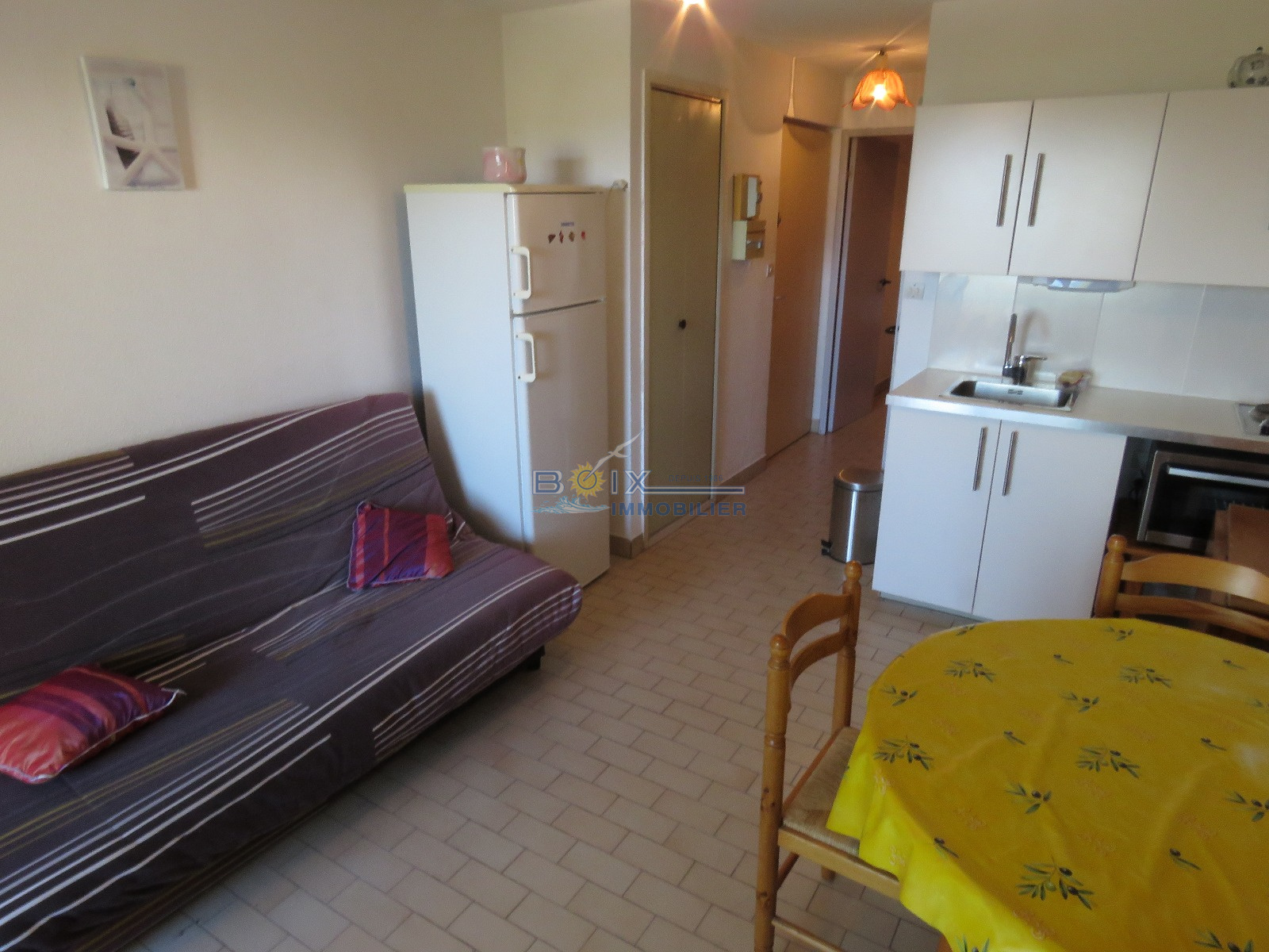 Location de vacances à Sète sur la Marina des Quilles et à quelques mètres de la plage. Vous séjournerez en front de mer, au 2ème étage avec ascenseur, dans un appartement 2 pièces prévu pour 4 personnes. Vous profiterez d'une loggia vitrée offrant une très belle vue sur la Mer. Vous trouverez un séjour avec un canapé convertible en 140 et une télévision, ainsi qu'un coin cuisine équipé (plaques chauffantes, réfrigérateur/congélateur, four). Vous trouverez également une chambre double avec un lit en 140 et une salle d'eau avec toilettes. Vous disposerez d'une place de parking privative dans la résidence sécurisée. La Marina des Quilles est un emplacement de choix pour vos paisibles vacances. En effet, vous serez proche de la plage du Villeroy et de son magnifique Lido, mais aussi des commerces des Quilles et des Salins. Notamment des "Halles", le marché couvert convivial où vous pourrez faire la rencontre de nombreux producteurs locaux. Tarif à partir de 310€/semaine jusqu'à 630€/semaine selon la période. L'Agence Boix Immobilier est à votre service, depuis plus de 30 ans. N'hésitez pas à nous contacter pour les disponibilités et pour une réservation en moins de 10min du lundi au samedi inclus au 04.67.51.24.43 ou info@boiximmo.com.