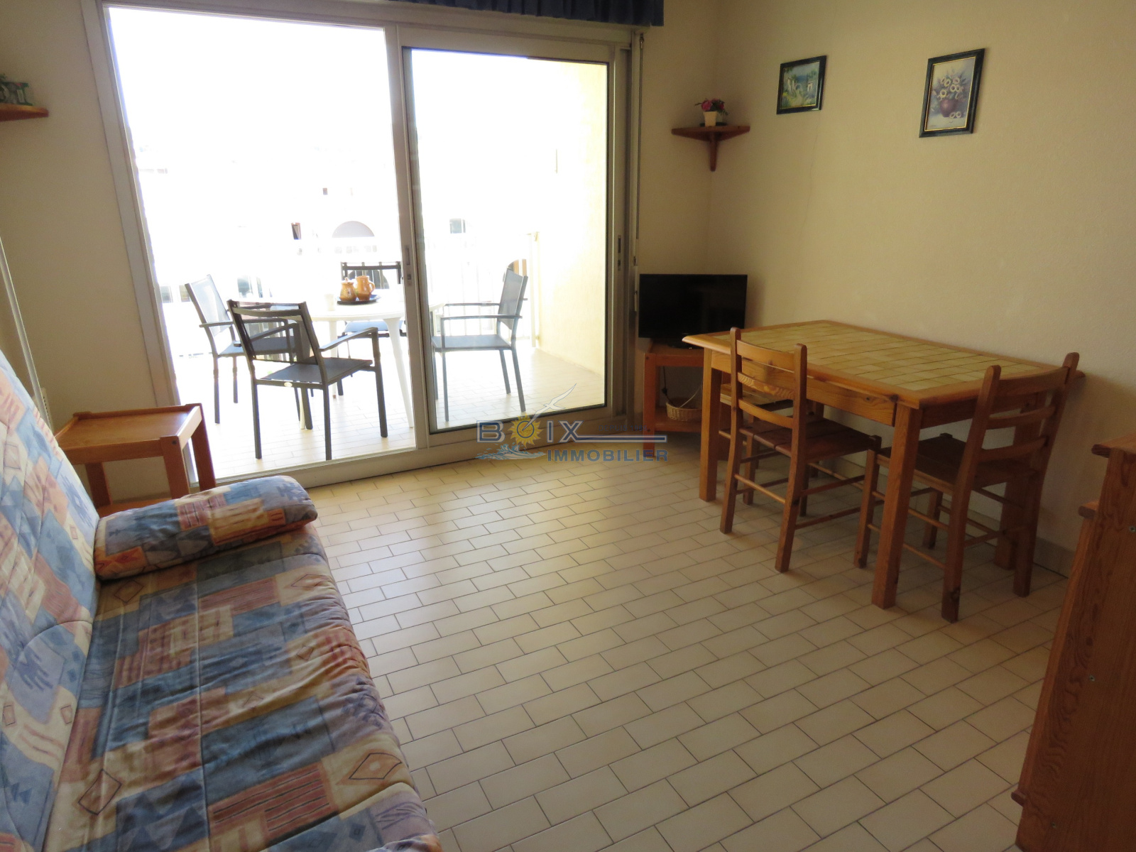 Location de vacances à Sète, sur la Marina des Quilles et à quelques mètres de la plage. Vous séjournerez au 3ème étage avec ascenseur, dans un appartement 2 pièces prévu pour 4 personnes. Vous profiterez d'une terrasse exposée Est offrant une trés belle vue sur la marina et la mer. Vous trouverez un séjour avec un canapé convertible en 140 et une télévisios ainsi qu'un coin cuisine équipé (plaques de cuisson, frigo, four). Vous trouverez égalelement une chambre avec un lit en 140. Une salle d'eau et toilettes séparées. Vous disposerez d'une place de parking privée et sécurisée au sein de la résidence. La marina des quilles est un emplacement de choix pour vos paisibles vacances. En effet, vous serez très proche de la plage du Villeroy et de son magnifique Lido, mais aussi des commerces des Quilles et des Salins, notamment des "halles" le marché couvert convivial, ou vous pourrez faire la rencontre de nombreux producteurs locaux. Tarif à partir de 310€/semaine jusqu'à 630€/semaine selon la période. L'Agence Boix Immobilier est à votre service, depuis plus de 30 ans. N'hésitez pas à nous contacter pour les disponibilités et pour une réservation en quelques minutes du lundi au samedi inclus au 04.67.51.24.43 ou info@boiximmo.com.