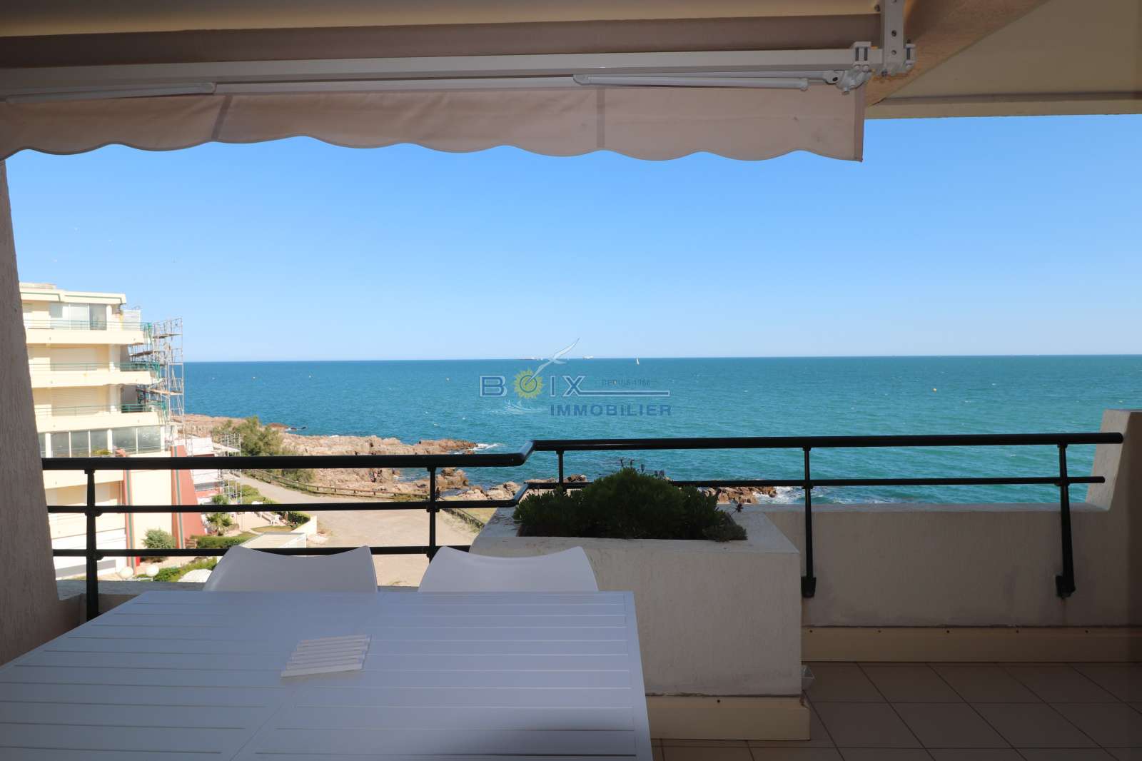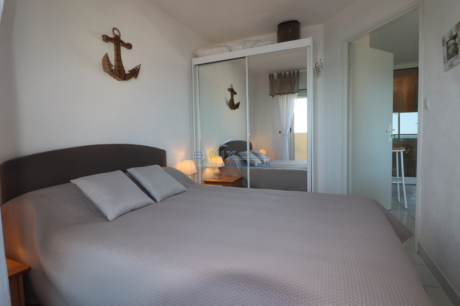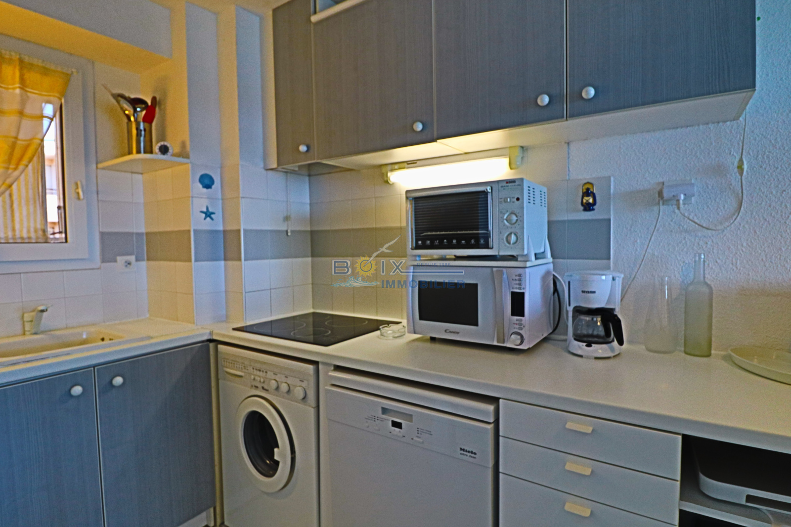 Location de vacances à Sète, idéalement située à La Corniche, dans une résidence avec piscine et à proximité de la plage de sable du Lazaret. Vous séjournerez dans un appartement avec terrasse de 13m² vue sur la mer. Ce 2 piéces cabine au 4éme étage avec ascenseur comprend un séjour avec canapé et télévision, la kitchenette est équipée d'une plaque vitrocéramique, d'un mini four, d'un micro-ondes, d'un lave-vaisselle, d'un lave-line et réfrigérateur/congélateur. La salle de bains et les wc sont séparés. Les enfants pourront dormir dans la cabine indépendante sur les lits superposés. La chambre avec lit double et placard donne sur la terrasse comme le séjour. Profitez de la vue imprénable sur la mer de votre terrasse équipée du salon de jardin et transat. Les animaux ne sont pas autorisés dans cette location. Le prix hors saison est de 400€/semaine, en très haute saison le prix est de 870€/semaine. N'hésitez pas à nous contacter pour les tarifs et disponibilités du lundi au samedi inclus 04.67.51.50.50 et infos@boix-immobilier.fr