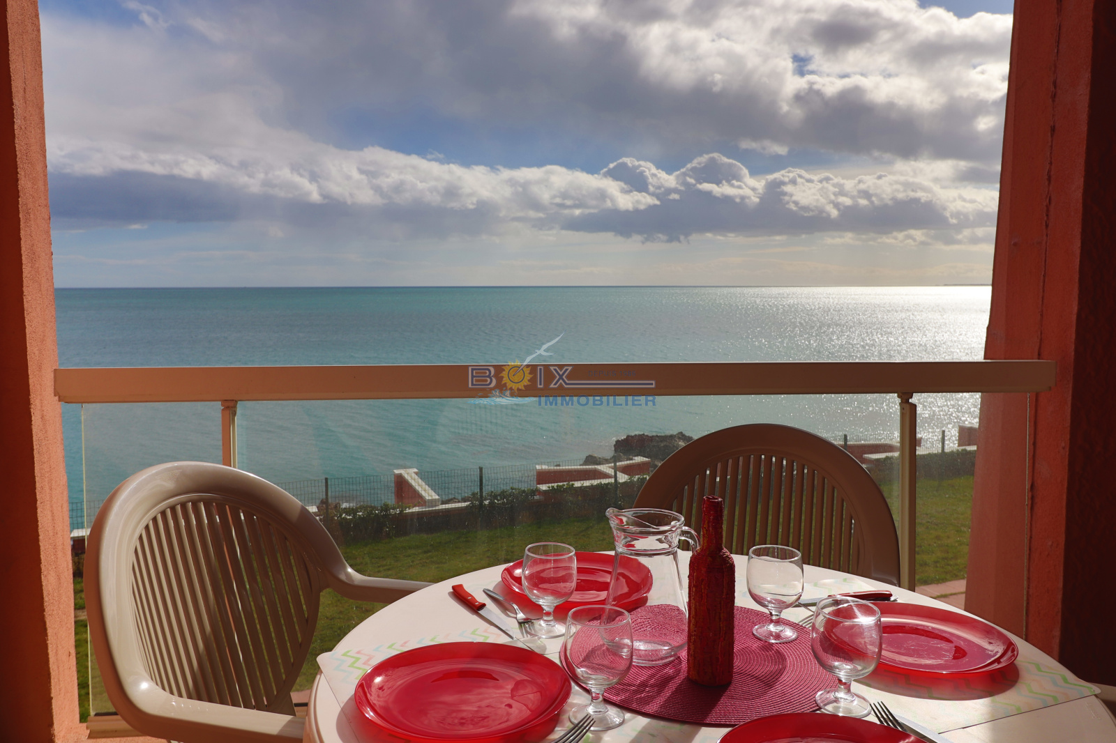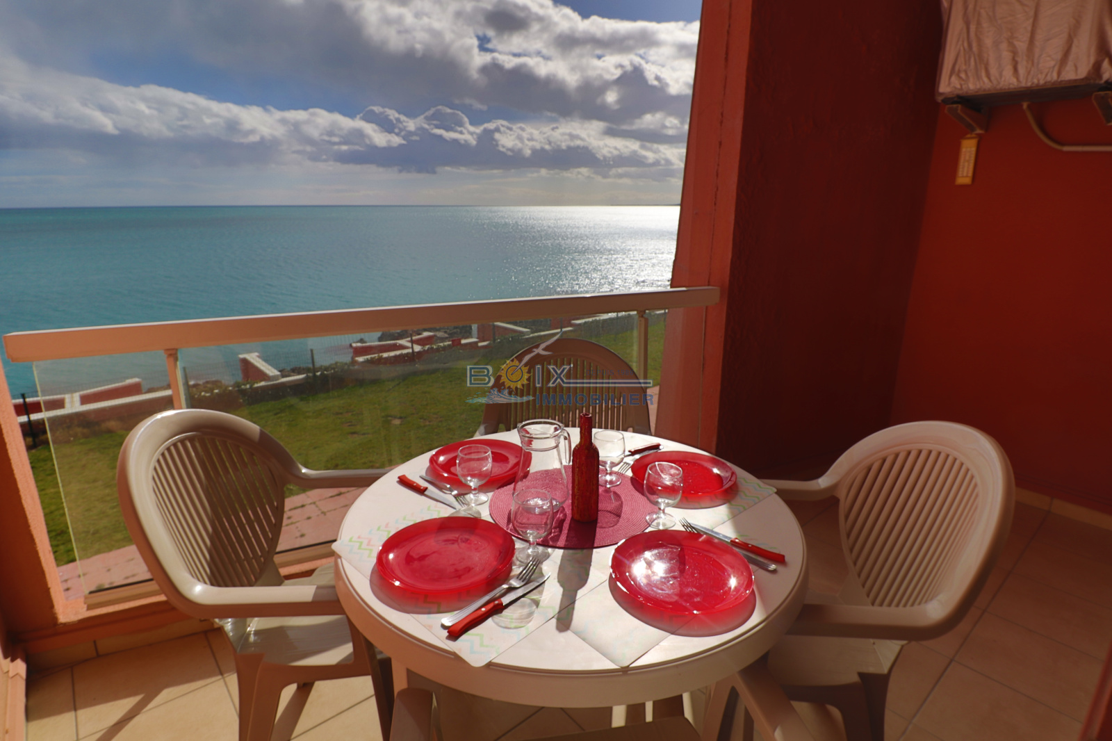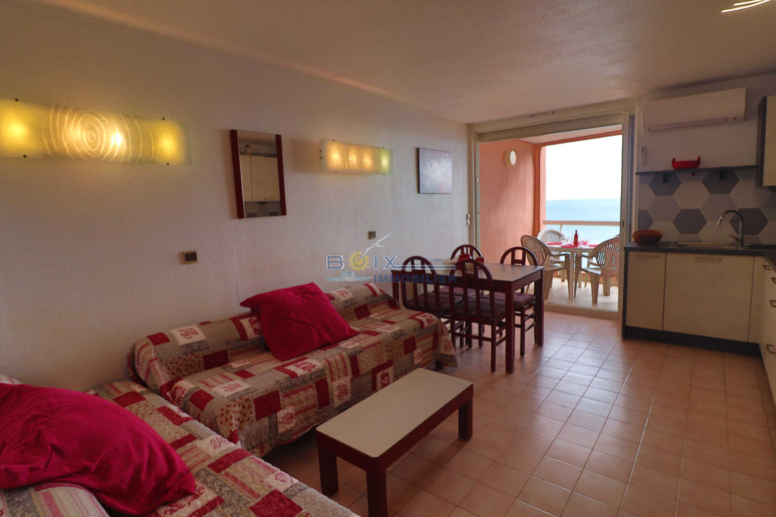 Trés agréable 2 pièces climatisé, bien équipé, prévu pour 4 personnes Vue imprenable sur la mer depuis la terrasse et l'appartement. Il se compose: - séjour avec deux lits en 90, télévision et porte fenêtre coulissante (s'ouvre entièrement) sur la terrasse- cuisine moderne toute neuve équipée (combiné réfrigerateur/congélateur, lave-vaisselle, petit lave-linge, micro ondes combiné four, plaques de cuisson induction avec hotte aspirante)- terrasse en front de mer avec table de jardin et vue imprenable sur la mer- chambre avec deux lits en 90- salle de bain avec baignoire- toilette séparée