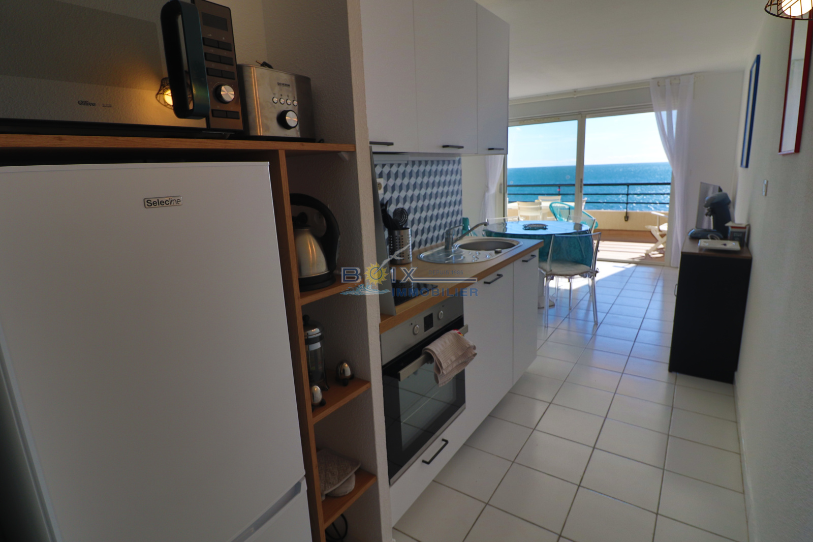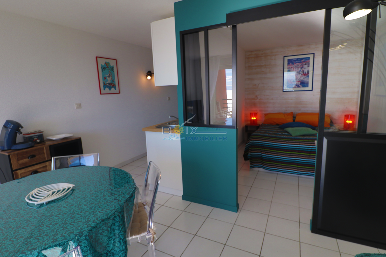 Location de vacances à Sète, dans une résidence en front de mer, avec piscine et accés direct à la plage par un portillon. Splendide 2 pièces, de charme, pour 2 personnes, face à la mer,entièrement rénové, climatisé, avec des prestations de qualité. Il se compose : - cuisine équipée (combiné réfrigérateur/congélateur, four encastré, micro ondes)- séjour/salon avec canapé (non convertible), télévision- terrasse ouverte en front de mer avec table et transats- chambre indépendante avec verrière et vue sur la mer depuis le lit. -salle d'eau avec douche- toilette séparé. Appartement loué avec son box privatif au sous-sol de la résidence. Tarif (Basse saison) : 390€ jusqu'à (Haute saison) : 800€. Le quartier est vivant toute l'année grâce à ses commerces, ses restaurants, son casino, un rendez-vous hebdomadaire pour son marché le jeudi et la brocante du lundi. Vous pourrez rejoindre le port et le centre-ville très facilement à pied ou en bus. Bon plan hors juillet/août, en réservant 2 semaines consécutives, la troisième est offerte (en cas de chevauchement des périodes, la semaine offerte est celle au tarif le plus bas). N'hésitez pas à nous contacter pour les tarifs et disponibilités du lundi au samedi inclus 04.67.51.50.50 et infos@boix-immobilier.fr