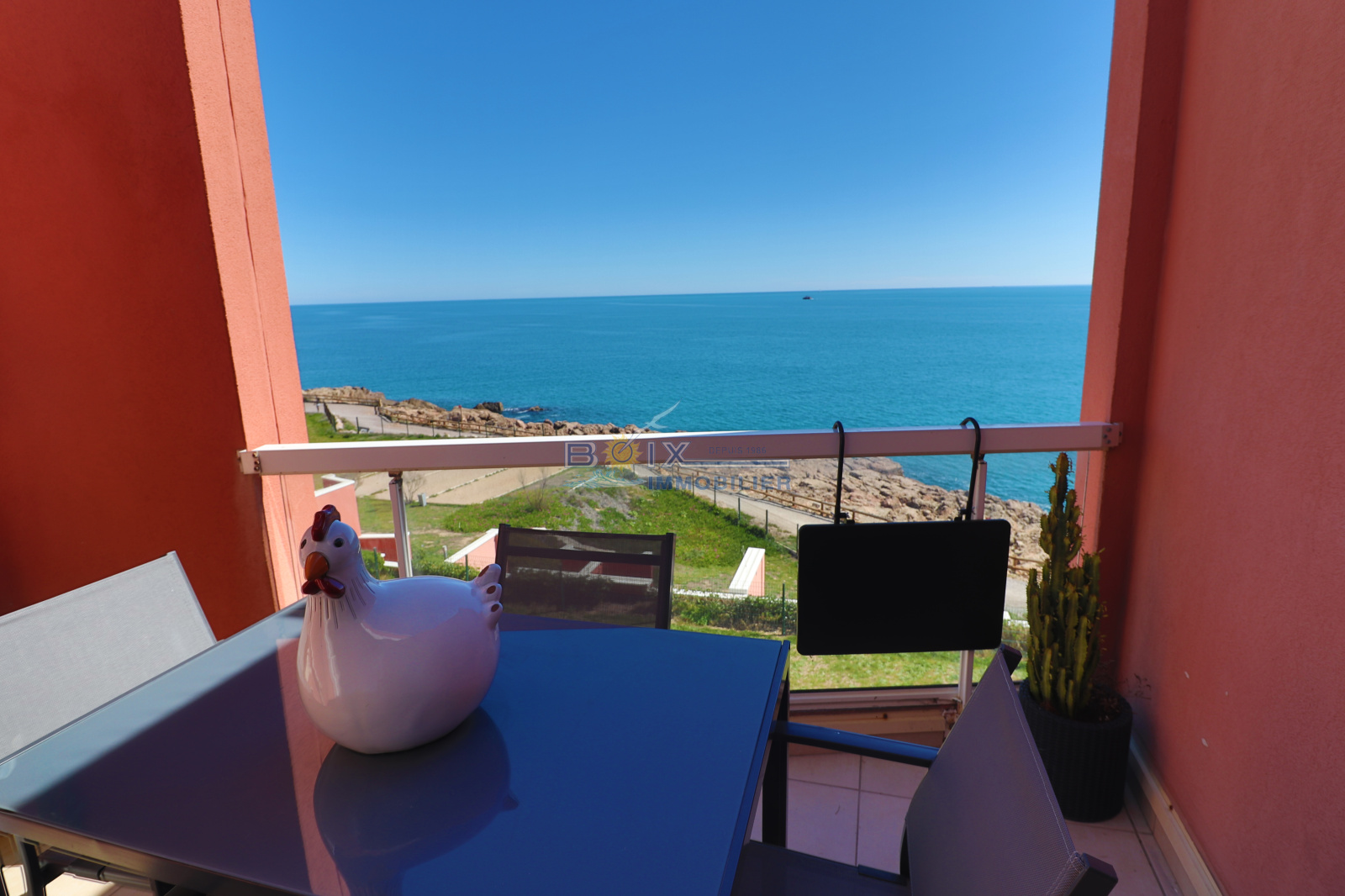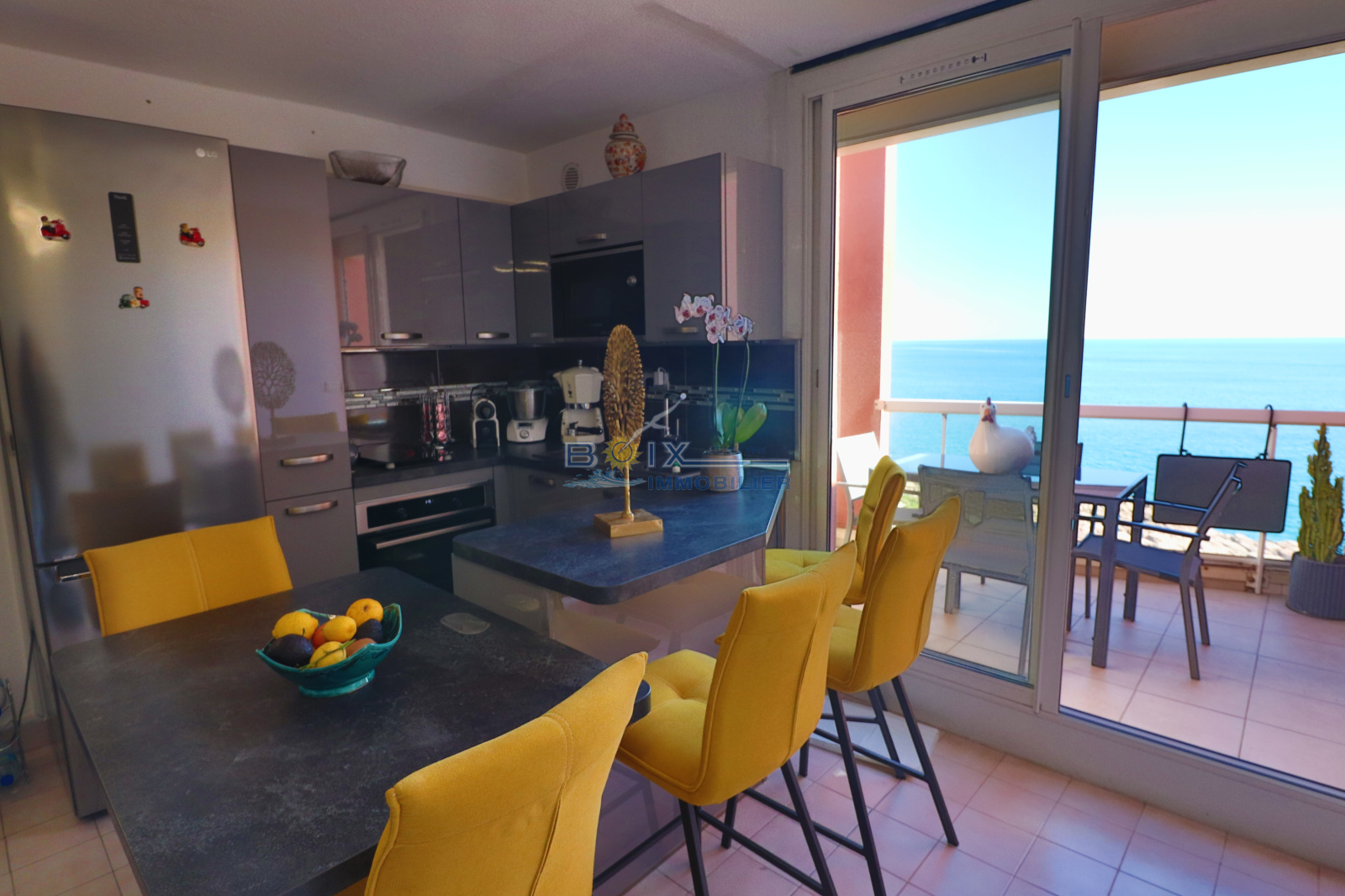 Au 2ème et dernier étage (sans asc) Magnifique 2 pièces climatisé, tout équipé et décoré avec goût,avec terrasse face à la mer prévu pour 4 personnes. Il se compose: - cuisine amércaine toute équipée (combiné réfrigérateur/congélateur, lave-vaisselle, four encastré, micro ondes, plaques de cuisson induction..) - séjour confortable avec canapé convertible et télévision - terrasse ouverte face à la mer - chambre avec lit double en 160 et télévision - salle d'eau renovée avec douche et machine à laver/séchante - toilette séparée Les animaux sont refusés dans ce logement. Place de parking privative au sous-sol de la résidence sécurisée. Le quartier est vivant toute l'année grâce à ses commerces, ses restaurants, son casino, un rendez-vous hebdomadaire pour son marché le jeudi et la brocante du lundi. Vous pourrez rejoindre le port et le centre-ville très facilement à pied ou en bus. Tarif à partir de (Hors saison) : 520€/semaine jusqu'à (Très haute saison) 1040€/semaine. N'hésitez pas à nous contacter pour les tarifs et disponibilités du lundi au samedi inclus 04.67.51.50.50 et infos@boix-immobilier.fr