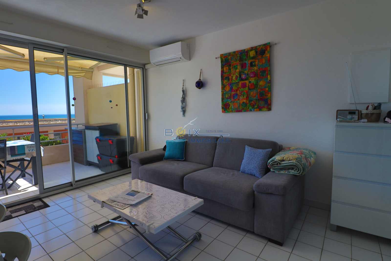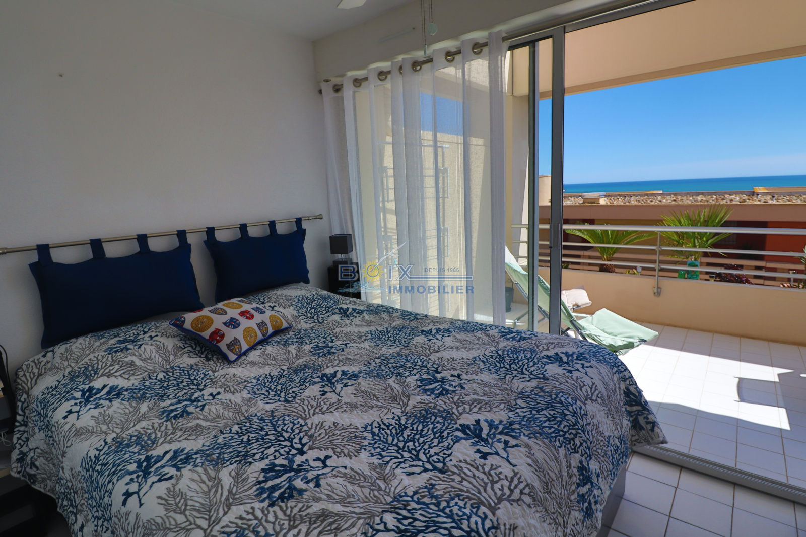 Il se compose: séjour climatisé avec canapé convertible et télévision donnant sur une double terrasse plein sud avec store banne, table de jardin et transats- véritable cuisine toute équipée (plaques de cuisson vitro céramique 4 feux, micro ondes, four encastré, combiné réfrigérateur/congélateur, mini lave-vaisselle..) - chambre climatisée avec lit double en 160 et accés à la terrasse par une porte fenêtre- salle d'eau toute neuve avec douche et lave-linge - toilette séparée . Les animaux ne sont pas autorisés dans cette location. Vous serez proche du port et du centre ville. Vous n'aurez aucun probléme de stationnement grâce au parking privé en sous-sol. Hors saison: 300€/semaine, très haute saison: 720€/semaine. Nous restons à votre disposition pour toutes demandes de disponibilités et renseignements complémentaires au 04.67.51.50.50 et par e-mail infos@boix-immobilier.fr du lundi au samedi inclus.