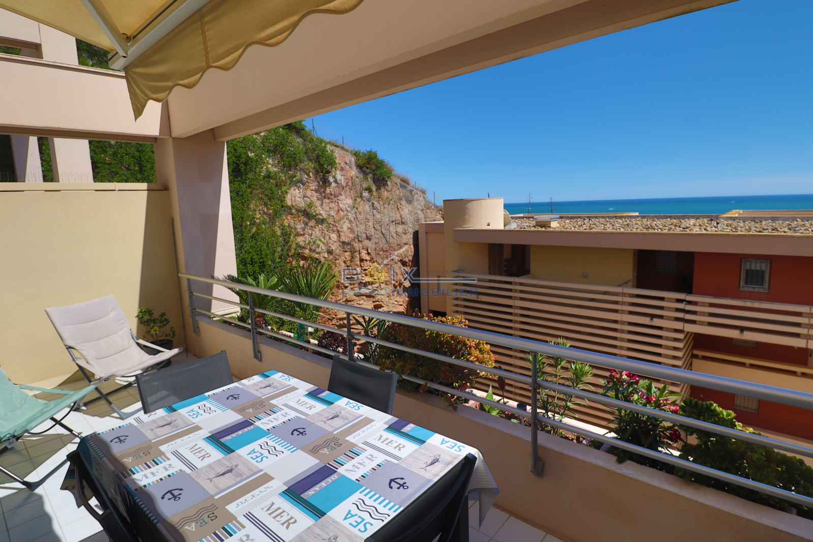 Dans une résidence trés demandée, sur le bas du Mont Saint Clair, avec piscine et vue sur la mer, 2 pièces 31m² entièrement rénové avec goût + double terrasse 14m² avec vue panoramique sur la mer