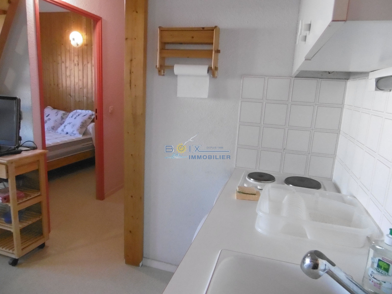 - kitchenette équipée (plaque de cuisson, réfrigérteur/congélateur, micro onde, lave-linge )