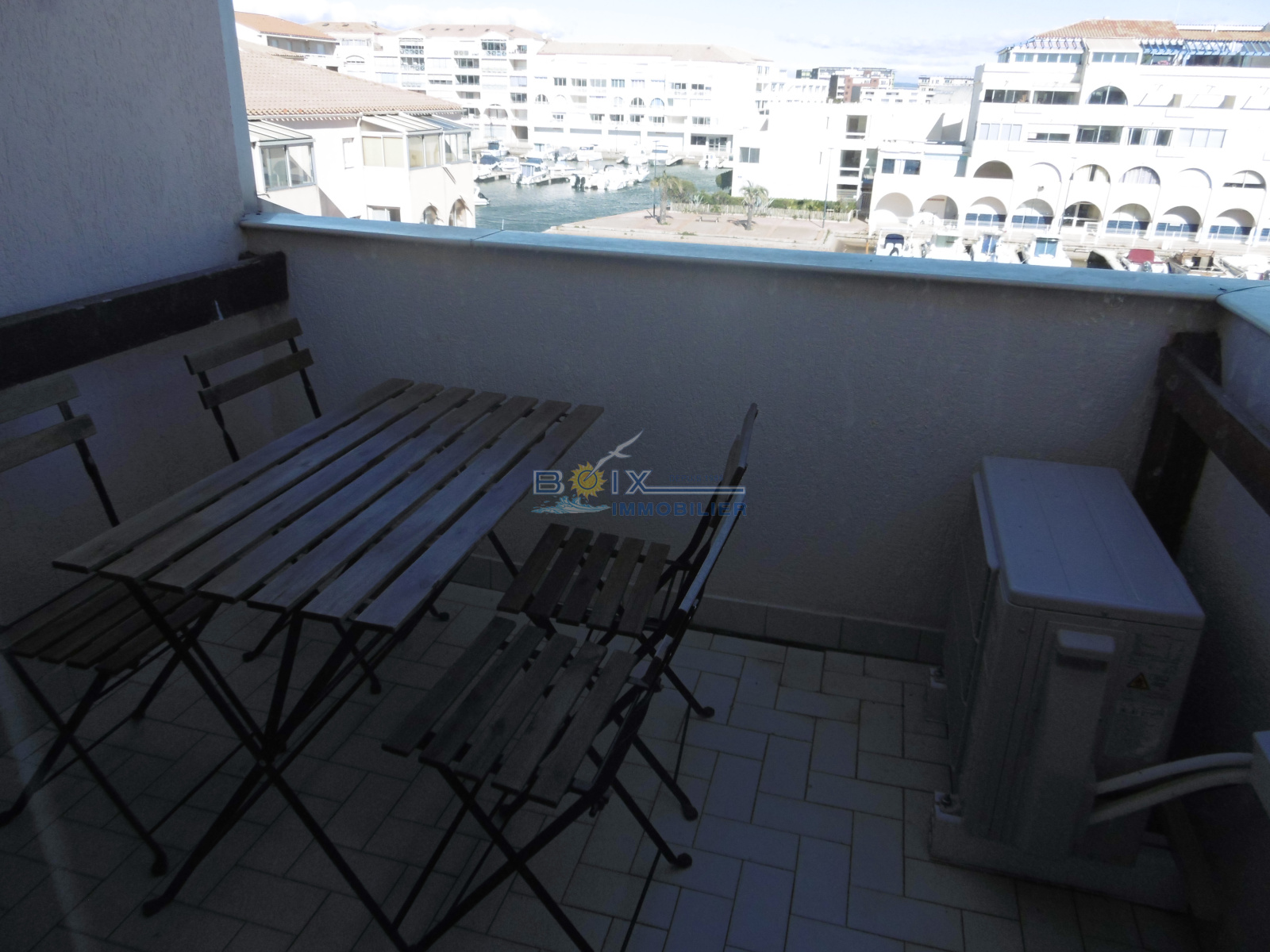 2 pièces Mezzanine de 25m² au 3ème étage sans ascenseur avec une climatisation, une terrasse et la vue sur la marina. Exposition Nord.