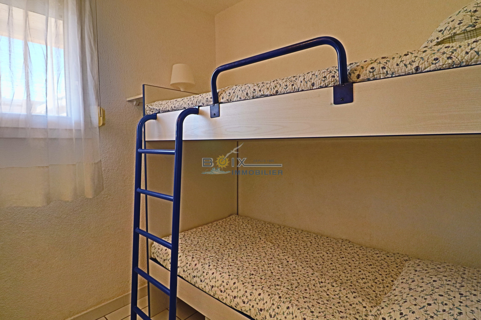 Location de vacances à Sète, quartier La Corniche, 2 pièces+cabine situé au 2 ème étage d'une résidence avec piscine et ascenseur. Ce logement avec vue sur la mer et la piscine comprend une chambre avec placard et lit en 140cm, une cabine indépendante avec 2 lits superposés, un séjour avec canapé gigogne et télevision, une kitchenette équipée avec le lave-vaisselle, plaques chauffantes, réfrigerateur, four, une salle d'eau, wc séparés. Terrasse avec salon jardin. Accés au parking de la résidence. Accès direct à la plage du Lazaret à 100m. Le quartier est vivant toute l'année grâce à ses commerces, ses restaurants, son casino, un rendez-vous hebdomadaire pour son marché le jeudi et la brocante du lundi. Vous pourrez rejoindre le port et le centre-ville très facilement à pied ou en bus. Hors saison: 380€/semaine. Trés haute saison: 860€/semaine. Bon plan hors juillet/août, en réservant 2 semaines consécutives, la troisième est offerte (en cas de chevauchement des périodes, la semaine offerte est celle au tarif le plus bas). N'hésitez pas à nous contacter pour les tarifs et disponibilités du lundi au samedi inclus 04.67.51.50.50 et infos@boix-immobilier.fr