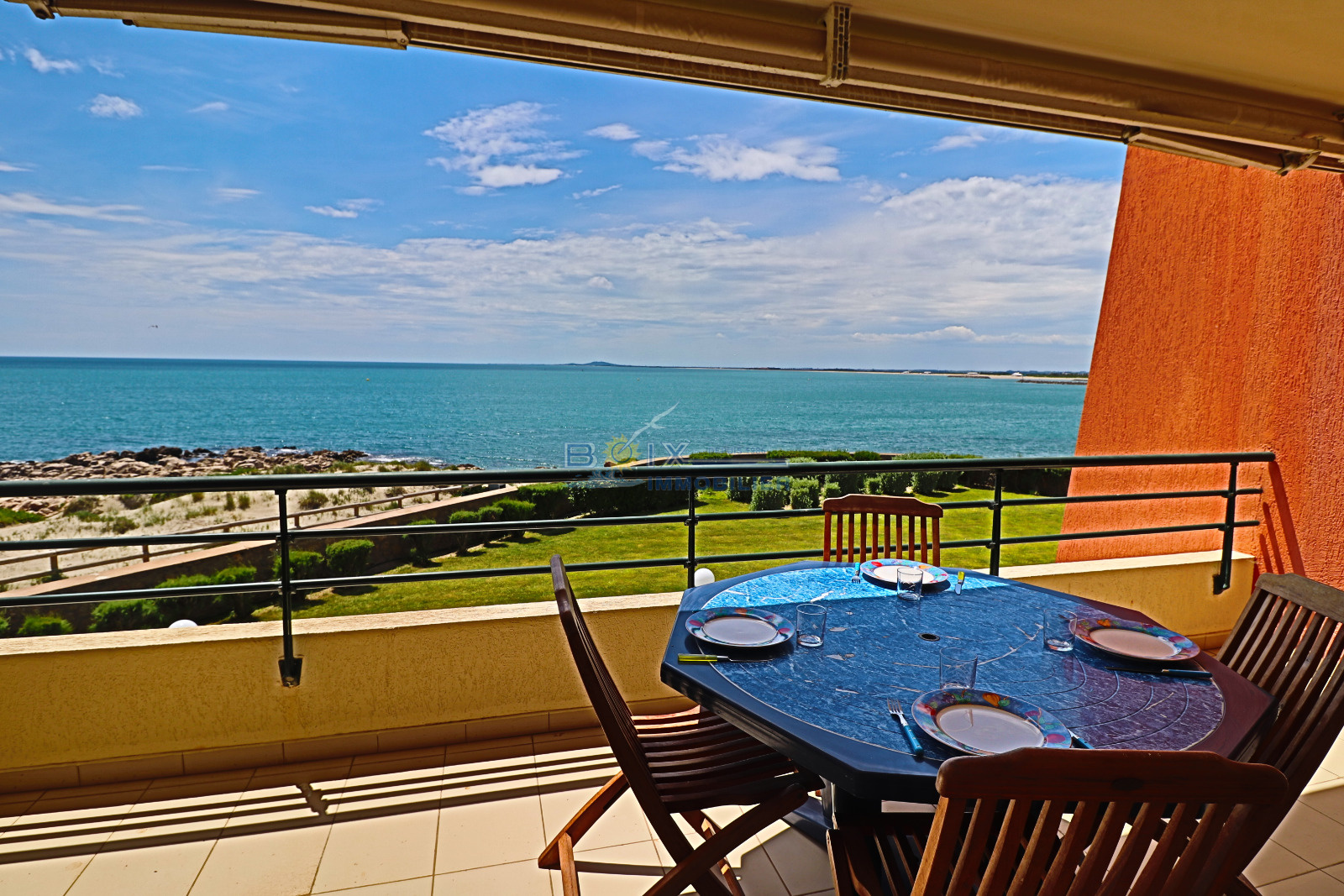 Location de vacances à Sète, résidence Les Nautiques de St Clair, située à 100m de la plage du Lazaret. Beau 2 pièces cabine comprenant un séjour avec canapé convertible, un coin cuisine équipé avec four micro-ondes, plaques chauffantes électriques, lave-linge, réfrigerateur/congélateur, une chambre avec un lit double et placard, une cabine avec 2 lits superposés, une salle de bains et wc séparés. Belle terrasse en front de mer, accés direct à la piscine de la résidence.Le quartier est vivant toute l'année grâce à ses commerces, ses restaurants, son casino, un rendez-vous hebdomadaire pour son marché le jeudi et la brocante du lundi. Vous pourrez rejoindre le port et le centre-ville très facilement à pied ou en bus. Les animaux ne sont pas autorisés dans cette résidence. Hors saison: 440€/semaine. Trés haute saison: 1030€/semaine. Nous restons à votre disposition pour toutes demandes de disponibilités et renseignements complémentaires au 04.67.51.50.50 et par e-mail infos@boix-immobilier.fr du lundi au samedi inclus.