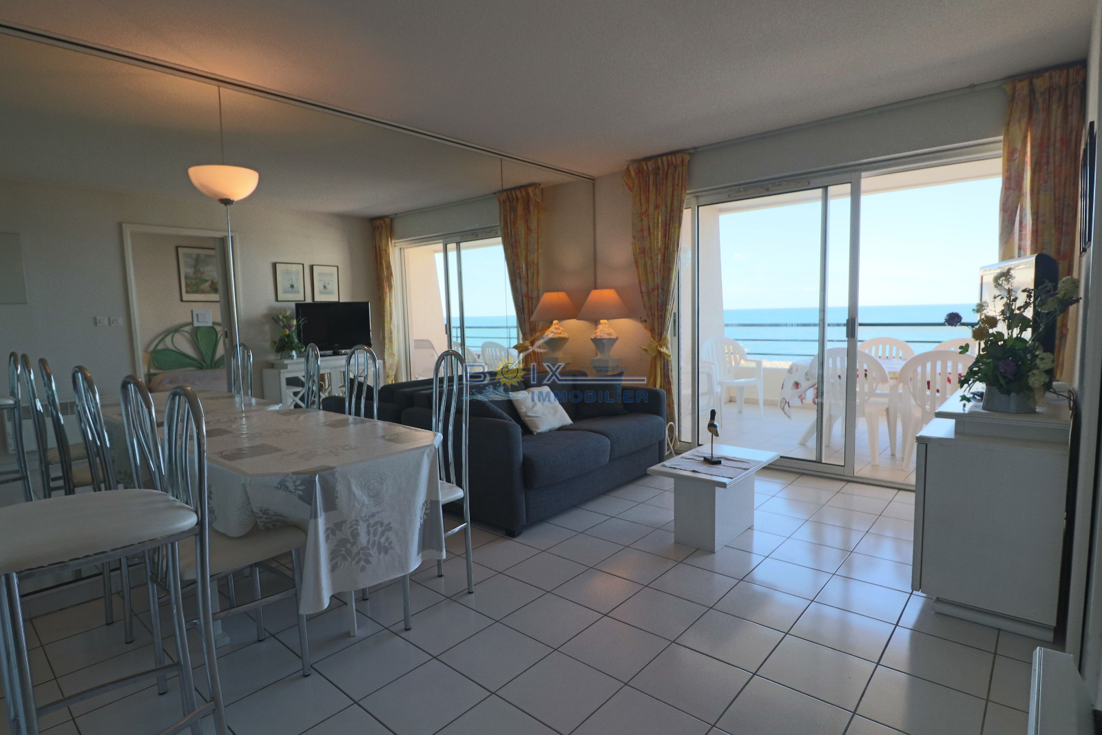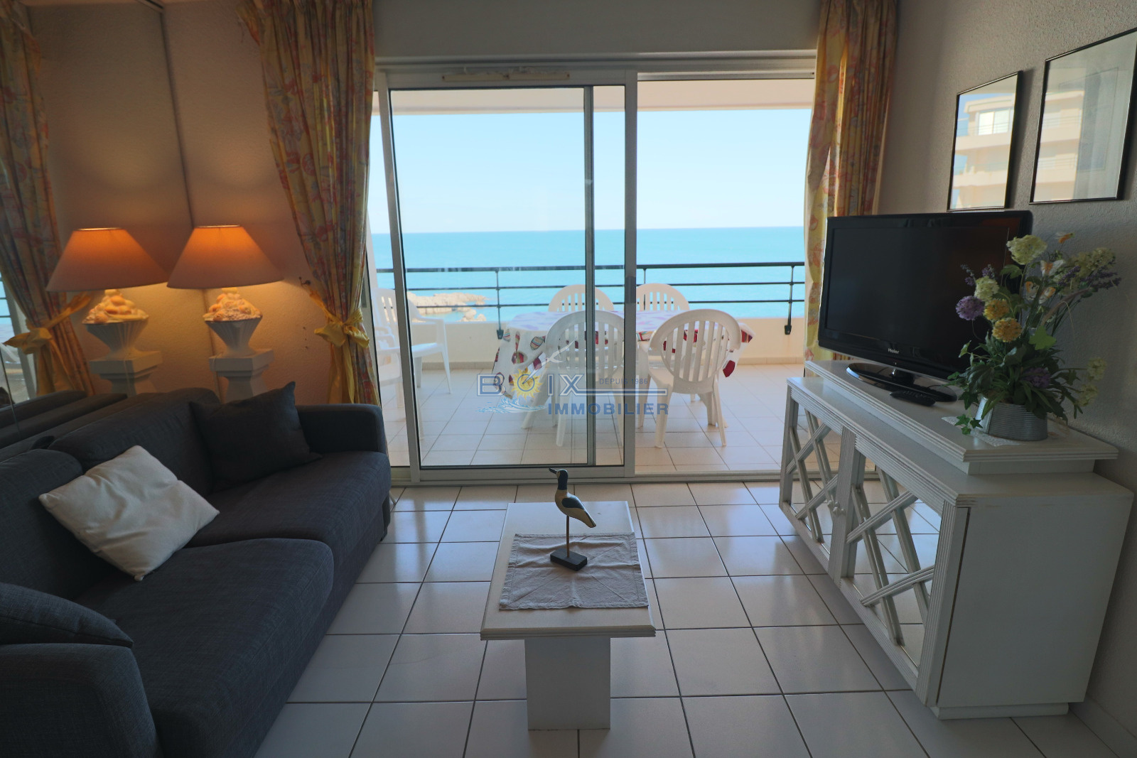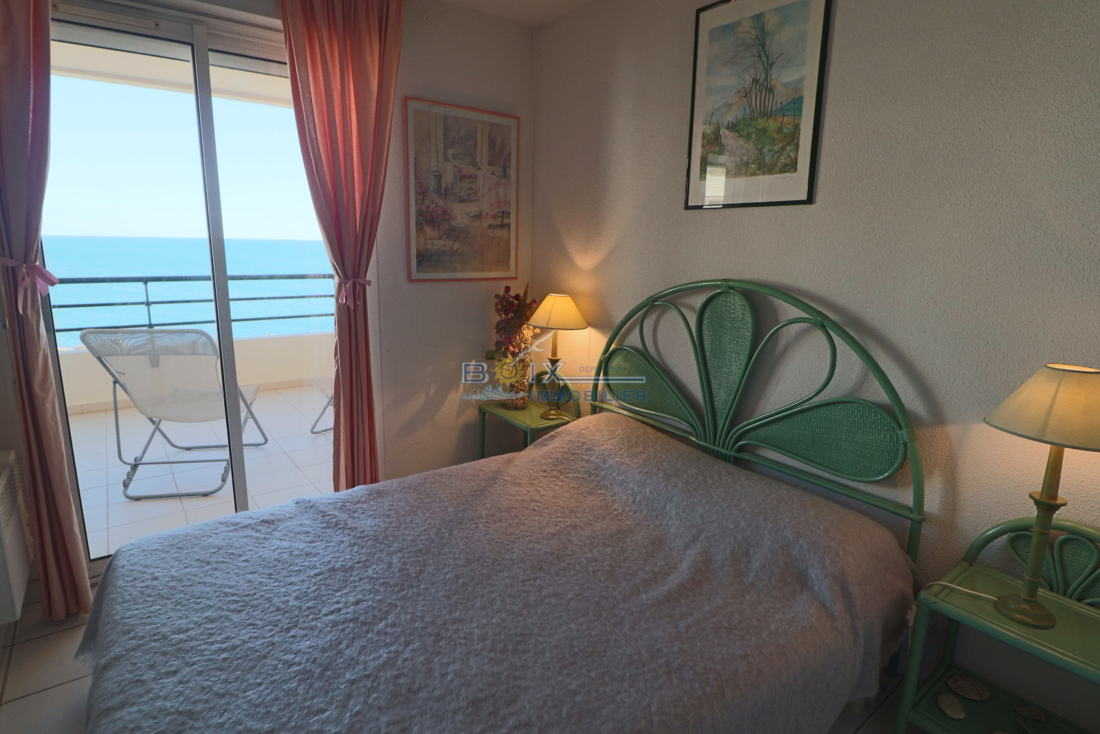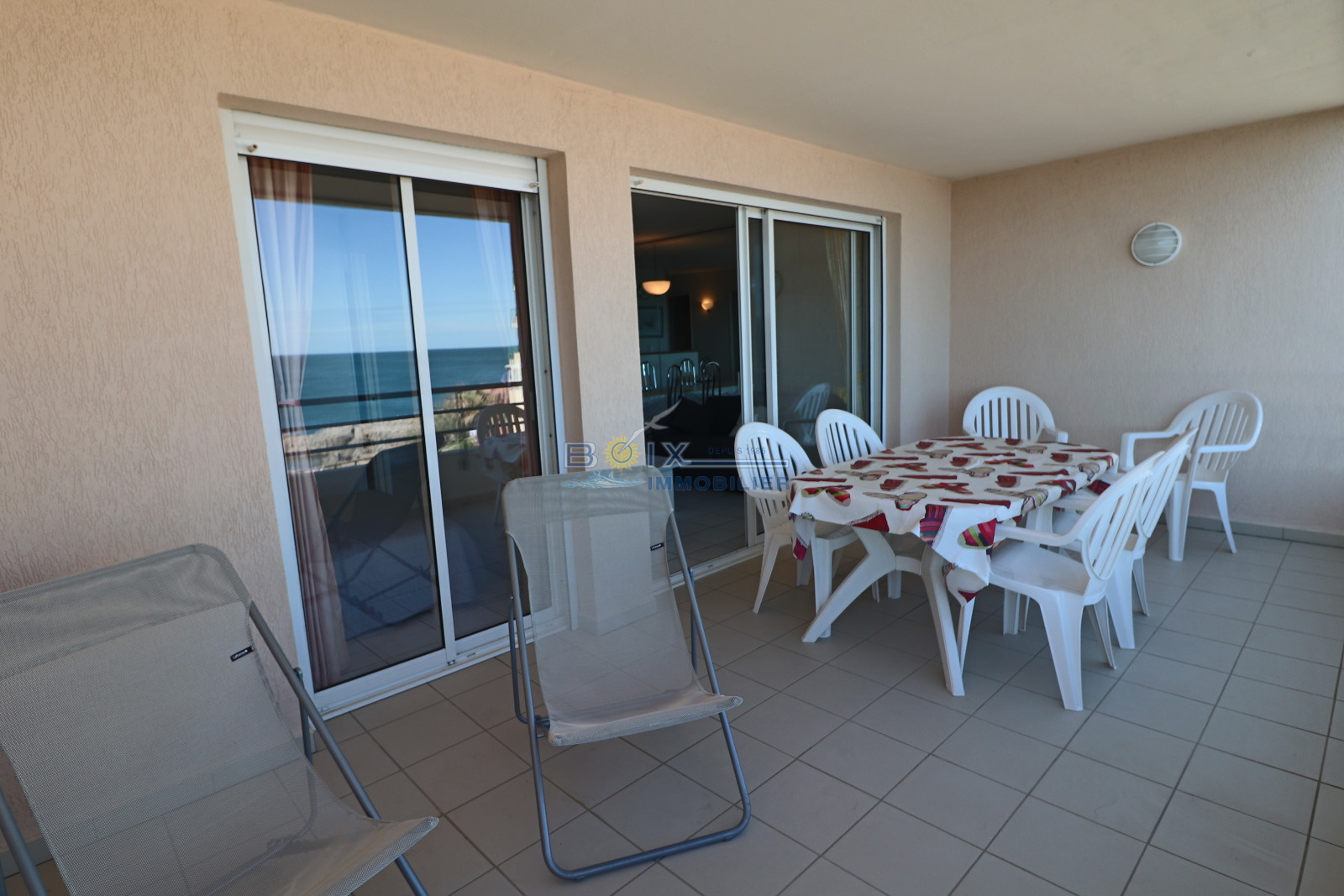 Location de vacances à Sète, idéalement située à La Corniche, dans une résidence avec piscine et à proximité de la plage de sable du Lazaret. Vous séjournerez dans un appartement climatisé avec terrasse vue sur la mer. Ce 2 piéces cabine au 3éme étage avec ascenseur comprend un séjour avec canapé convertible et télévision écran plat, la kitchenette est équipée d'une plaque électrique 4 feux, d'un mini four, d'un lave-vaisselle et d'un réfrigérateur. La salle de bains et les wc sont séparés. Les enfants pourront dormir dans la cabine indépendante sur les lits superposés. La chambre avec lit double et placard donne sur la terrasse comme le séjour. Profitez de la vue imprénable sur la mer de votre terrasse équipée du salon de jardin et transat. Le prix hors saison est de 440€/semaine, en très haute saison le prix est de 960€/semaine. N'hésitez pas à nous contacter pour les tarifs et disponibilités au 04.67.51.50.50 et infos@boix-immobilier.fr du lundi au samedi inclus.