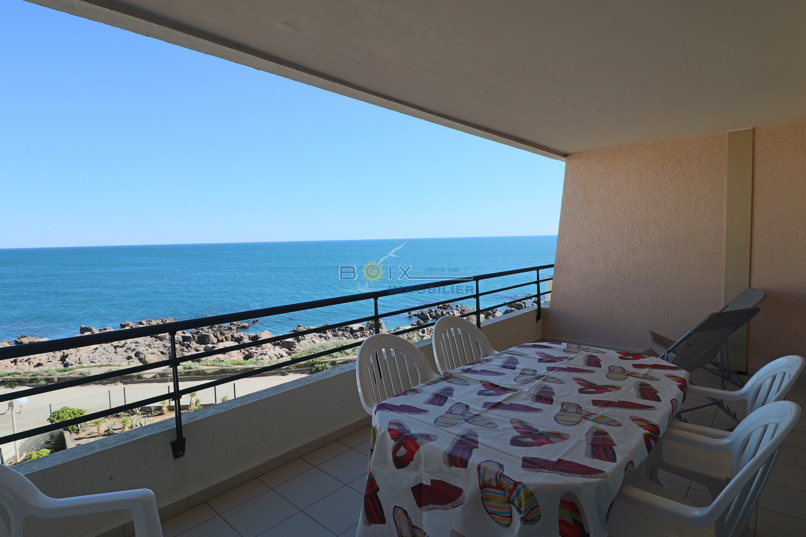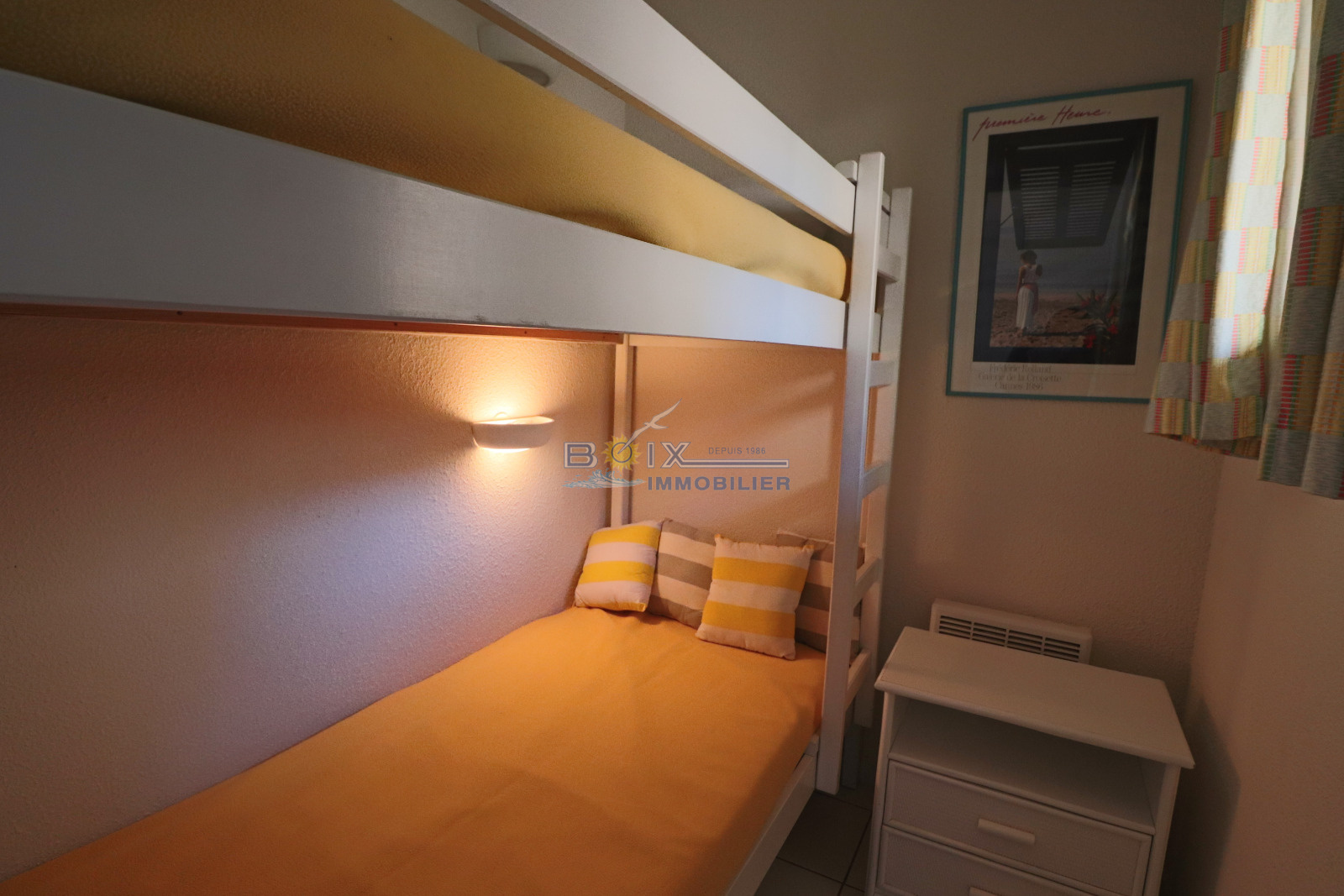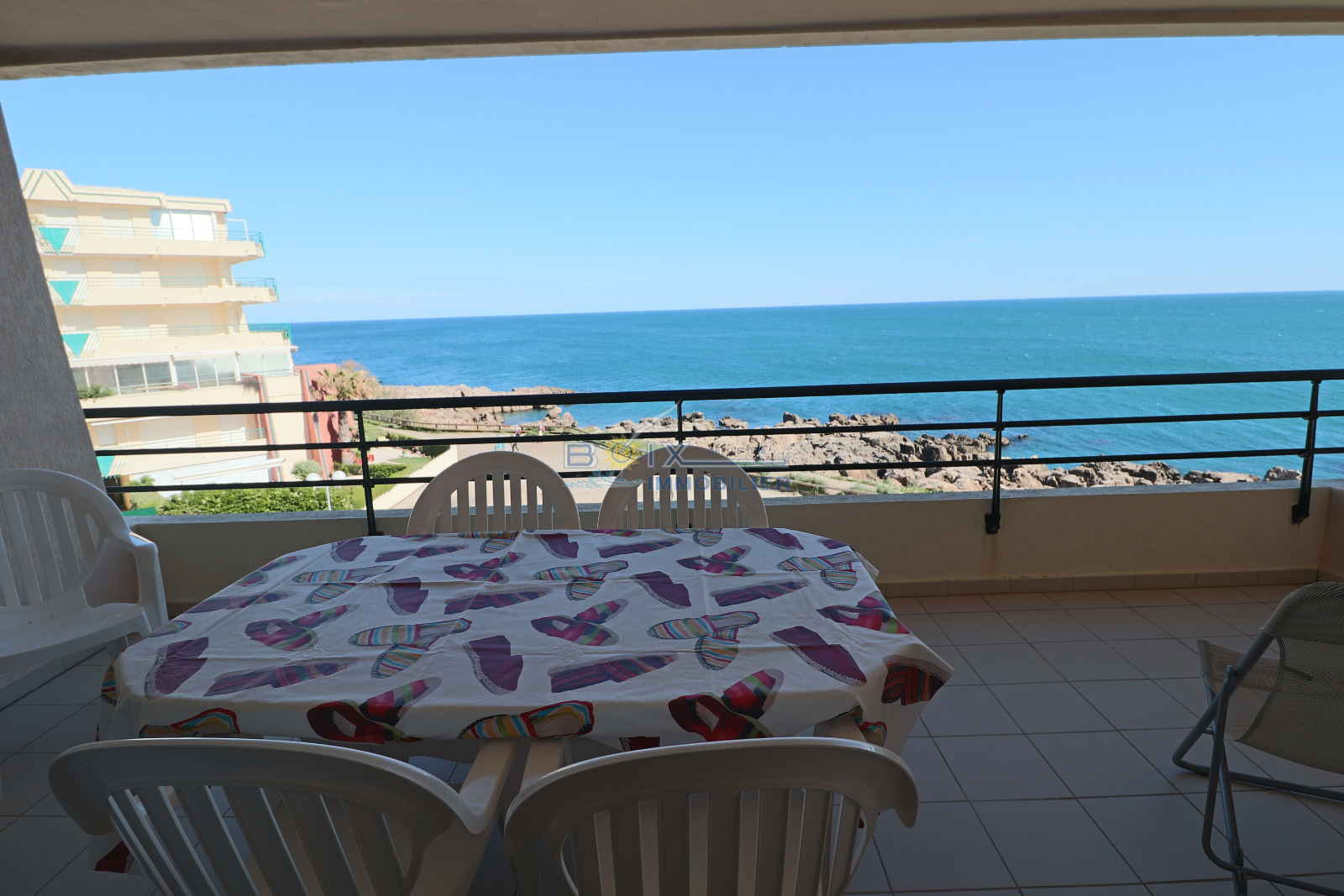 Location de vacances à Sète, idéalement située à La Corniche, dans une résidence avec piscine et à proximité de la plage de sable du Lazaret. Vous séjournerez dans un appartement climatisé avec terrasse vue sur la mer. Ce 2 piéces cabine au 3éme étage avec ascenseur comprend un séjour avec canapé convertible et télévision écran plat, la kitchenette est équipée d'une plaque électrique 4 feux, d'un mini four, d'un lave-vaisselle et d'un réfrigérateur. La salle de bains et les wc sont séparés. Les enfants pourront dormir dans la cabine indépendante sur les lits superposés. La chambre avec lit double et placard donne sur la terrasse comme le séjour. Profitez de la vue imprénable sur la mer de votre terrasse équipée du salon de jardin et transat. Le prix hors saison est de 440€/semaine, en très haute saison le prix est de 960€/semaine. N'hésitez pas à nous contacter pour les tarifs et disponibilités au 04.67.51.50.50 et infos@boix-immobilier.fr du lundi au samedi inclus.