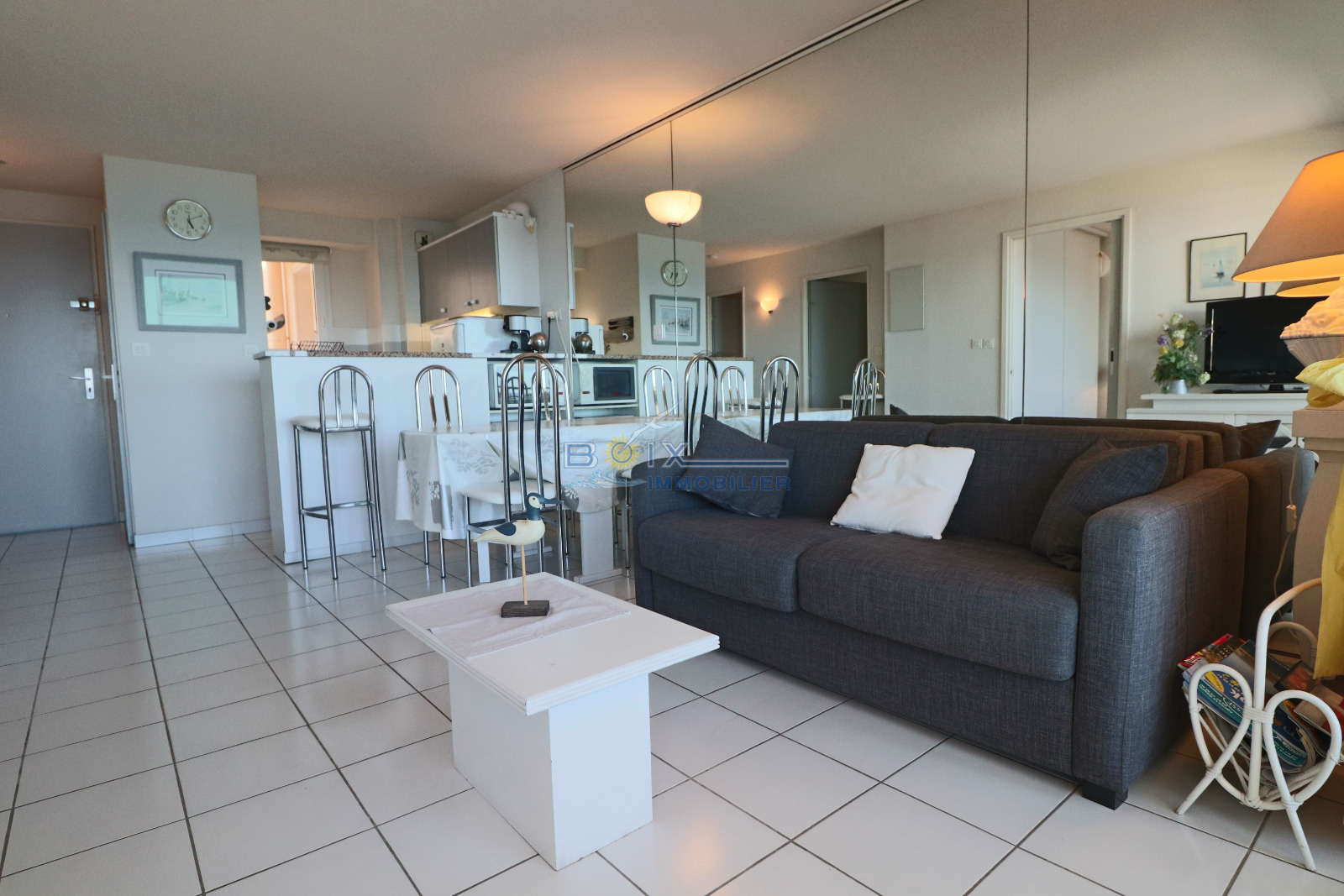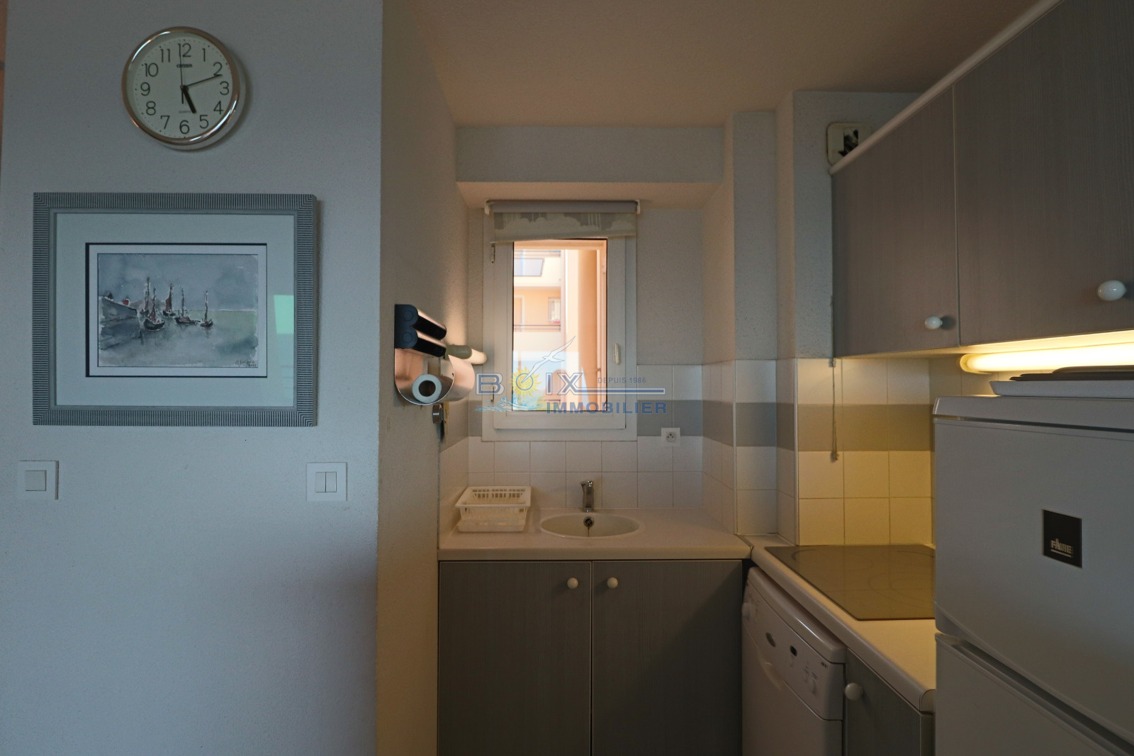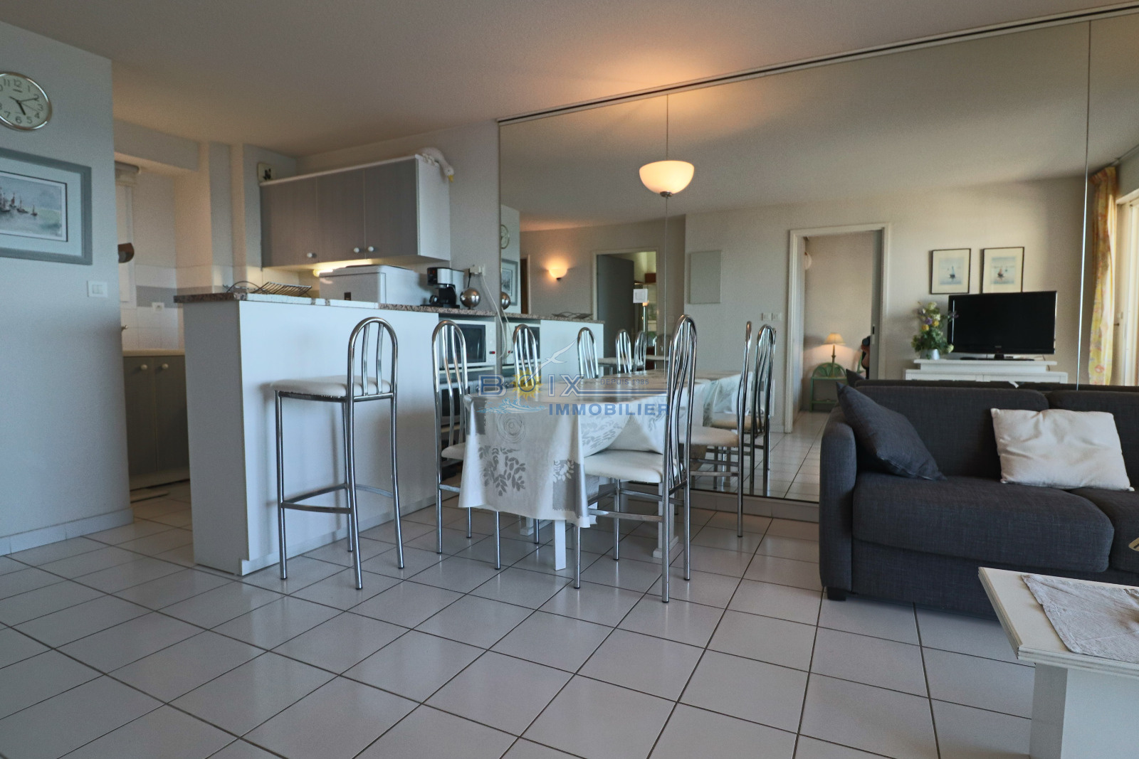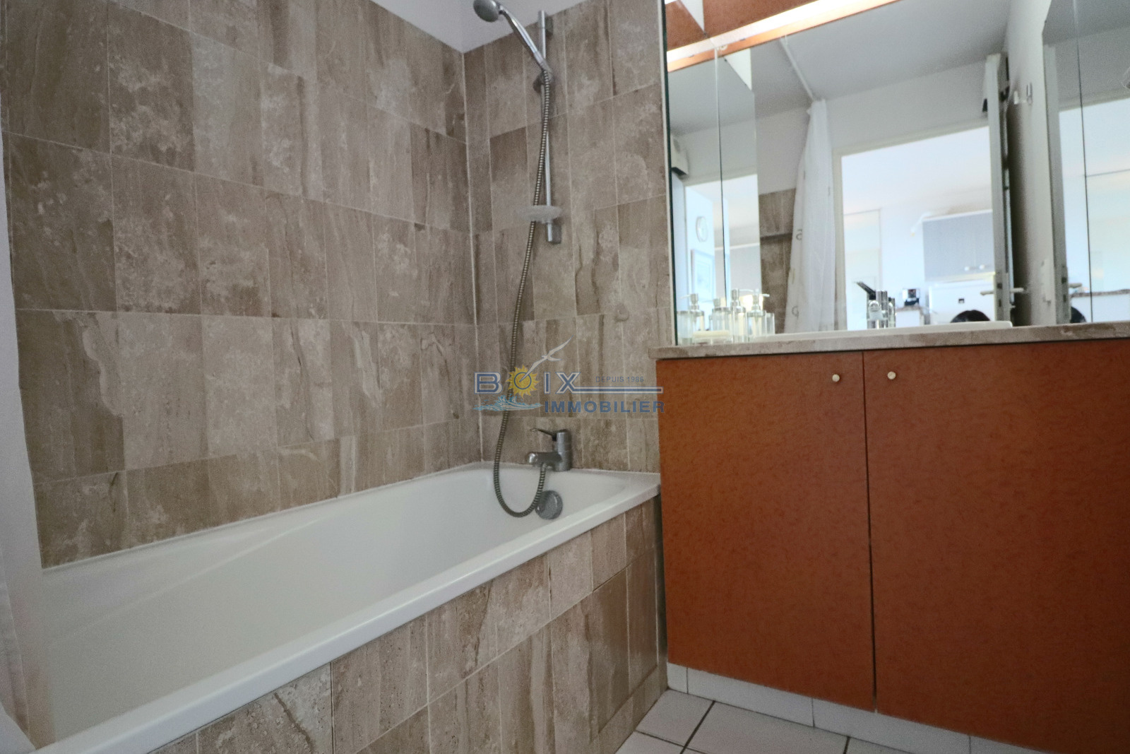 Location de vacances à Sète, idéalement située à La Corniche, dans une résidence avec piscine et à proximité de la plage de sable du Lazaret. Vous séjournerez dans un appartement climatisé avec terrasse vue sur la mer. Ce 2 piéces cabine au 3éme étage avec ascenseur comprend un séjour avec canapé convertible et télévision écran plat, la kitchenette est équipée d'une plaque électrique 4 feux, d'un mini four, d'un lave-vaisselle et d'un réfrigérateur. La salle de bains et les wc sont séparés. Les enfants pourront dormir dans la cabine indépendante sur les lits superposés. La chambre avec lit double et placard donne sur la terrasse comme le séjour. Profitez de la vue imprénable sur la mer de votre terrasse équipée du salon de jardin et transat. Le prix hors saison est de 440€/semaine, en très haute saison le prix est de 960€/semaine. N'hésitez pas à nous contacter pour les tarifs et disponibilités au 04.67.51.50.50 et infos@boix-immobilier.fr du lundi au samedi inclus.