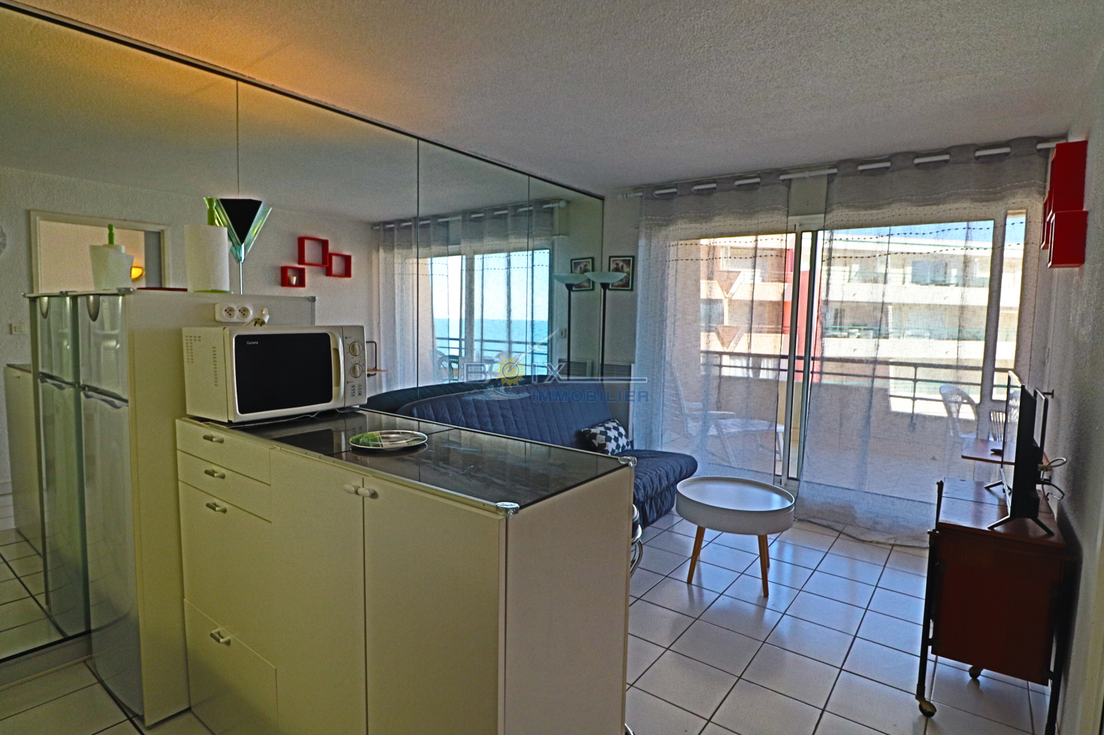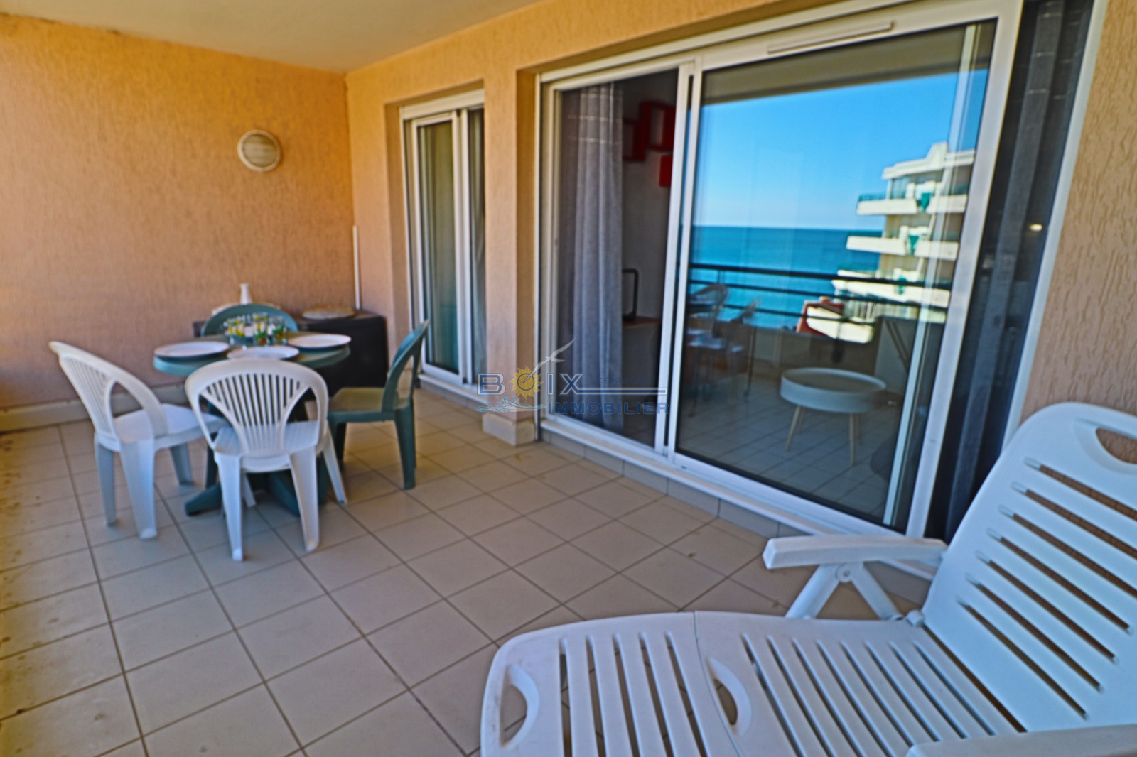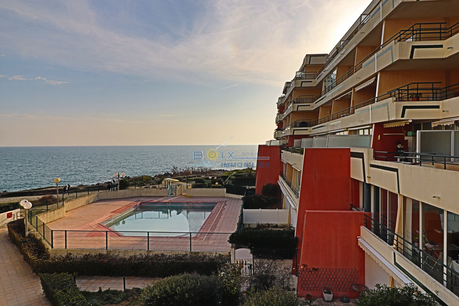 Location de vacances à Sète, quartier La Corniche, jolie résidence face à la mer avec piscine, située à 100 mètres de la plage du Lazaret et à 200 mètres des commerces et restaurants. Cet appartement 2 pièces cabine, au 4ème étage avec ascenseur comprend une cabine indépendante avec 2 lits superposés, un salon avec canapé convertible et télévision, une kitchenette équipée avec four, micro-ondes, plaques chauffantes vitro céramiques, réfrigérateur/congélateur, lave-vaisselle et lave-linge, une chambre avec un lit double donnant sur la terrasse, salle de bains et wc séparés. Vous pourrez profiter de la vue sur la mer de votre terrasse équipée du salon de jardin. Hors saison: 400€/semaine. Très haute saison 860€/semaine. Bon plan hors juillet/août, en réservant 2 semaines consécutives, la troisième est offerte (en cas de chevauchement des périodes, la semaine offerte est celle au tarif le plus bas). N'hésitez pas à nous contacter pour les tarifs et disponibilités du lundi au samedi inclus 04.67.51.50.50 et infos@boix-immobilier.fr