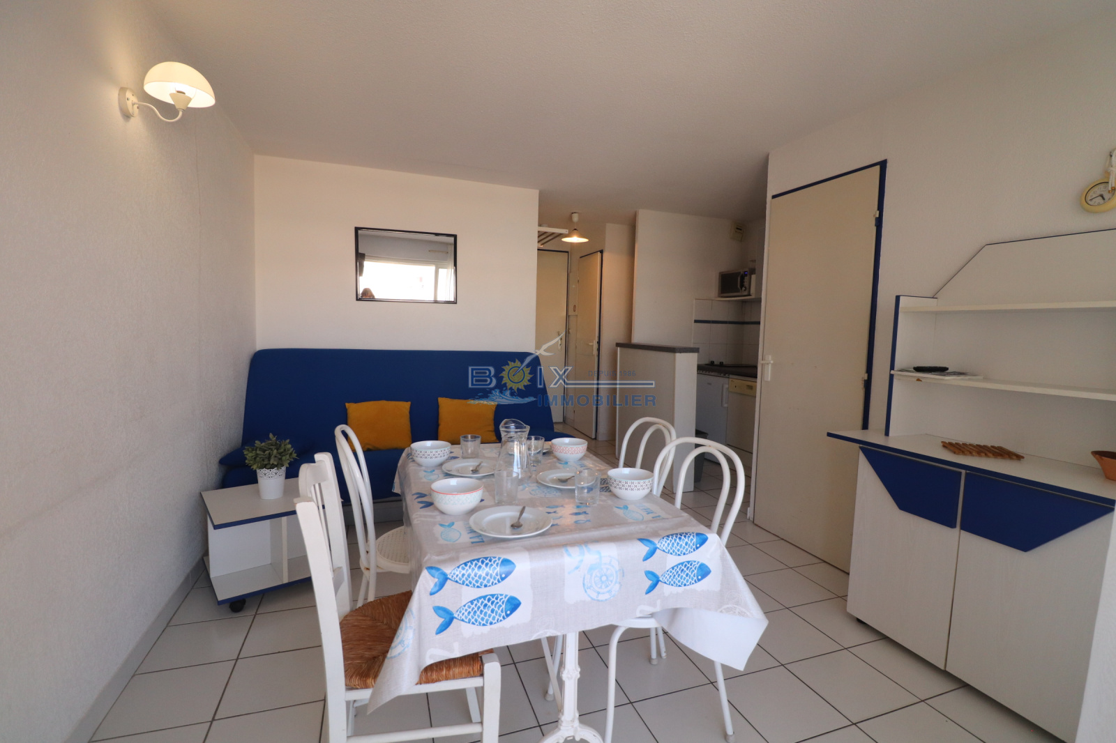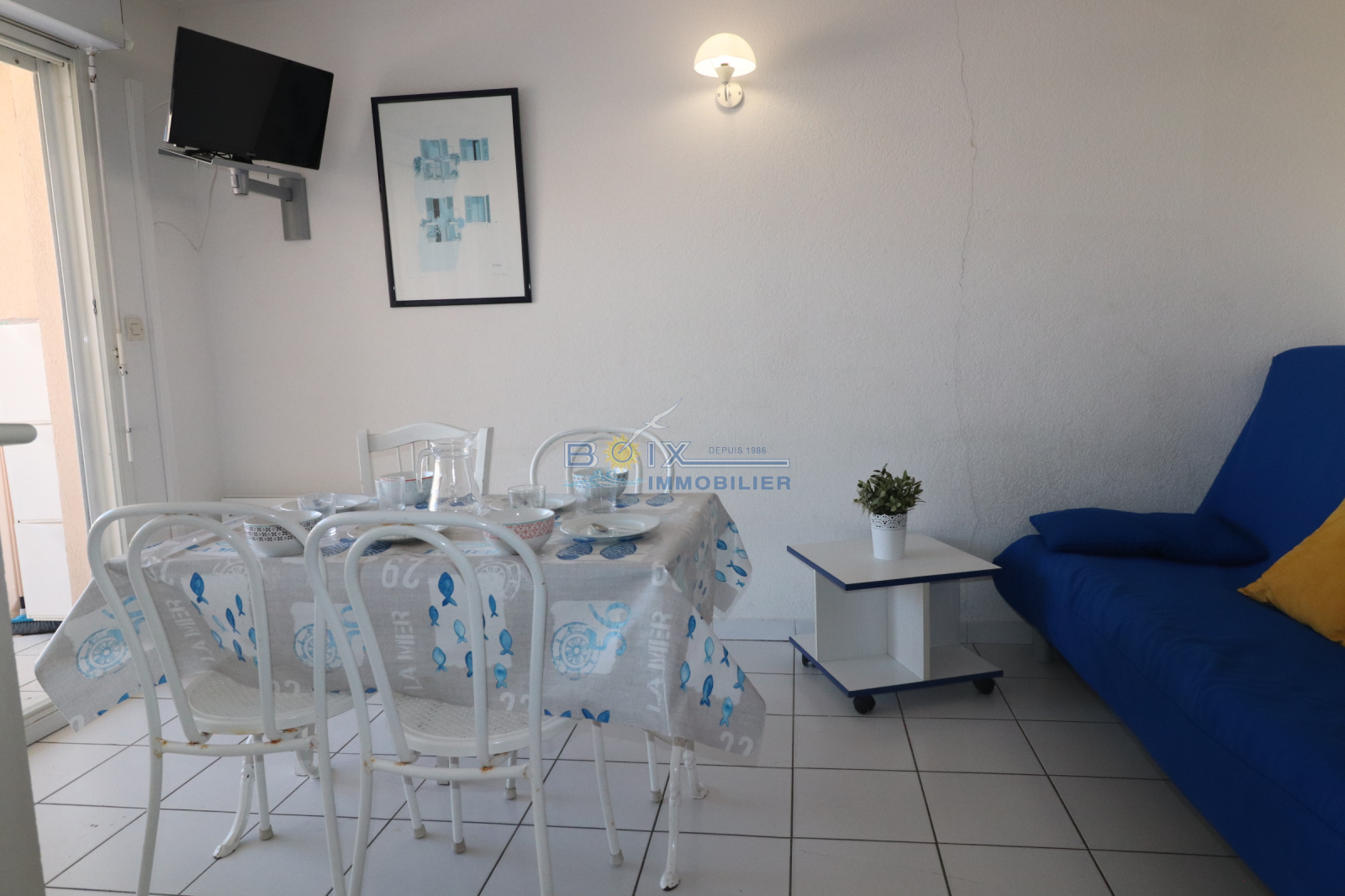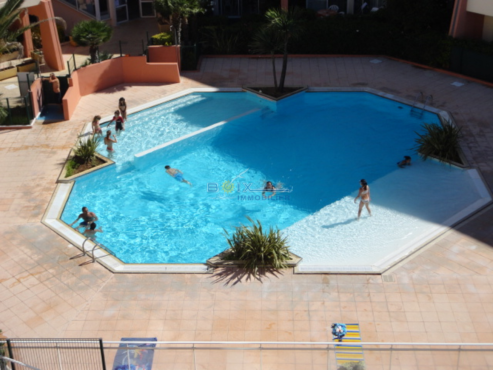 Location de vacances à Sète, quartier La Corniche, 2 pièces+cabine situé au 4 ème étage d'une résidence avec piscine et ascenseur. Ce logement avec vue sur la mer et la piscine comprend une chambre avec placard et lit double, une cabine indépendante avec lits superposés, un séjour avec canapé convertible et télevision, une kitchenette équipée avec le lave-vaisselle, plaques chauffantes, réfrigerateur, four, une salle de bains avec baignoire, wc séparés. Terrasse avec salon jardin. Accés au parking de la résidence, plage du Lazaret à 100m. Le quartier est vivant toute l'année grâce à ses commerces, ses restaurants, son casino, un rendez-vous hebdomadaire pour son marché le jeudi et la brocante du lundi. Vous pourrez rejoindre le port et le centre-ville très facilement à pied ou en bus. Hors saison: 380€/semaine. Trés haute saison: 860€/semaine .Bon plan hors juillet/août, en réservant 2 semaines consécutives, la troisième est offerte (en cas de chevauchement des périodes, la semaine offerte est celle au tarif le plus bas). N'hésitez pas à nous contacter pour les tarifs et disponibilités du lundi au samedi inclus 04.67.51.50.50 et infos@boix-immobilier.fr .