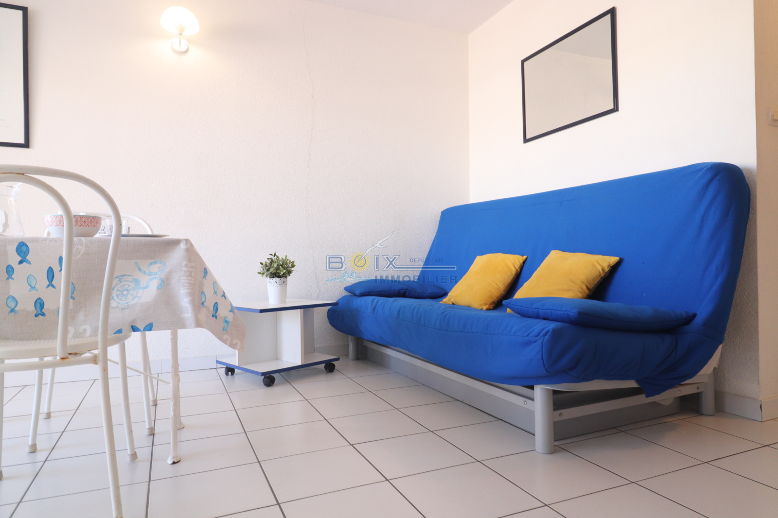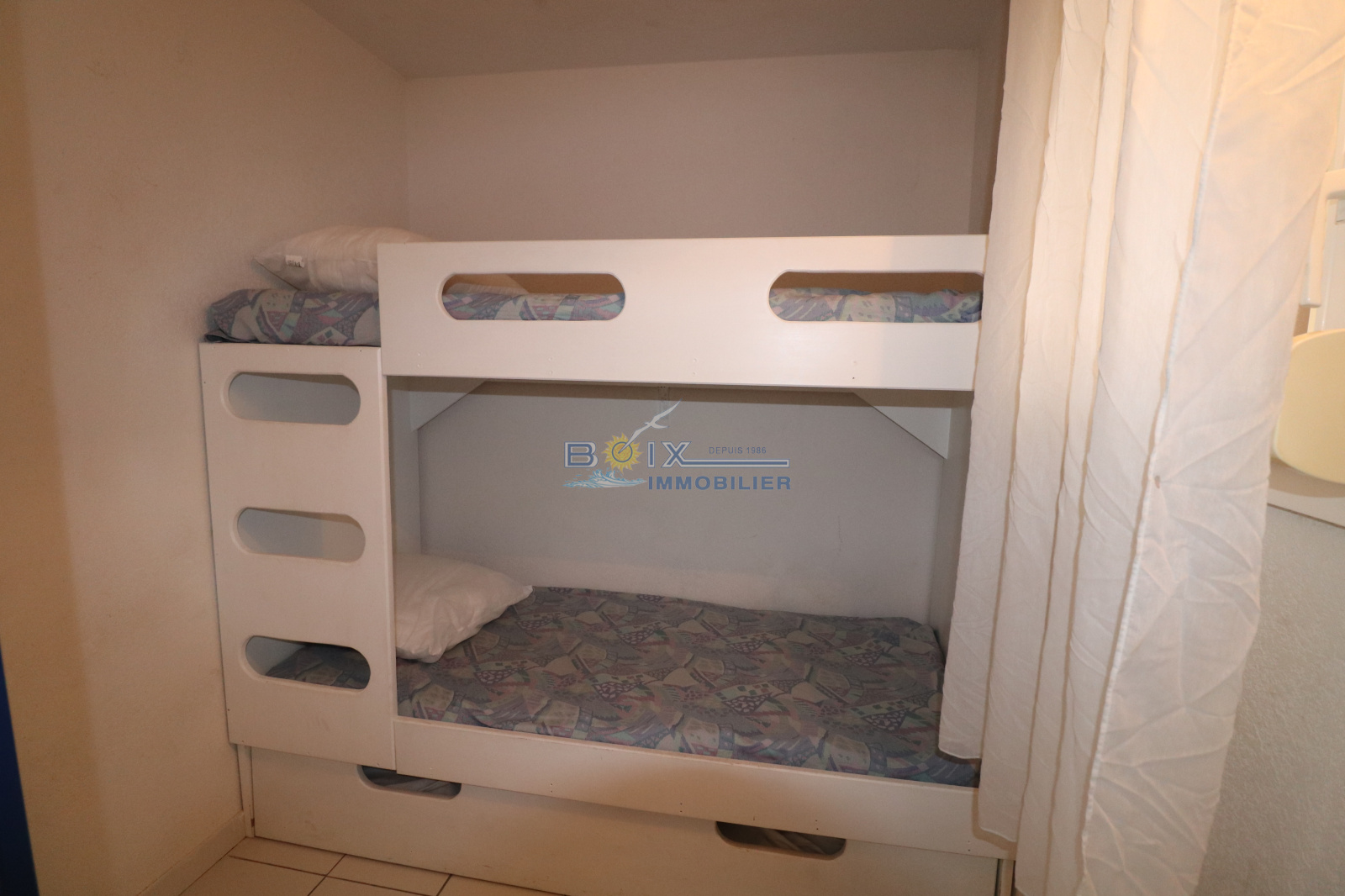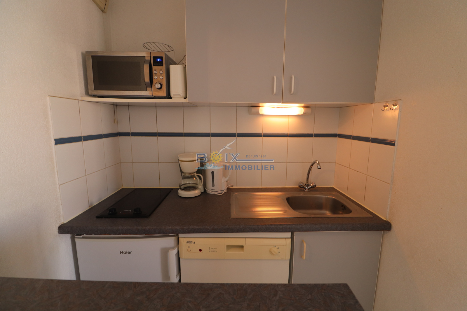 Location de vacances à Sète, quartier La Corniche, 2 pièces+cabine situé au 4 ème étage d'une résidence avec piscine et ascenseur. Ce logement avec vue sur la mer et la piscine comprend une chambre avec placard et lit double, une cabine indépendante avec lits superposés, un séjour avec canapé convertible et télevision, une kitchenette équipée avec le lave-vaisselle, plaques chauffantes, réfrigerateur, four, une salle de bains avec baignoire, wc séparés. Terrasse avec salon jardin. Accés au parking de la résidence, plage du Lazaret à 100m. Le quartier est vivant toute l'année grâce à ses commerces, ses restaurants, son casino, un rendez-vous hebdomadaire pour son marché le jeudi et la brocante du lundi. Vous pourrez rejoindre le port et le centre-ville très facilement à pied ou en bus. Hors saison: 380€/semaine. Trés haute saison: 860€/semaine .Bon plan hors juillet/août, en réservant 2 semaines consécutives, la troisième est offerte (en cas de chevauchement des périodes, la semaine offerte est celle au tarif le plus bas). N'hésitez pas à nous contacter pour les tarifs et disponibilités du lundi au samedi inclus 04.67.51.50.50 et infos@boix-immobilier.fr .
