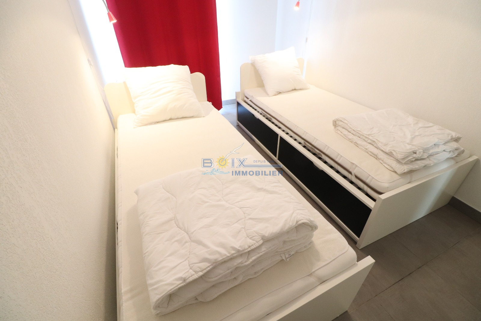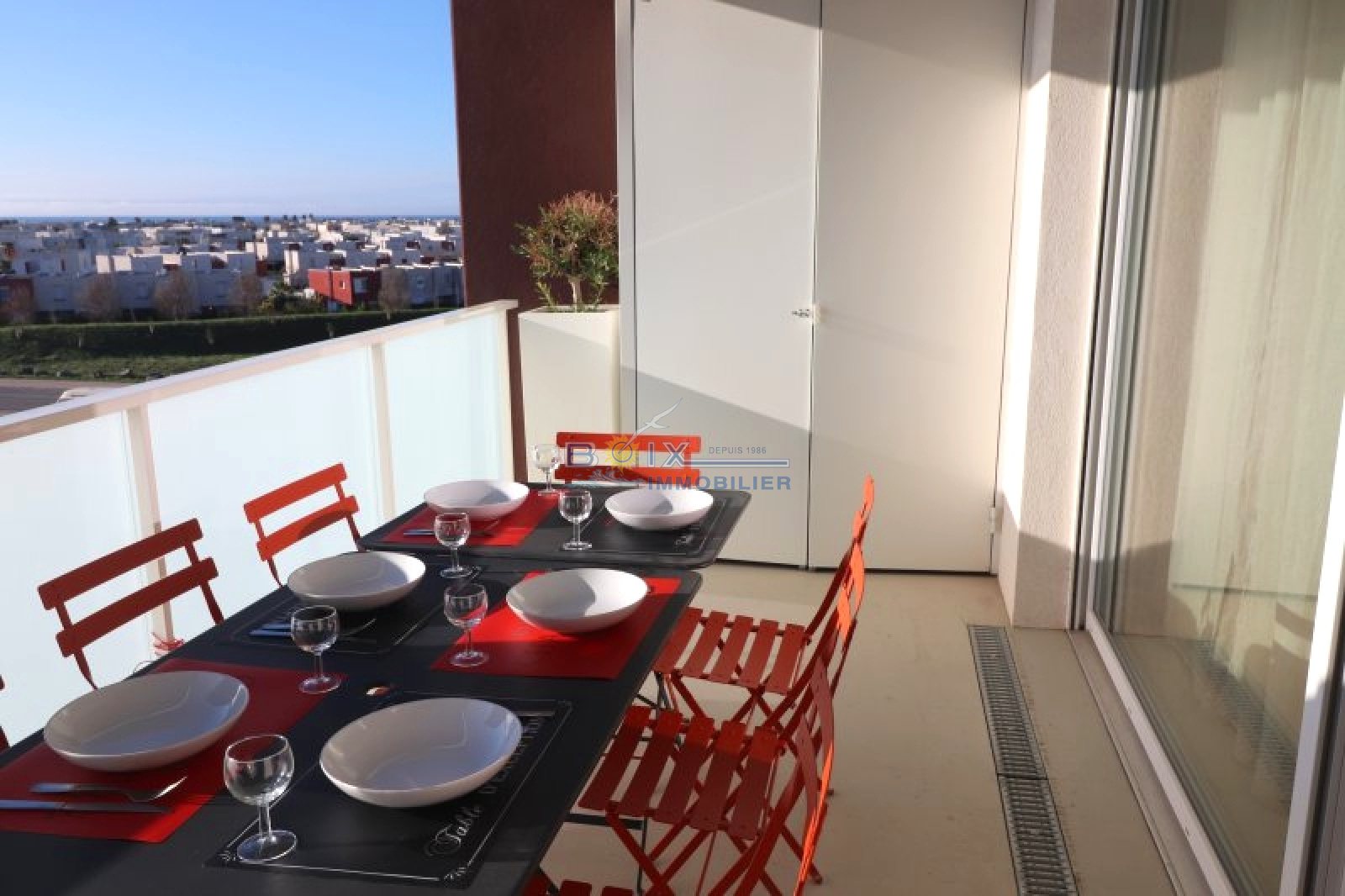 Location de vacances à Sète, à 500m de la plage, situé dans le nouveau quartier des "Salins". Au 3ème étage avec ascenceur, vous séjournerez dans un très joli 3 pièces neuf et aménagé avec goût pour 6 personnes. Vous profiterez d'une belle terrasse exposée Sud avec vue horizon sur la mer. De plus, vous trouverez un séjour spacieux avec télévision et canapé convertible donnant sur une cuisine américaine aménagée et équipée (four, micro ondes, plaques de cuisson, réfrigérateur/congélateur, lave-vaisselle, placard). Pour les couchages, vous aurez deux chambres à votre disposition dont une avec un lit en 160 et l'autre avec deux petits lit en 90 idéal pour les enfants. La salle d'eau dispose d'une douche, des toilettes séparées avec machine à laver. Vous aurez également accés à deux parkings privatifs sécurisés dans le sous-sol de la résidence. Emplacement d'exception dans un quartier réputé, à deux pas de la plage et de son somptueux lido, grâce aux nombreux commerces qui se trouvent à proximité de votre logement. En effet, vous pourrez rencontrer nos producteurs locaux grâce aux "Halles des Salins" le marché couvert convivial ou bien à la biscuiterie "les zezettes de Sète". Vous pourrez donc en profitez autant en été qu'en hiver. Bon plan hors juillet/août, en réservant 2 semaines consécutives, la troisième est offerte (en cas de chevauchement des périodes, la semaine offerte est celle au tarif le plus bas). Tarif: à partir de 460 € jusqu'à 920 € selon la période. L'Agence Boix Immobilier est à votre service, depuis plus de 30 ans. N'hésitez pas à nous contacter pour les disponibilités et pour une réservation en 10min du lundi au samedi inclus au 04.67.51.24.43 ou info@boiximmo.com