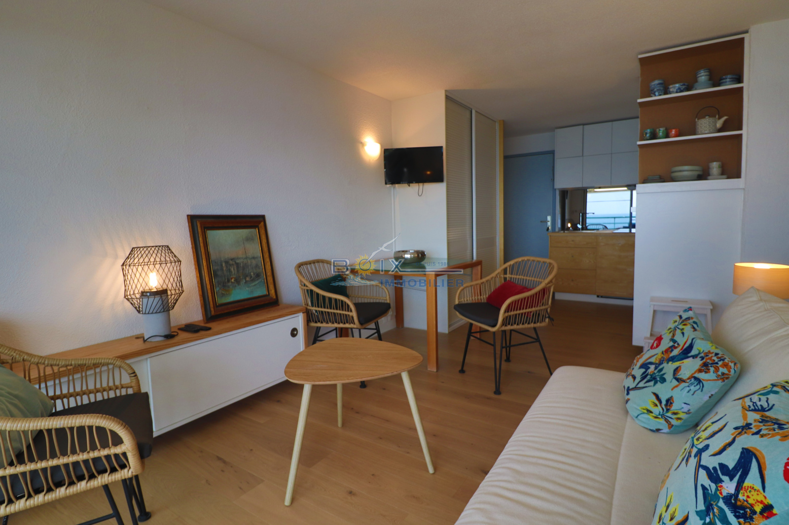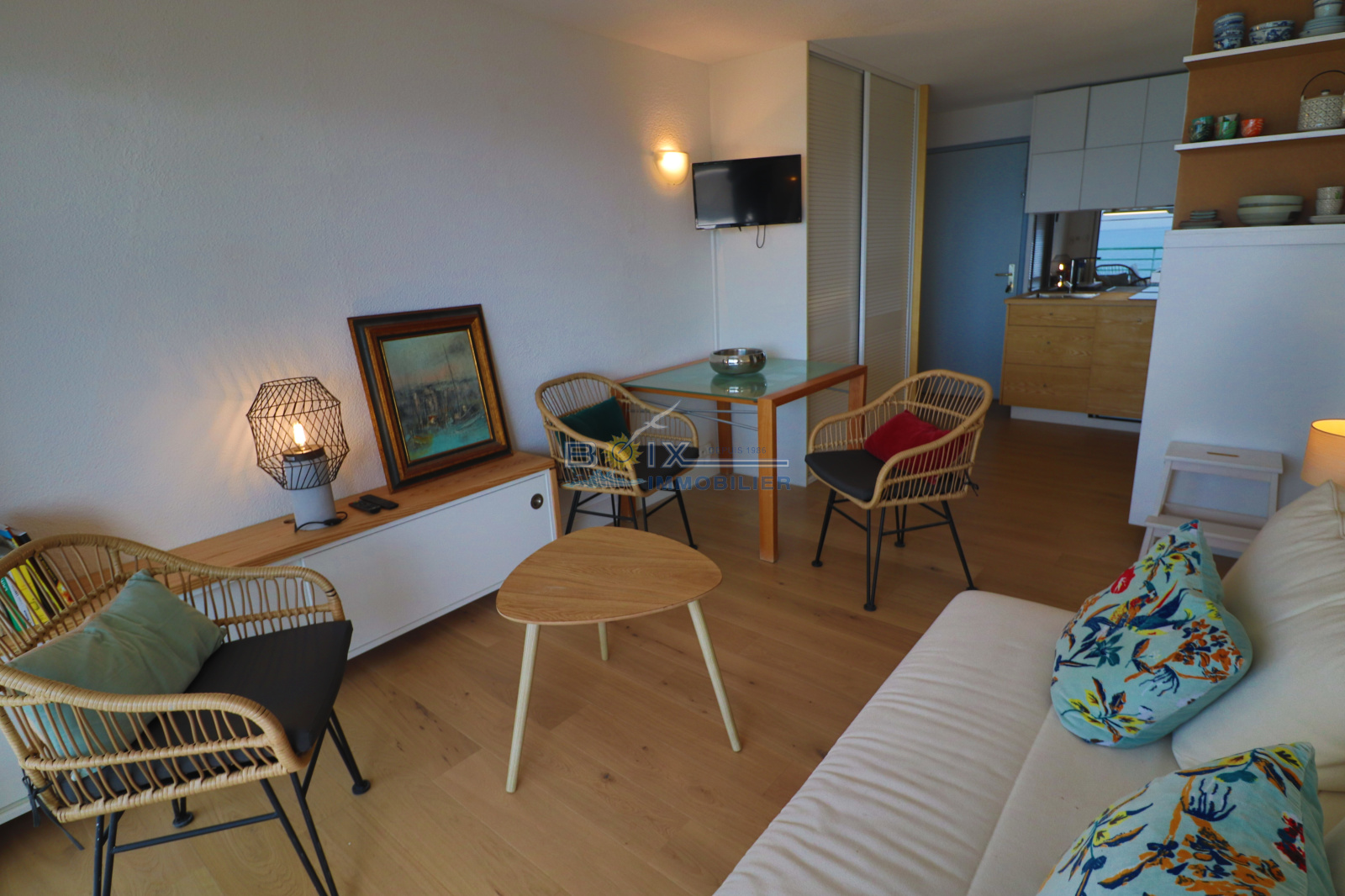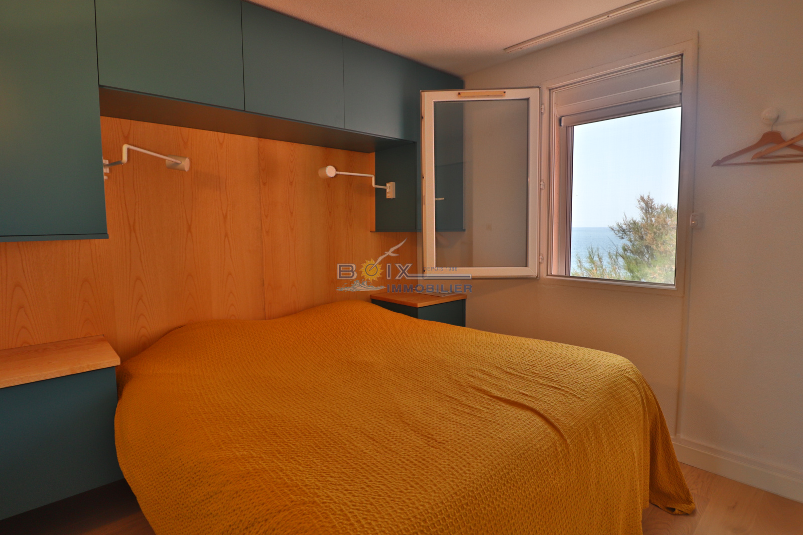Au 1er étage (asc) Magnifique 3 pièces entièrement rénové avec goût, tout équipé avec climatisation, wifi et box privé en sous-sol. Il se compose: - cuisine toute équipée avec nombreux rangements, combiné réfrigérateur/congélateur, four encastré, lave-vaisselle..)- donnant sur un séjour avec canapé, télévision, wifi et climatisation - belle terrasse 11m² face à la mer, avec table de jardin, transats, plancha grill - 1ere chambre avec lit double 160 et climatisation- 2 ème chambre avec lit double 140 et un lit 90 en mezzanine avec accés sur la terrasse - salle d'eau avec douche et lave-linge - toilette séparé. Box privatif au sous-sol de la résidence, accessible par l'ascenseur. Le quartier est vivant toute l'année grâce à ses commerces, ses restaurants, son casino, un rendez-vous hebdomadaire pour son marché le jeudi et la brocante du lundi. Vous pourrez rejoindre le port et le centre-ville très facilement à pied ou en bus. Tarif à partir de (Hors saison) : 640€/semaine jusqu'à (Très haute saison) 1290€€/semaine. N'hésitez pas à nous contacter pour les tarifs et disponibilités du lundi au samedi inclus 04.67.51.50.50 et infos@boix-immobilier.fr