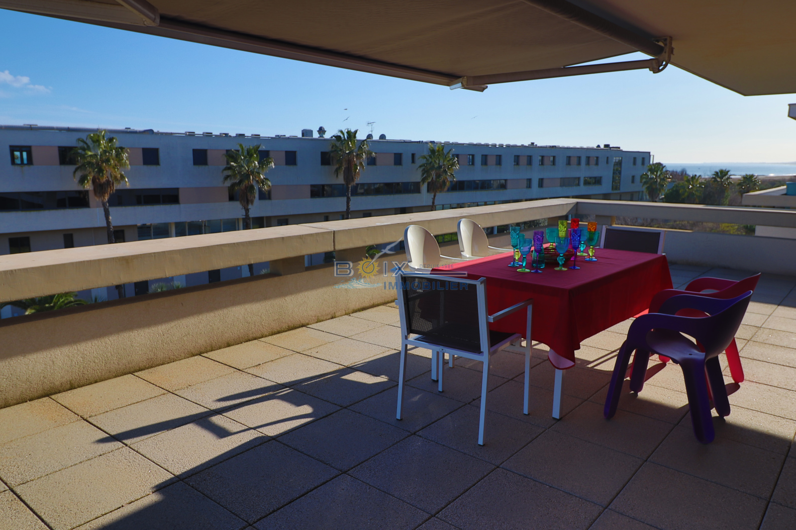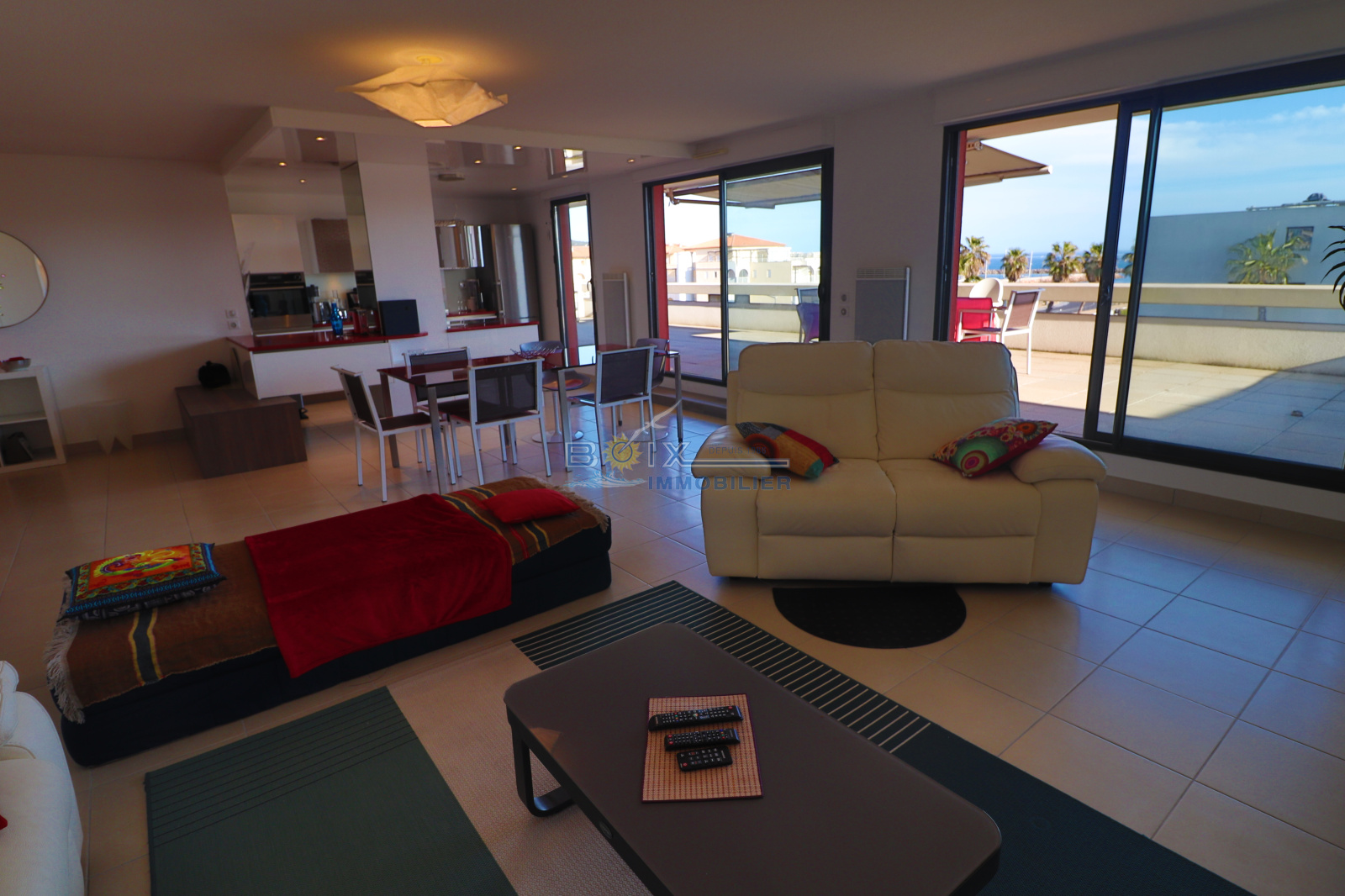 Location de vacances à Sète, trés proche de la plage du Lido, vous séjournerez dans une résidence de standing récente avec piscine. Cet appartement de 4 pièces dont 3 chambres, est prévu pour 6 personnes. Il est composé d'une cuisine américaine équipée (réfrigérateur, congélateur, plaques de cuisson, four) ouverte sur la pièce de vie. Les plus : une magnifique terrasse de 97 m2 et 2 places de parking privatives. Tarifs : à partir de 1010 euros la semaine jusqu'à 1990 euros selon la période. L'agence BOIX Immobilier est à votre service depuis plus de 30 ans. N'hésitez pas à nous contacter pour les disponibilités et pour une réservation du lundi au samedi au 04.67.51.24.43 ou par mail : info@boiximmo.com