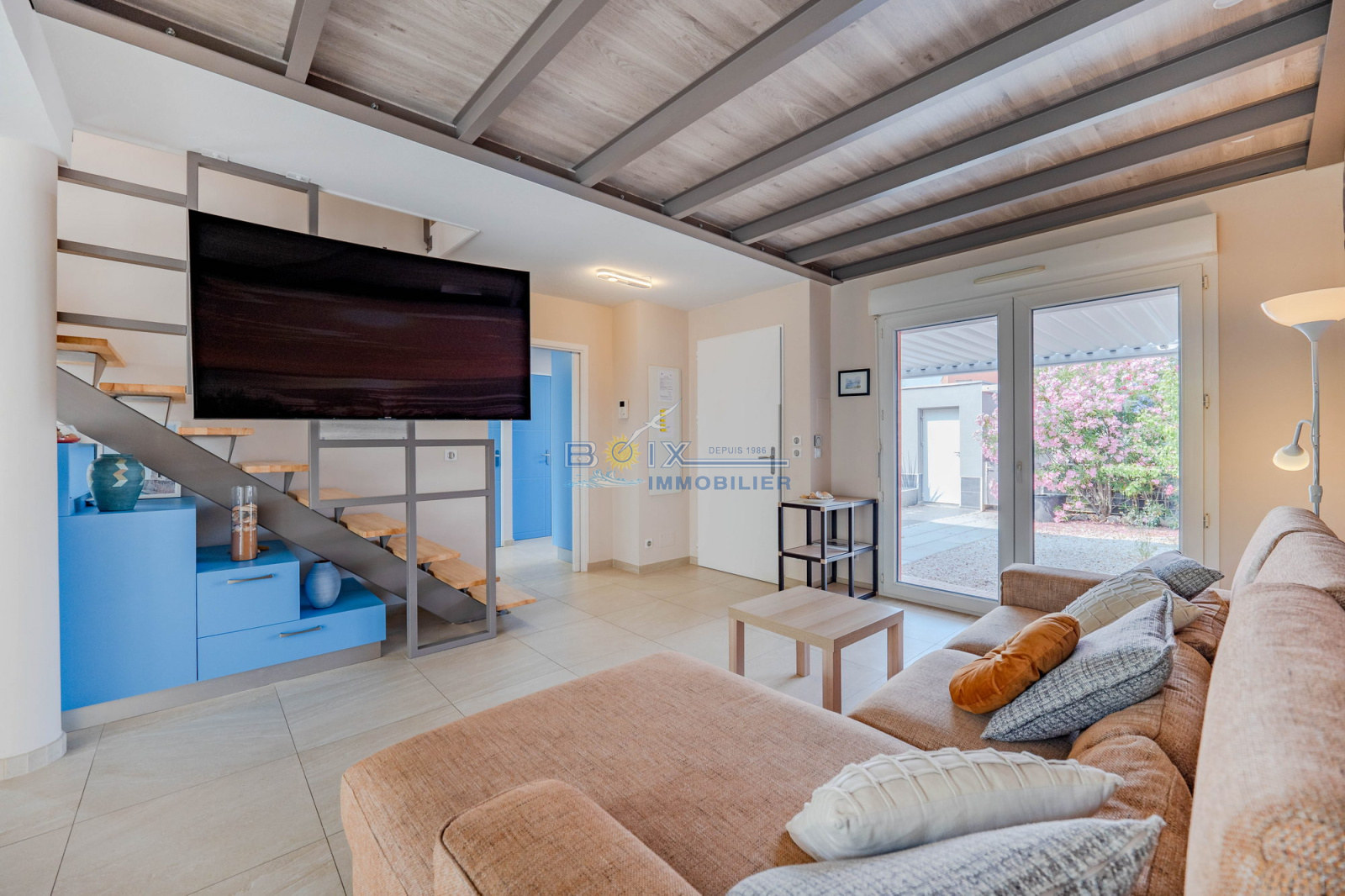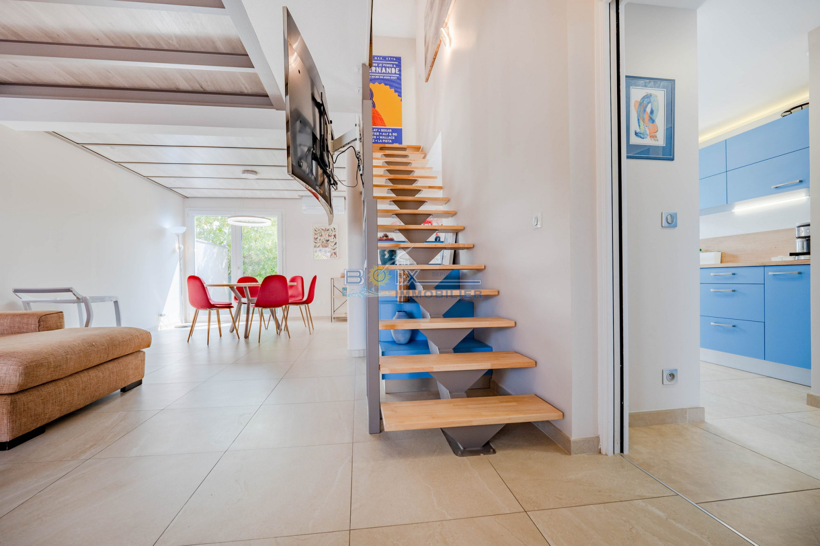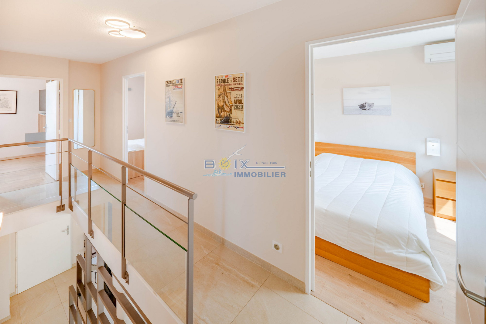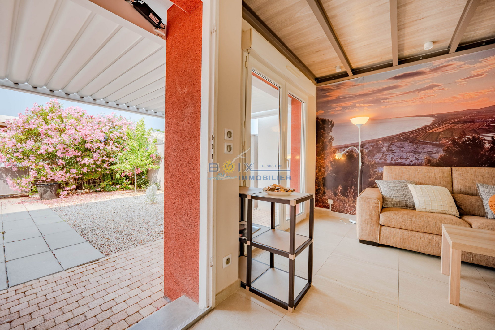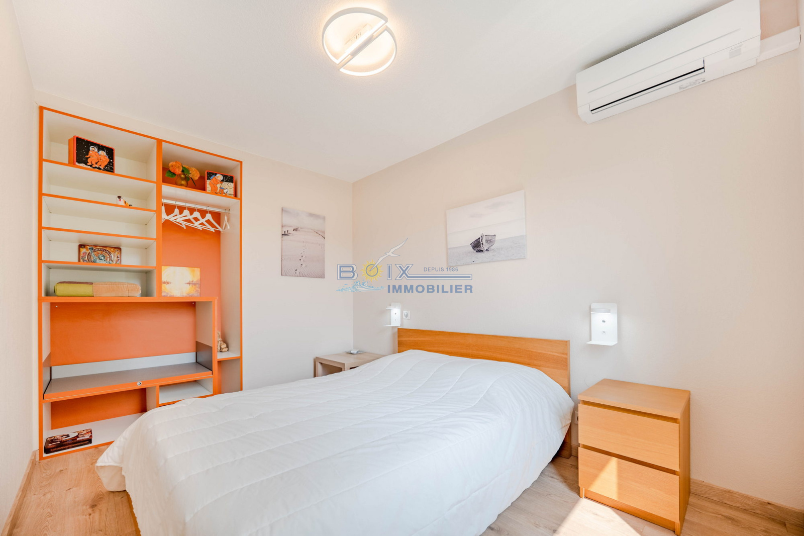 Jolie Villa sur deux niveaux située dans un lotissement avec accès à la piscine commune. Très bien équipée, lave-linge, sèche-linge, lave-vaisselle, climatisation. De plain-pied grand séjour salon avec cuisine ouvrant sur un jardin permettant des prises de repas sur l’extérieur. A l’étage, trois chambres avec un lit pour deux personnes (1 en 160 et 2 en 140) dont une chambre avec T.V, salle de bains avec baignoire et douche, WC à chaque niveau et nombreux rangements, jardin également sur le devant. Place de parking privative. Accés piéton à la plage 400 mètres.TARIFS : basse saison à partir de 960.00 euros/semaine - Tres haute saison à partir de 2050.00 euros/semaine. CONTACT : BOIX IMMOBILIER Tel 04.67.51.24.43 Mail : info@boiximmo.com