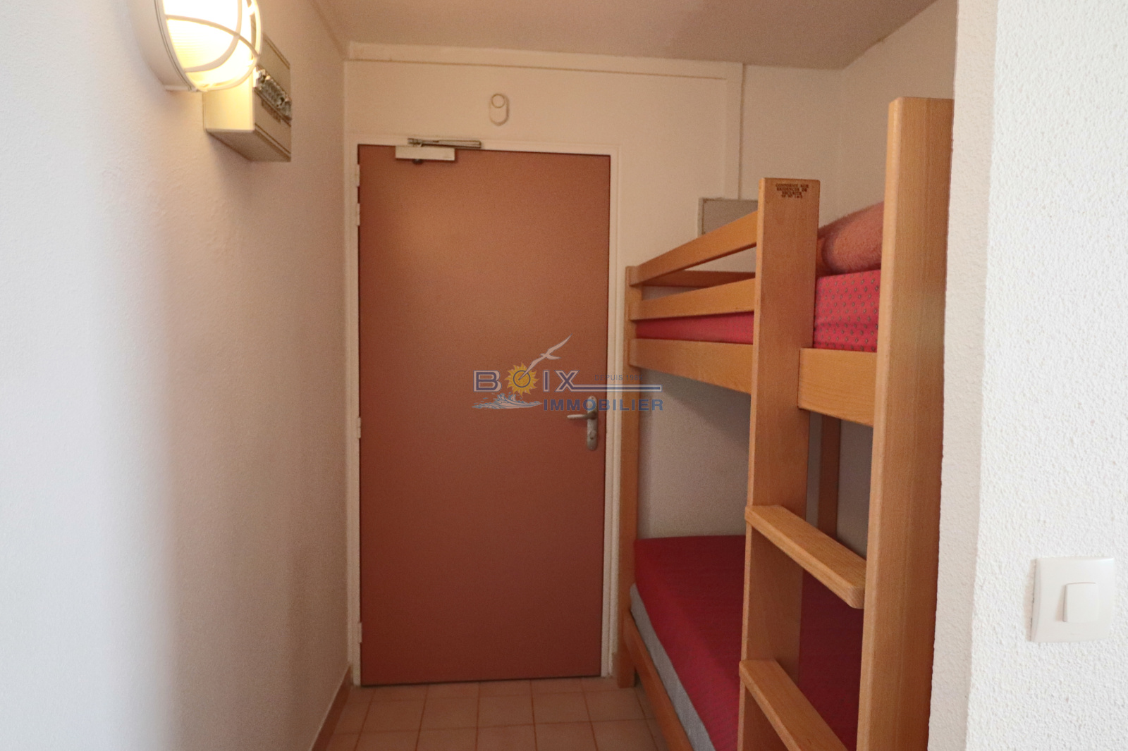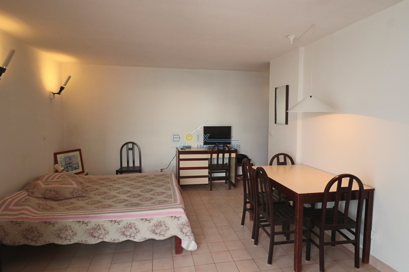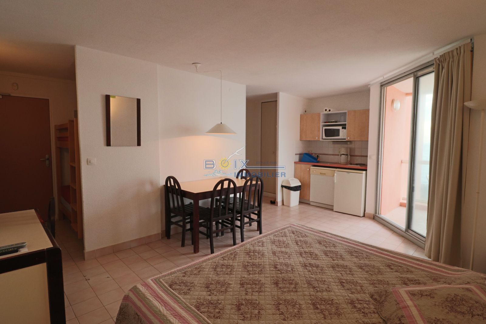 Vend studio cabine à la Corniche à Sète. Ce logement situé au 1er étage se compose d'un grand séjour avec sa kitchenette équipée, d'un coin cabine avec des lits superposés, d'une salle de bains, de wc indépendants et d'une terrasse avec jolie vue sur la mer. Vendu meublé, il dispose d'un grand parking privé en sous/sol. Nombreuses prestations dans la résidence : piscine, gardien, tennis... Renseignements et visites : Gérard BOIX : 04 67 51 50 50 - infos@boix-immobilier.fr
