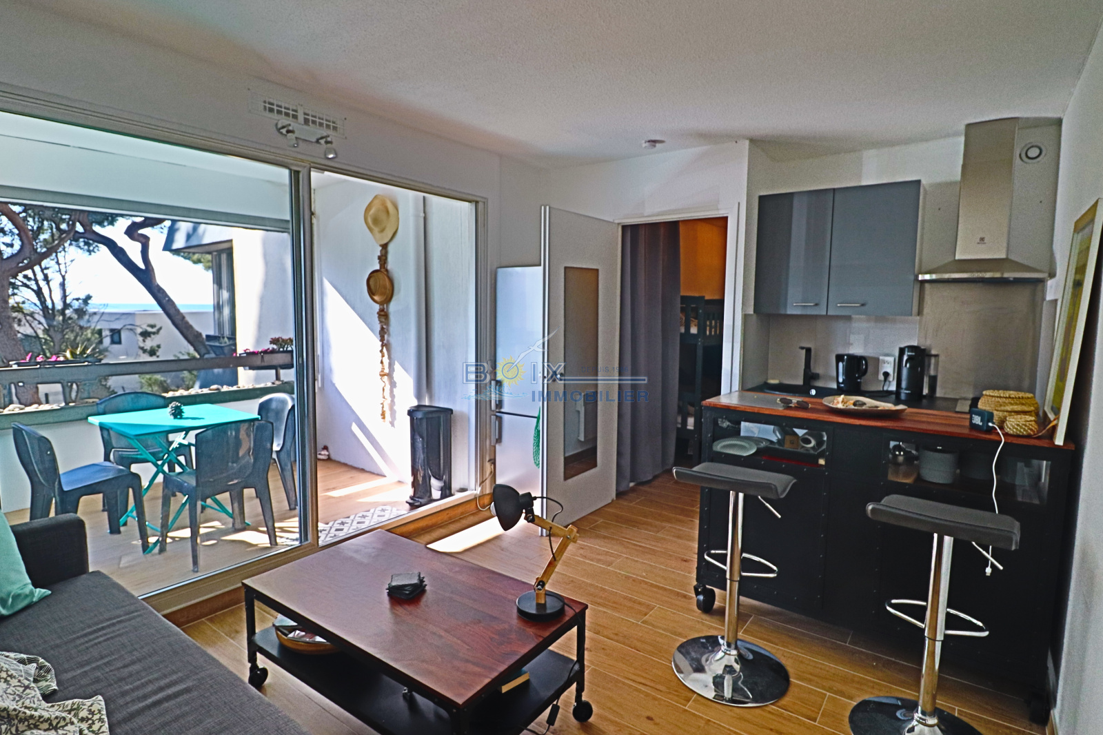 Vend appartement à la Corniche à Sète. Dans une résidence en bord de plage, joli studio cabine au 1er étage comprenant un séjour avec coin cuisine, une salle de bain , WC indépendants, un coin cabine avec 2 lits superposés ainsi qu'une agréable terrasse avec vue mer. Parking privé dans la résidence, commerces à proximité. Réf : 1027va. Contact et visite : Gérard BOIX - 04.67.51.50.50 ; infos@boix-immobilier.fr