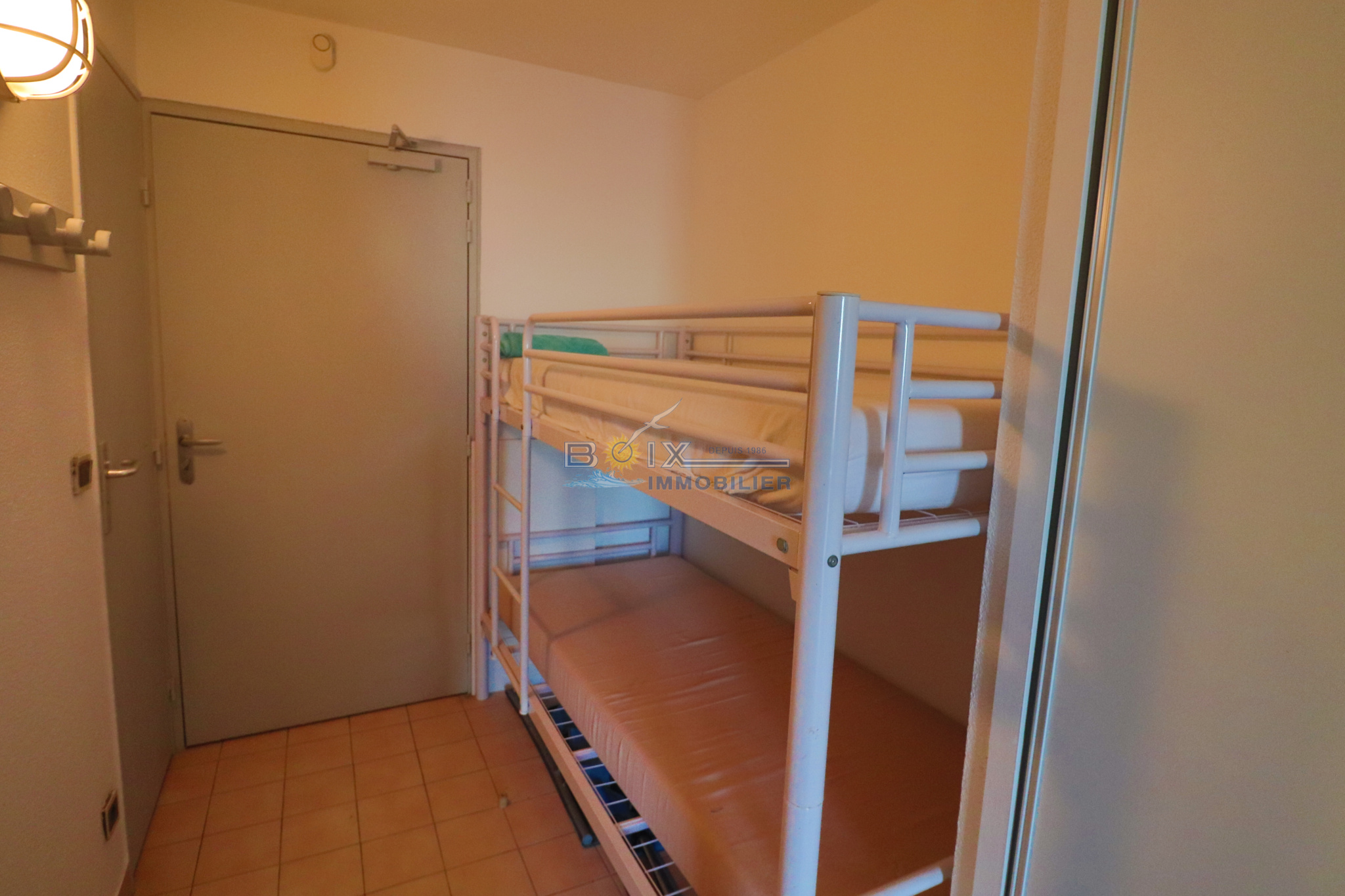 Vente appartement vue mer à Sète, dans le quartier de la Corniche. Ce très joli studio cabine, joliment meublé, est situé en première ligne mer fait face à la méditerranée. Situé au premier étage, il dispose d'un grand séjour climatisé, équipé d'une kitchenette ouvrant sur une terrasse. Une salle de bains, des WC séparés complètent l'aménangement ainsi qu'une cabine pouvant acceuillir deux lits superposés. Idéal pour vos vacances ou pour des séjours prolongés au soleil du sud, vous trouverez dans la résidence une piscine, des courts de tennis et à proximité les plages et tous les commerces dans un quartier vivant à l'année. Pour toute visite Gérard Boix , Boix Immobilier 04 67 51 50 50
