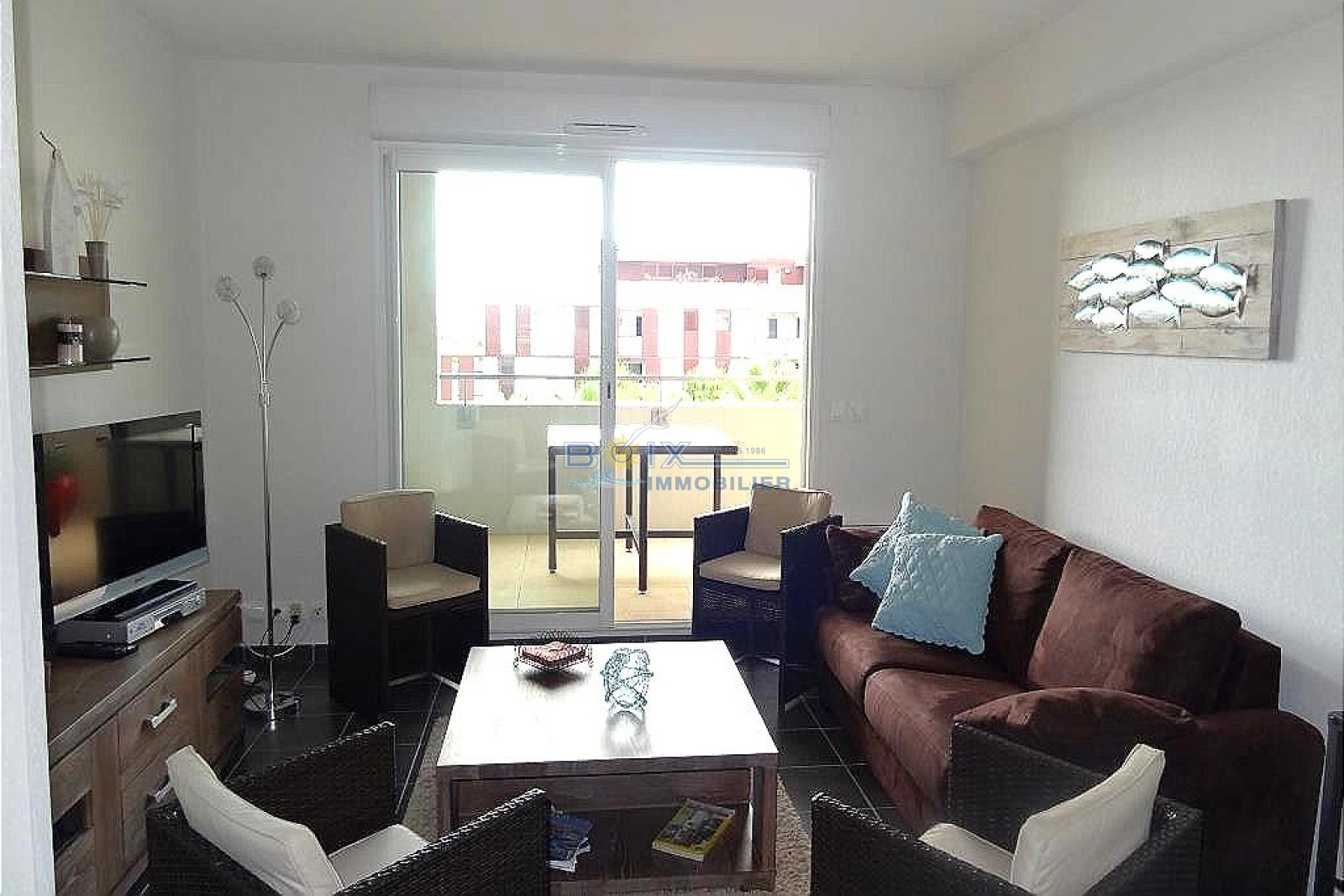 Quartier du VILLEROY dans une résidence de standing avec piscine à 100m de la plage et des commerces, un appartement 2 Pièces très spacieux composé d'un séjour avec cuisine ouvrante sur une grande terrasse offrant une vue imprenable sur l'étang de Thau, d'une chambre, d'une salle de bains, et d'un WC séparé. Parking privatif dans la copropriété. Vous pouvez nous contacter. Boix immobilier : 04 67 51 24 43 / info@boiximmo.com