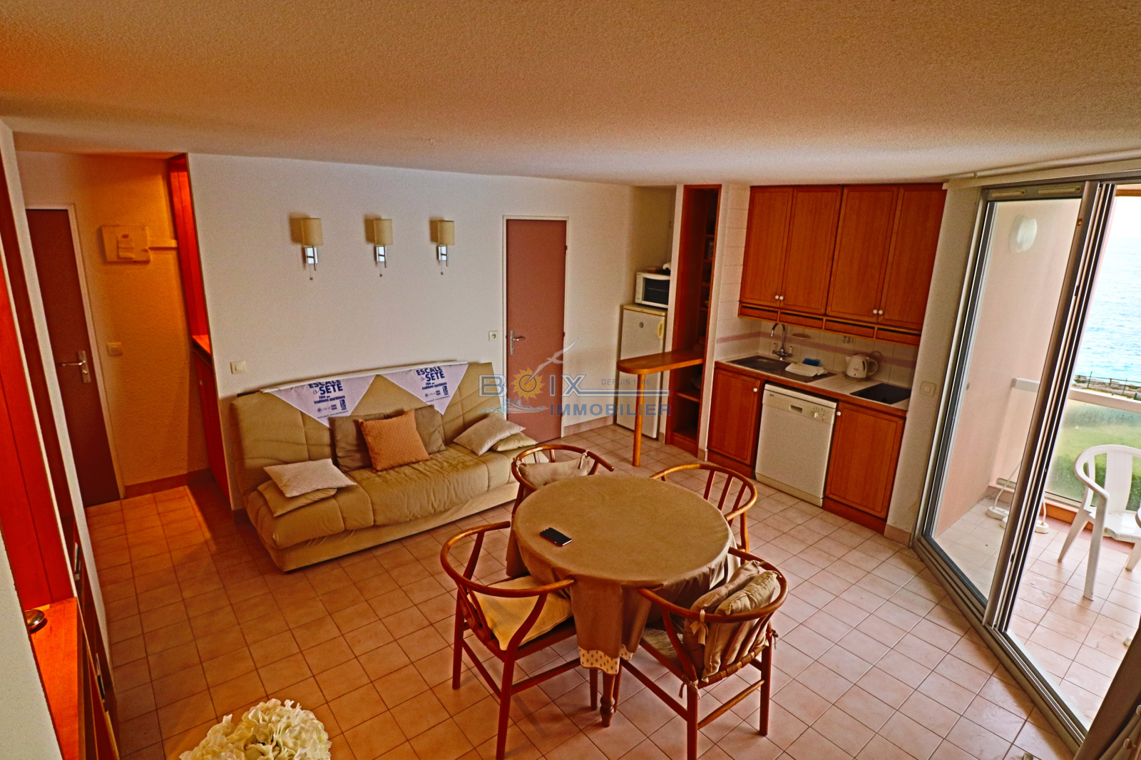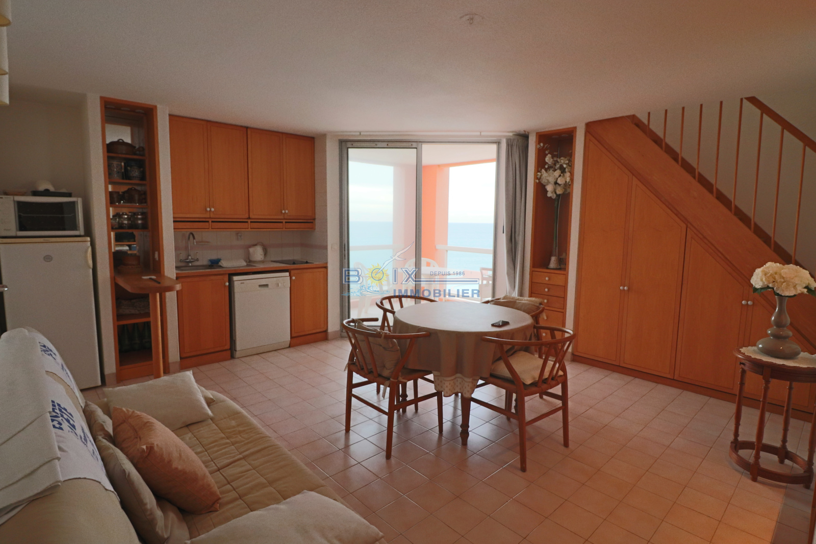 Vente appartement à la Corniche à Sète. Appartement en duplex situé dans une résidence proche des plages et du centre de la Corniche et tous ses commerces. Il se compose d'un grand séjour avec cuisine équipée donnant accès à une terrasse couverte avec vue sur la mer, d'une salle d'eau avec wc et de nombreux placards de rangements. A l' étage, une grande chambre parentale avec salle de bains, un wc indépendants, un coin cabine qui peut être aménagé en couchage ou en bureau et une terrasse solarium sans vis à vis. Vendu meublé, équipé lave linge, sèche linge. Grand parking privé en sous/sol proche de l'ascenseur. Nombreuses prestations dans la résidence. Renseignements et visites : Gérard BOIX au 04 67 51 50 50 - infos@boix-immobilier.fr