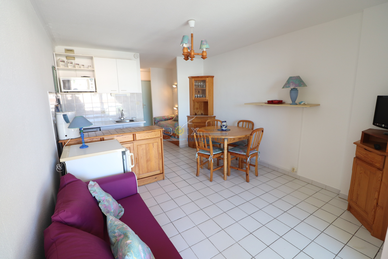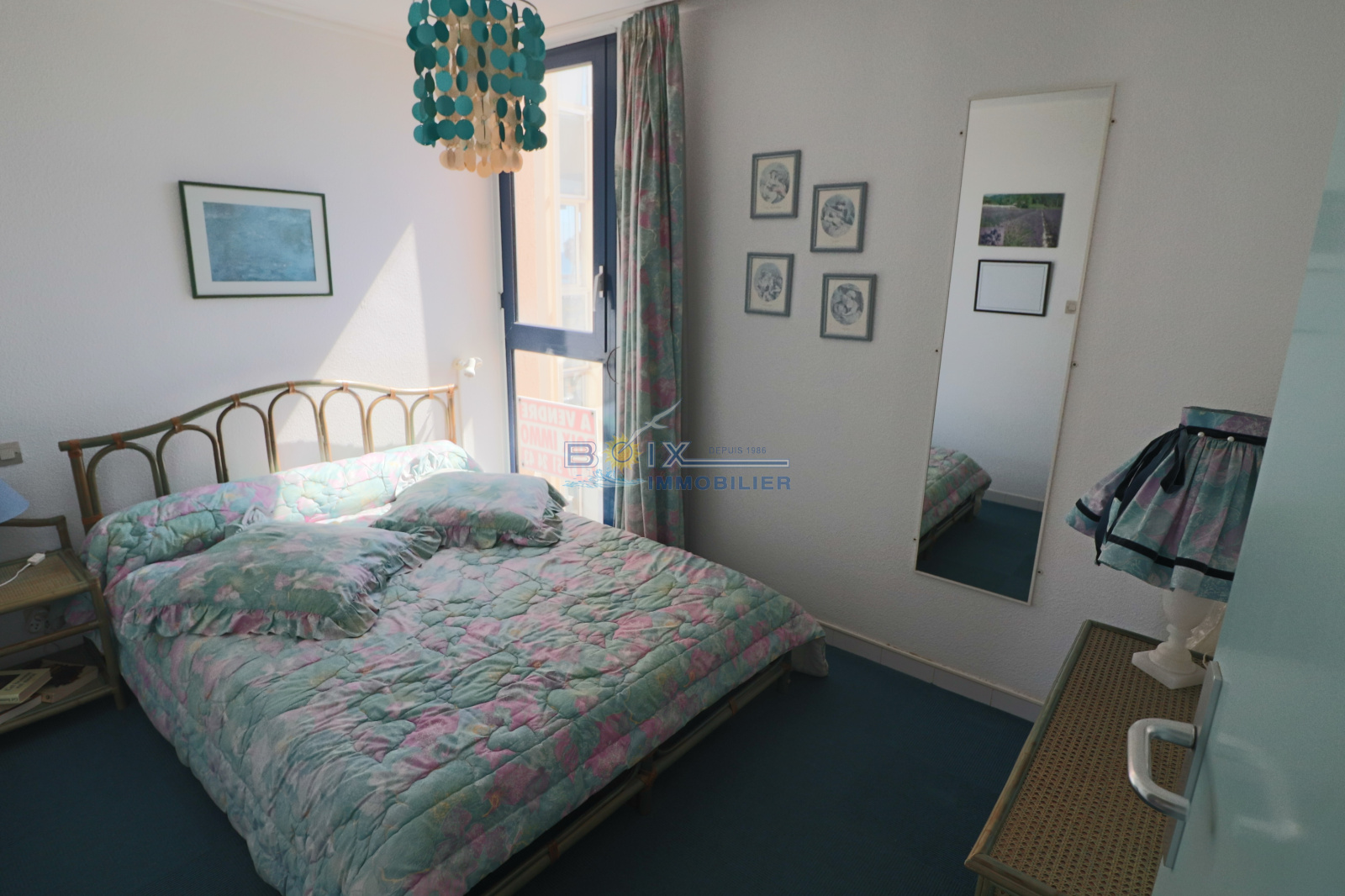 Vente dans la Marina du Port des Quilles, spacieux deux pièces cabine de 33 m² habitable traversant avec vue sur les bateaux et vue mer. Situé au troisième étage avec un accès par ascenseur, il a double orientation Est/Ouest. Il est composé d'une entrée, d'une chambre confortable. La salle d'eau et le WC sont séparés. La cabine permet du couchage supplémentaire. Le séjour avec sa kichenette équipée est prolongé par une loggia de plus de 8 m². Entièrement rénové, vous apprécierez ses vues, sa situation, son niveau élevé. Il est vendu meublé avec un parking privatif auquel on accède avec télécommande. A 80 m de la plage, les commerces sont à proximité. Excellent choix pour des vacances à Sète dans un quartier très agréable. Visites et renseignements Boix Immobilier 04 67 51 24 43, à visiter sans tarder