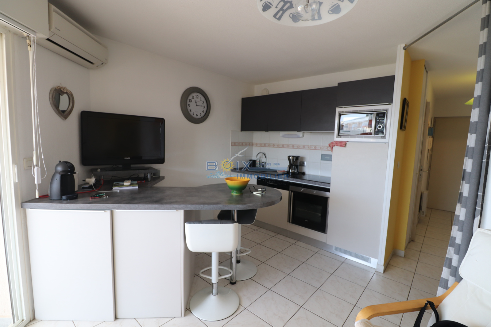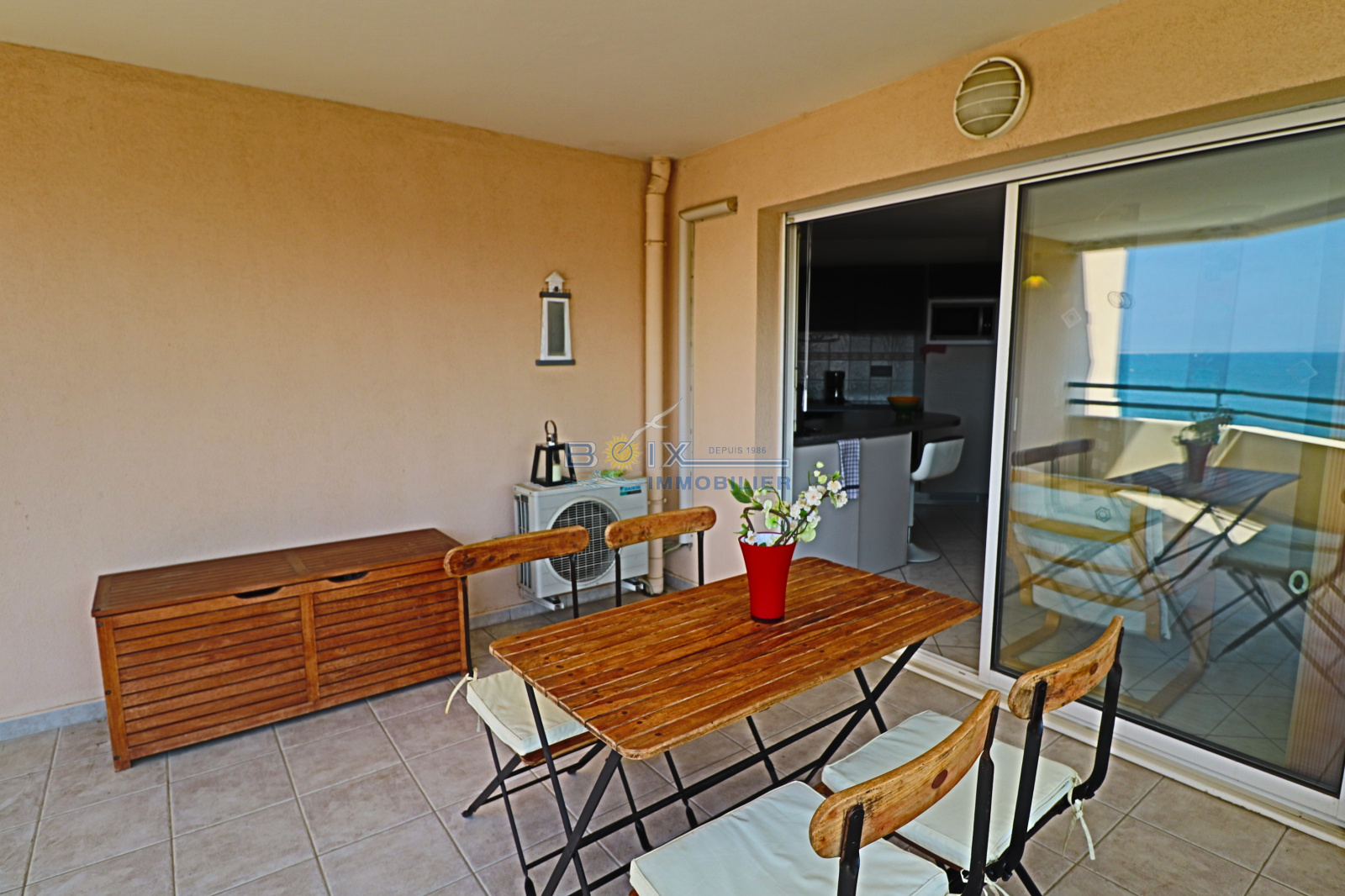 Vend appartement face mer à la Corniche SETE. Joli 2 pièces cabine très bien équipé, climatisé, vendu entièrement meublé avec goût, d'environ 40 m² habitable se composant d'un séjour avec cuisine équipée donnant accès sur une grande terrasse de 15 m² avec une magnifique vue sur la mer. La chambre a une penderie, le coin cabine est une petite chambre avec fenêtre. La salle de bains et les WC sont séparés. La résidence dispose d'une piscine, d'un local à vélos et d'un accès direct à la plage. Proche du centre de la Corniche et tous ses commerces, vous apprécierez l'emplacement du logement non seulement pendant la période estivale mais toute l'année . Renseignements et visites : BOIX Gérard, 04 67 51 50 50 ; infos@boix-immobilier.fr