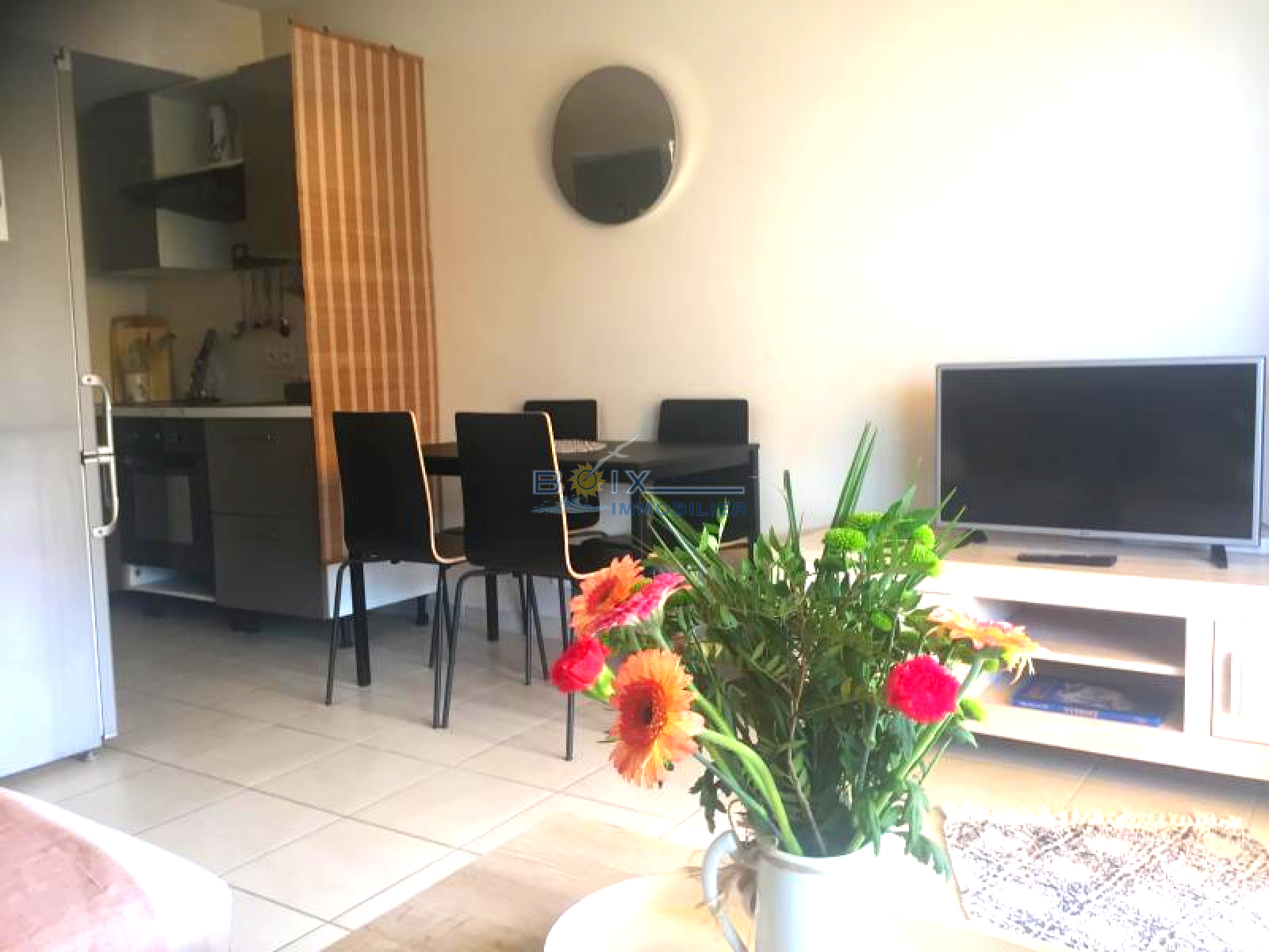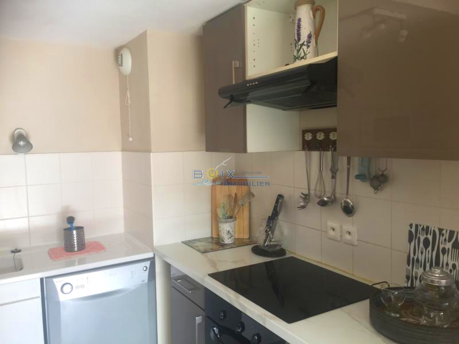 Vente T2 meublé quartier de Villeroy à Sète. Cuisine USA équipée séjour salon ouvrant