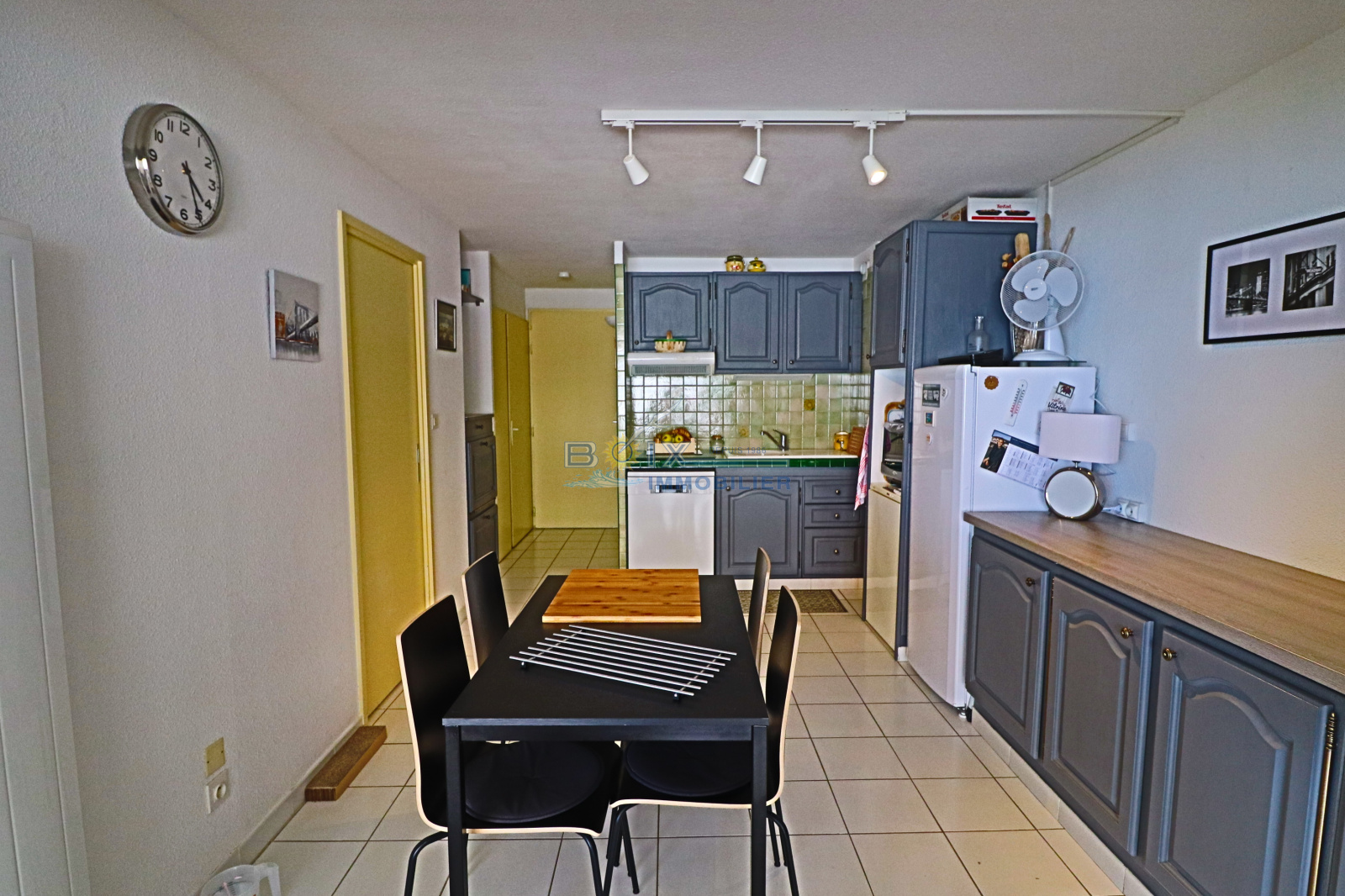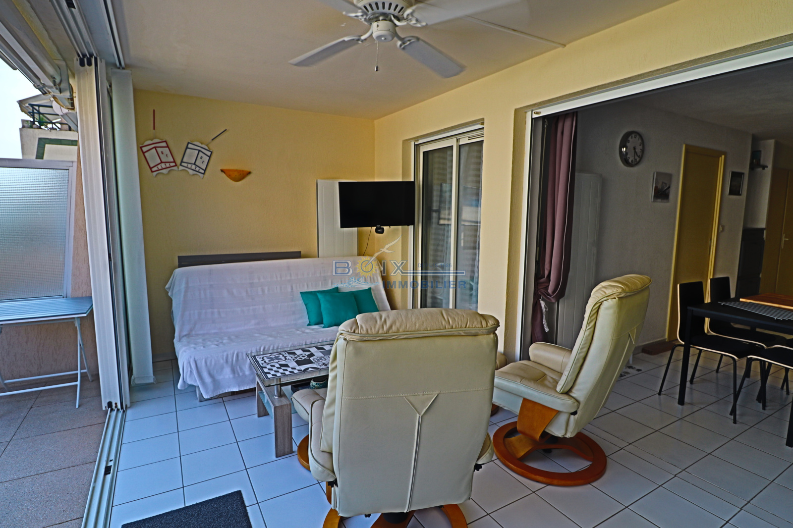 Vente appartement à la Corniche à Sète. Dans une résidence sécurisée près des plages et des commerces, spacieux 2 pièces cabine d'environ 43m² avec loggia fermée plus terrasse. Il se compose d'une entrée, d'un coin cabine avec fenêtre, accueillant deux lits superposés, d'une salle d'eau, d'un wc indépendant, d'une chambre avec placard et porte fenêtre donnant accès sur la loggia. Jolie terrasse d'environ 8m². Exposition sud-est, vous disposez d'une jolie vue sur la mer et la piscine. Vendu meublé et équipé. Aucun travaux à prévoir!!! Réf : 1035va