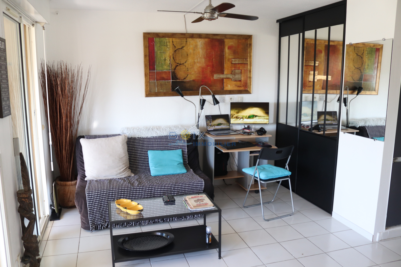 Vente appartement à la Corniche à Sète. Dans une résidence sécurisée près des plages et des commerces, 2 pièces cabine d'environ 34 m² avec terrasse confortable. . Il se compose d'une entrée, d'un séjour avec une moderner cuisine américaine avec tous les équipements, d'un coin cabine accueillant deux lits superposés, d'une salle d'eau avec lave linge, d'un wc indépendant, d'une chambre avec placard et porte fenêtre donnant accès sur la loggia. Jolie terrasse d'environ 12 m². Vendu meublé et équipé. Possibilité d'un garage en option. Réf : 1042va