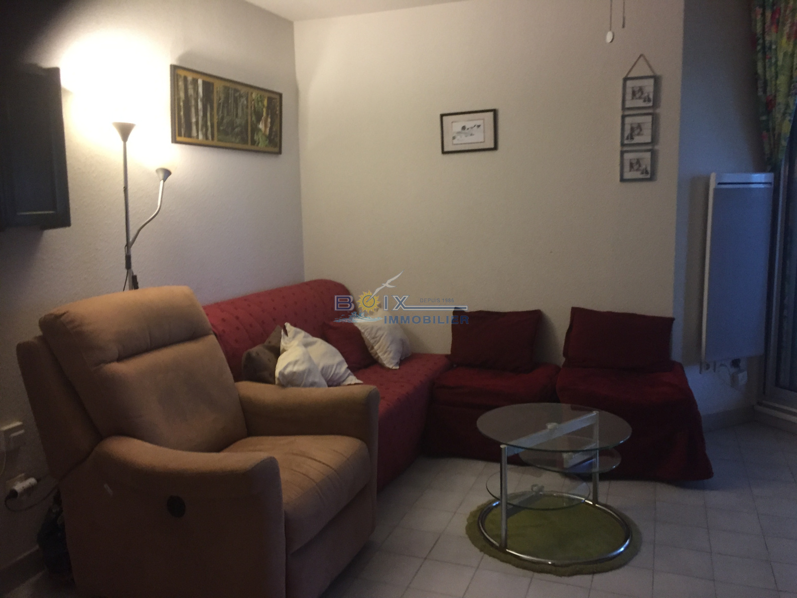 séjour, belle loggia, 1 chambre avec placards, salle d'eau, toilette. Parking en commun, résidence sécurisée