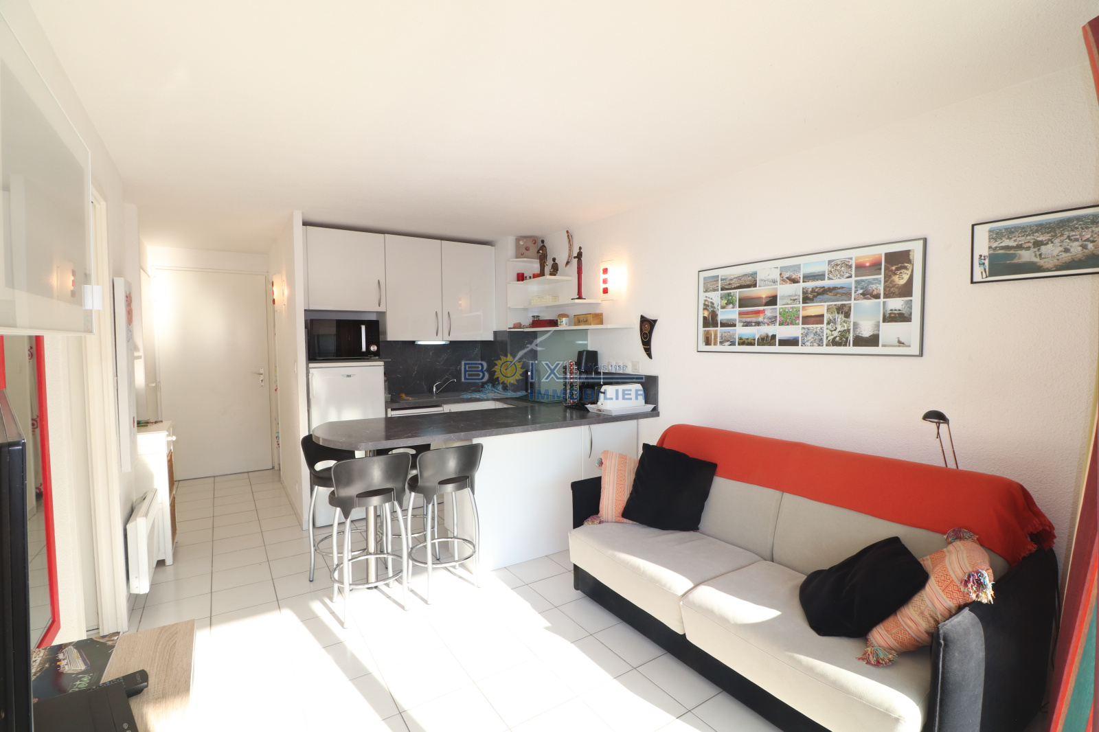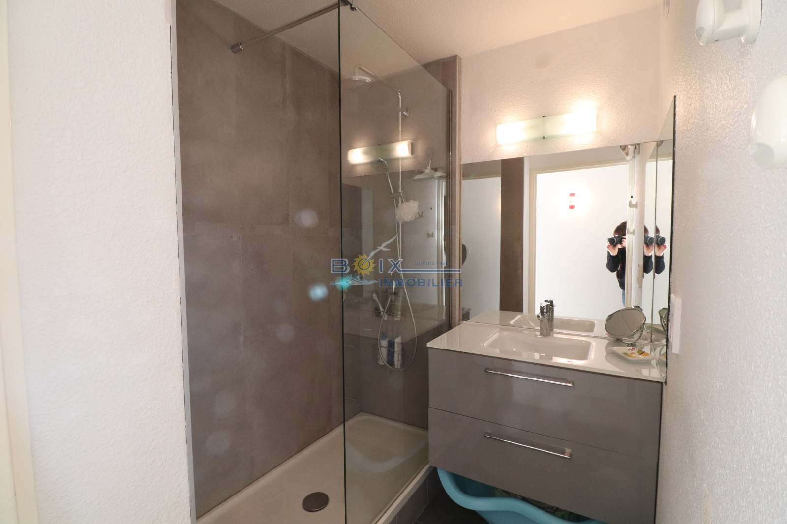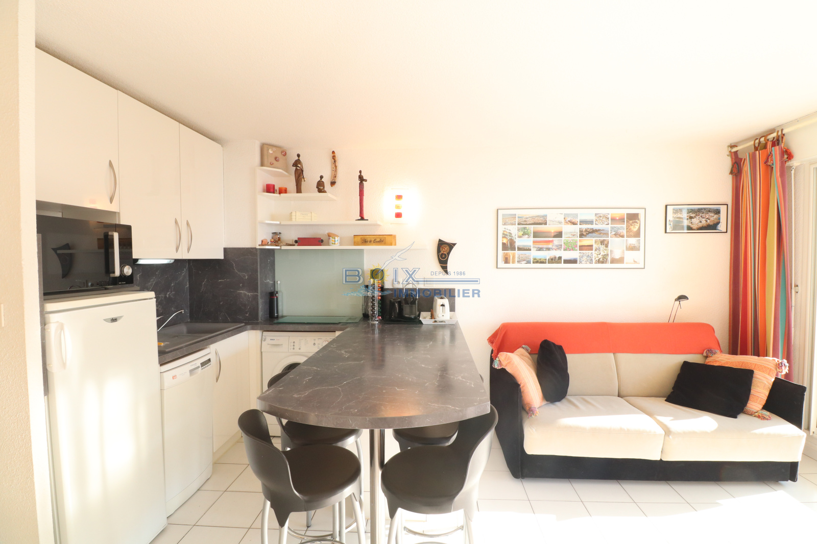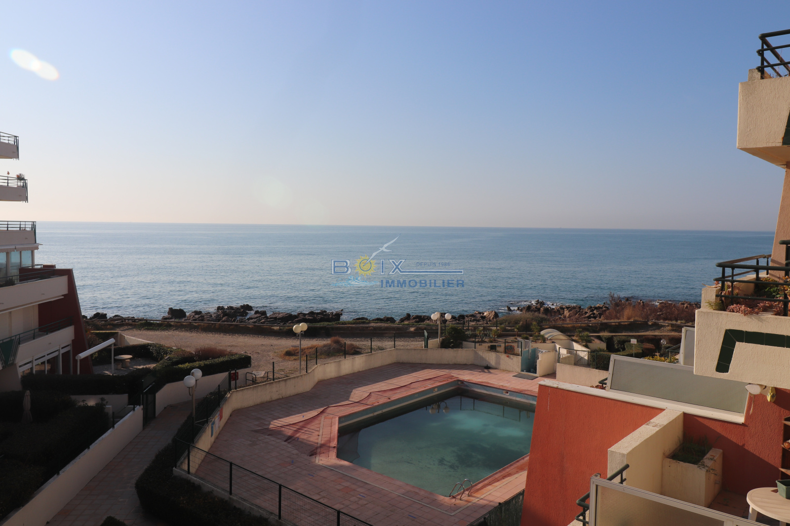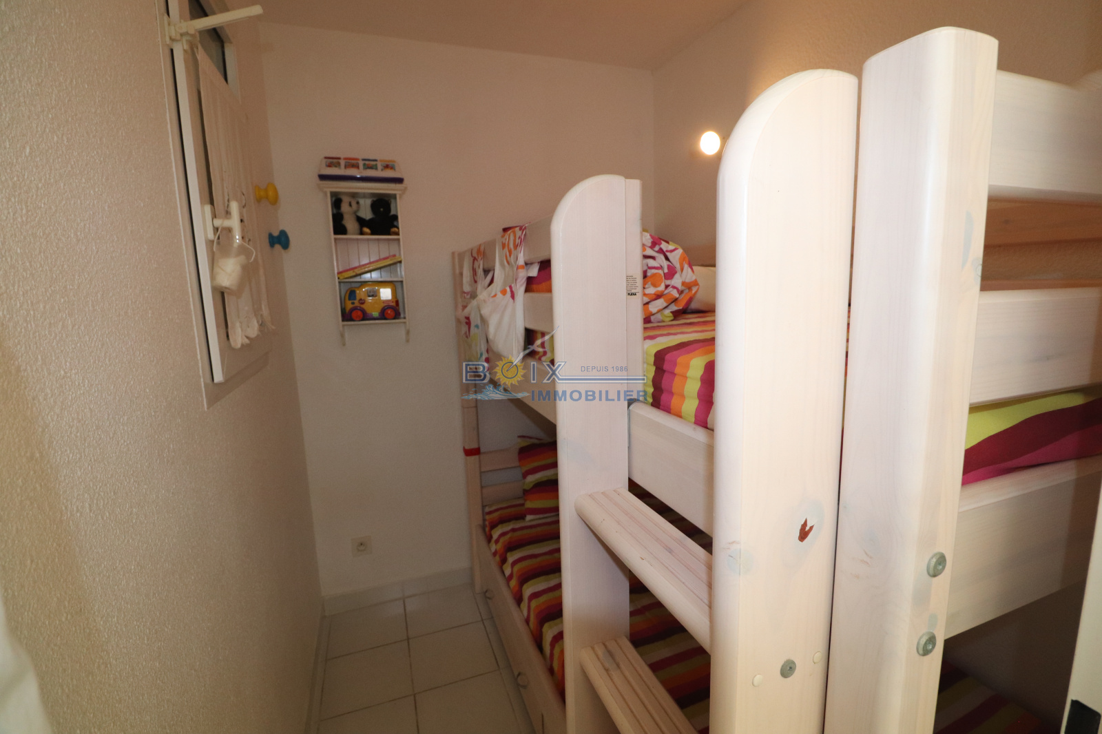 Vente appartement vue mer à la Corniche à Sète. Dans une résidence sécurisée près des plages et des commerces, 2 pièces cabine d'environ 31 m² plus loggia. Il se compose d'une entrée, d'un coin cabine avec fenêtre, accueillant deux lits superposés, d'une salle d'eau, d'un wc indépendant, d'une chambre avec placard et porte fenêtre donnant accès sur la loggia. Grande terrasse d'environ 14 m². Exposition sud-est, vous disposez d'une jolie vue sur la mer et la piscine. Vendu meublé et équipé, garage en option Réf : 1056va, renseignements et visites Gérard Boix, Boix Immobilier, infos@boix-immobilier.fr