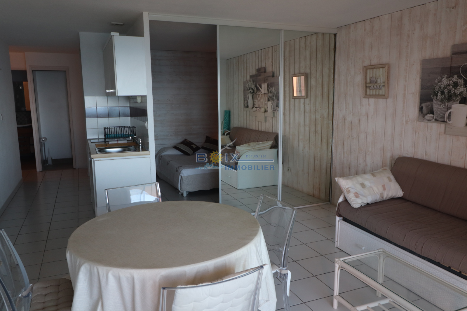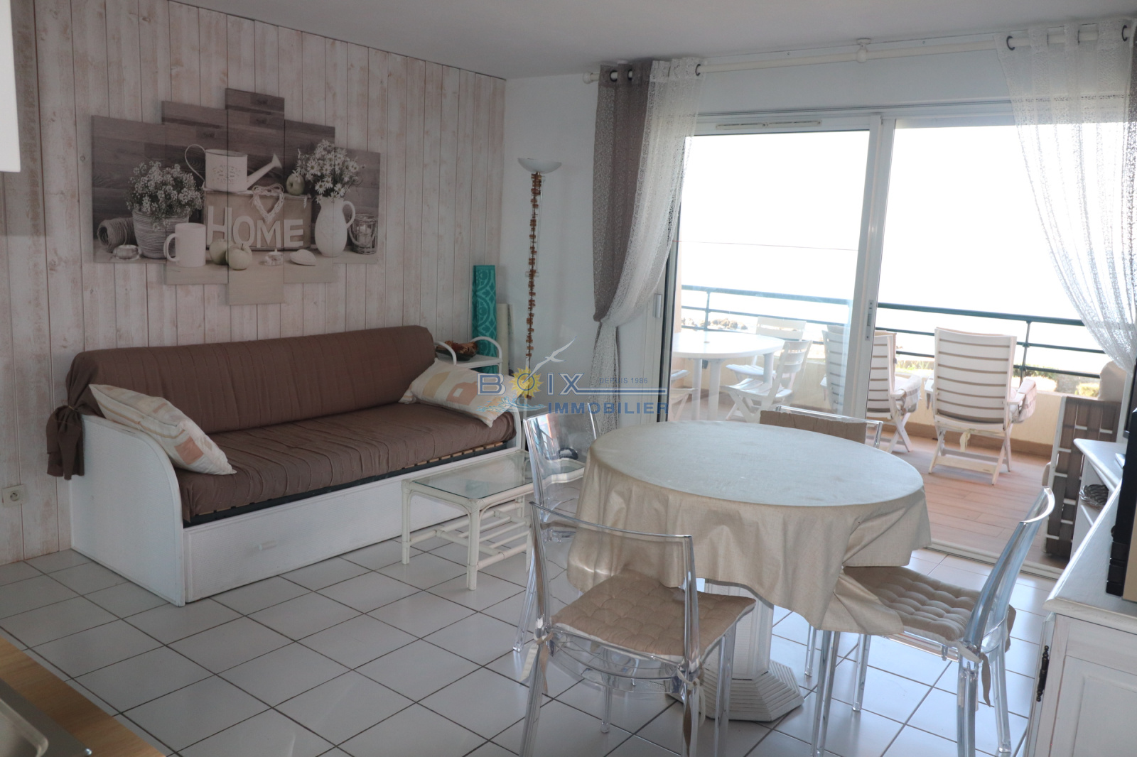 Vend à la Corniche à Sète, logement avec vue panoramique sur la mer. Ce logement de 37 m², loi Carrez; joliment décoré situé au premier étage comprend une entrée, séjour avec kichenette équipé , un coin nuit, salle d'eau, WC séparé, donnant sur une terrasse de 9,50 m² . Il est situé dans une résidence construite en 1ère ligne mer avec piscine. L'accès à la mer est direct, les commerces ouverts à l'année sont environ à 300 m. Possibilité de garage en option. Renseignements et visites, Gérard Boix 04 67 51 50 50,