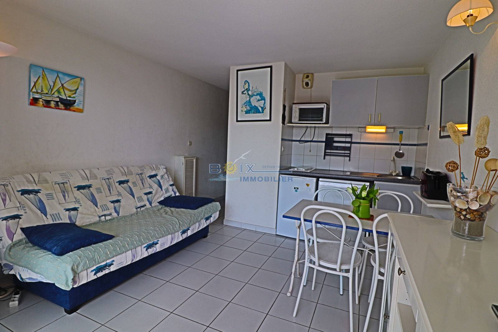Vente appartement vue mer à la Corniche à Sète. Dans une résidence sécurisée avec piscine, joli 2 pieces d'environ 27m² habitable plus loggia. Il se compose d'une chambre avec placards, d'une salle de bains, d'un wc indépendant et d'un séjour avec kitchenette équipée. Vendu meublé. Parking commun dans la résidence. Visite et renseignements : BOIX Gérard, 04.67.51.50.50 ; infos@boix-immobilier.fr