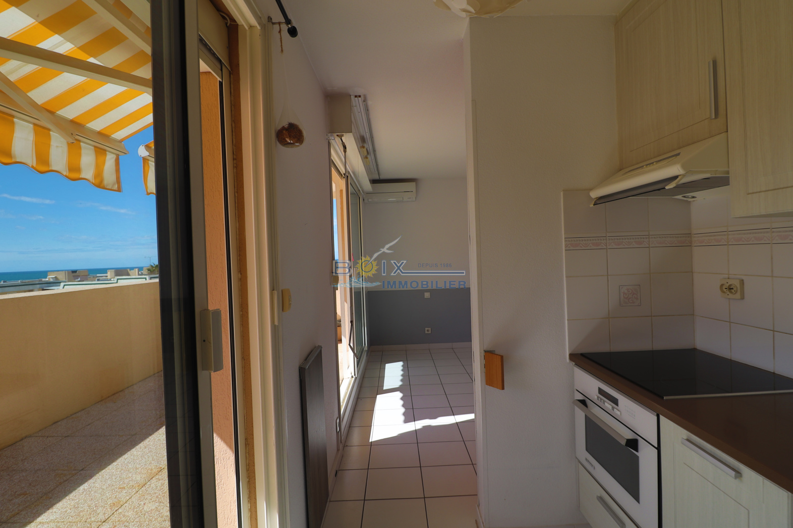 Vend deux pièces situé au dernier étage en deuxième ligne mer. Ce logement bien conçu se compose d'un séjour avec cuisine à l'amércaine ouvrant sur une terrasse ensoleillée, d'une chambre, d'une salle d'eau, WC rangement. D'une surface habitable de 37 m², vous apprécierez le volume et l'orientation des pièces exposées Sud. Le garage en option est accessible depuis l'ascenseur. Cette résidence calme, occupée par des habitants à l'année a été construite en bord de mer et proche du Centre de la Corniche, 250 m environ, et de tous ses commerces. Arrêt de bus à 150 m. Renseignements et visites, Gérard Boix, Boix Immobilier 04 67 51 50 50