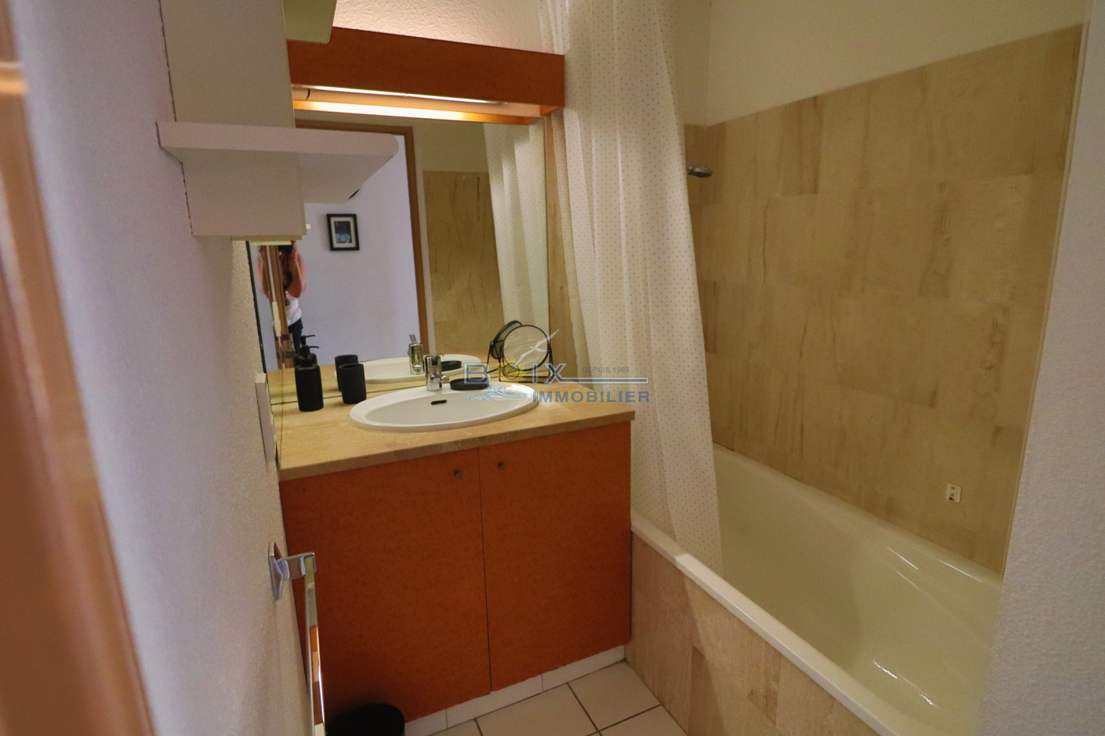 Vend deux pièces cabine avec vue mer et le littoral à la Corniche à Sète. Ce logement est situé dans une résidence avec piscine édifiée au bord de la plage avec un accès direct. Il est composé d'une entrée, d'une cabine pouvant recevoir deux lits superposés, d'un séjour avec kitchenette équipée et d'une chambre ouvrant sur une terrasse de 12 m², d'une salle de bains, d'un WC, placards. Garage en option. Vous apprécierez sa situtation exceptionnelle en bord de mer mais et la convivialité et la qualité de vie de ce quartier animé toute l'année. Proche de tout, vous pourrez rejoindre vos points d'intérêts en empruntant la piste cyclable de la Corniche. Renseignements et visites Gérard Boix , Boix Immobilier, 04 67 51 50 50.