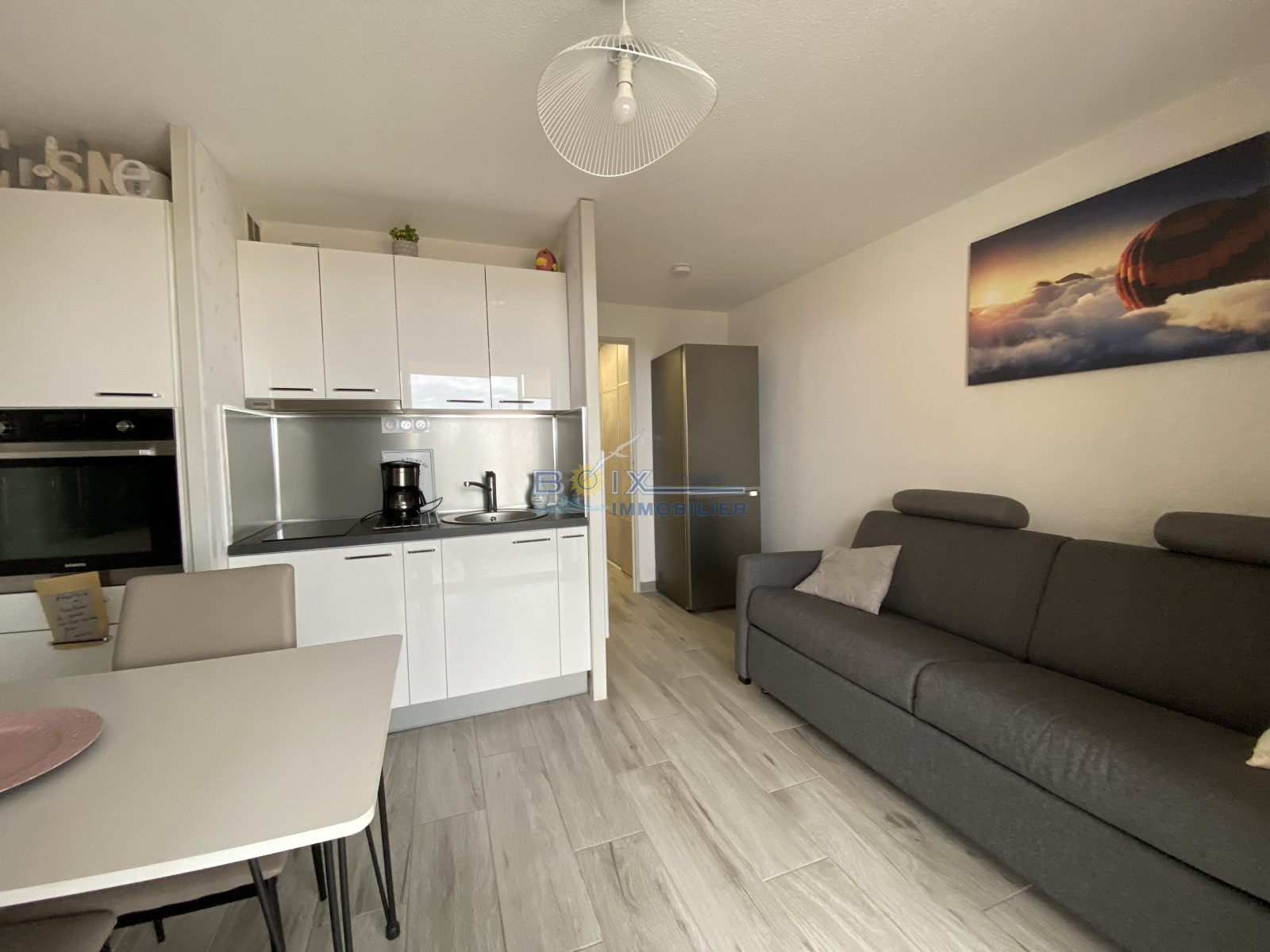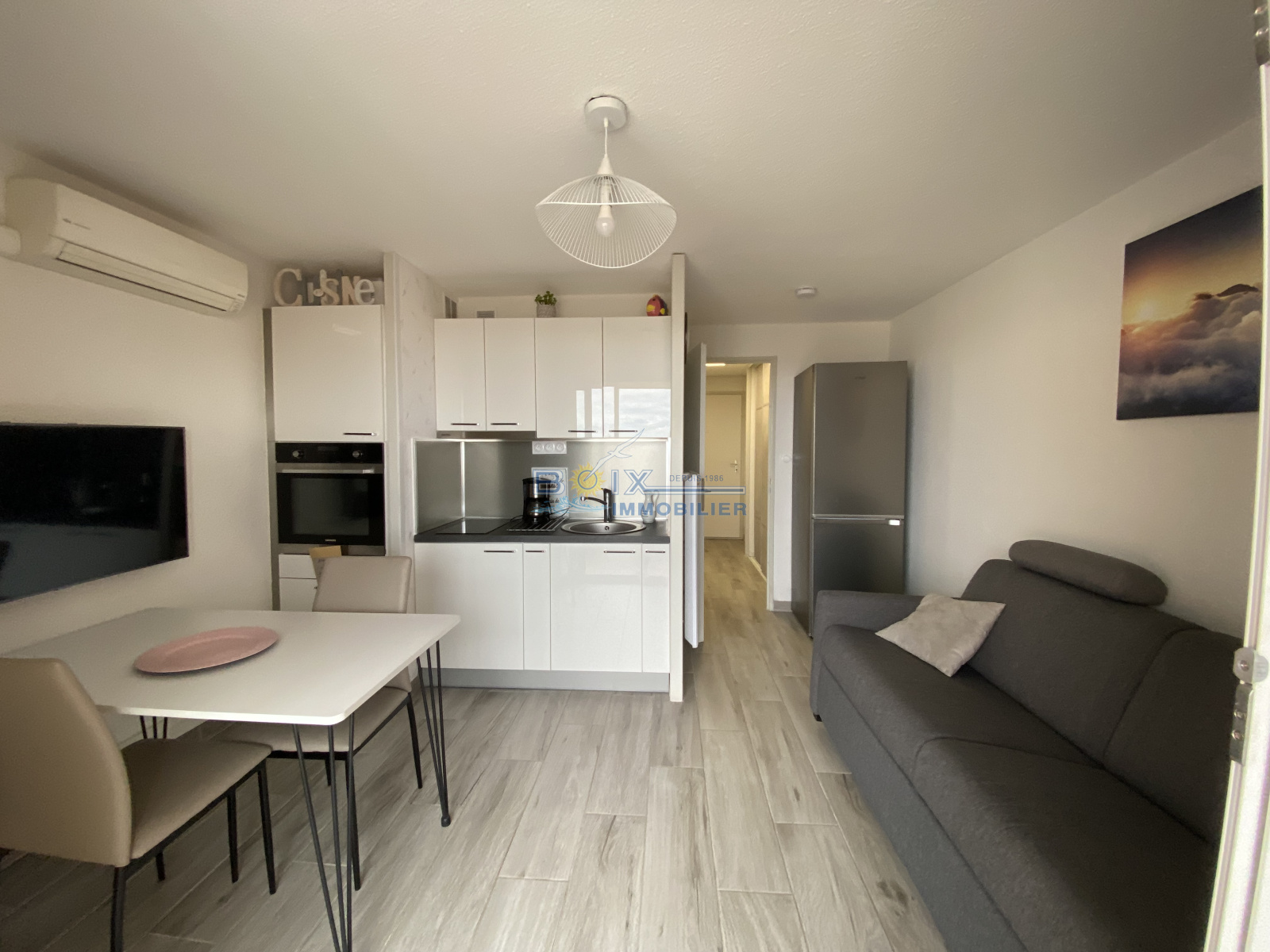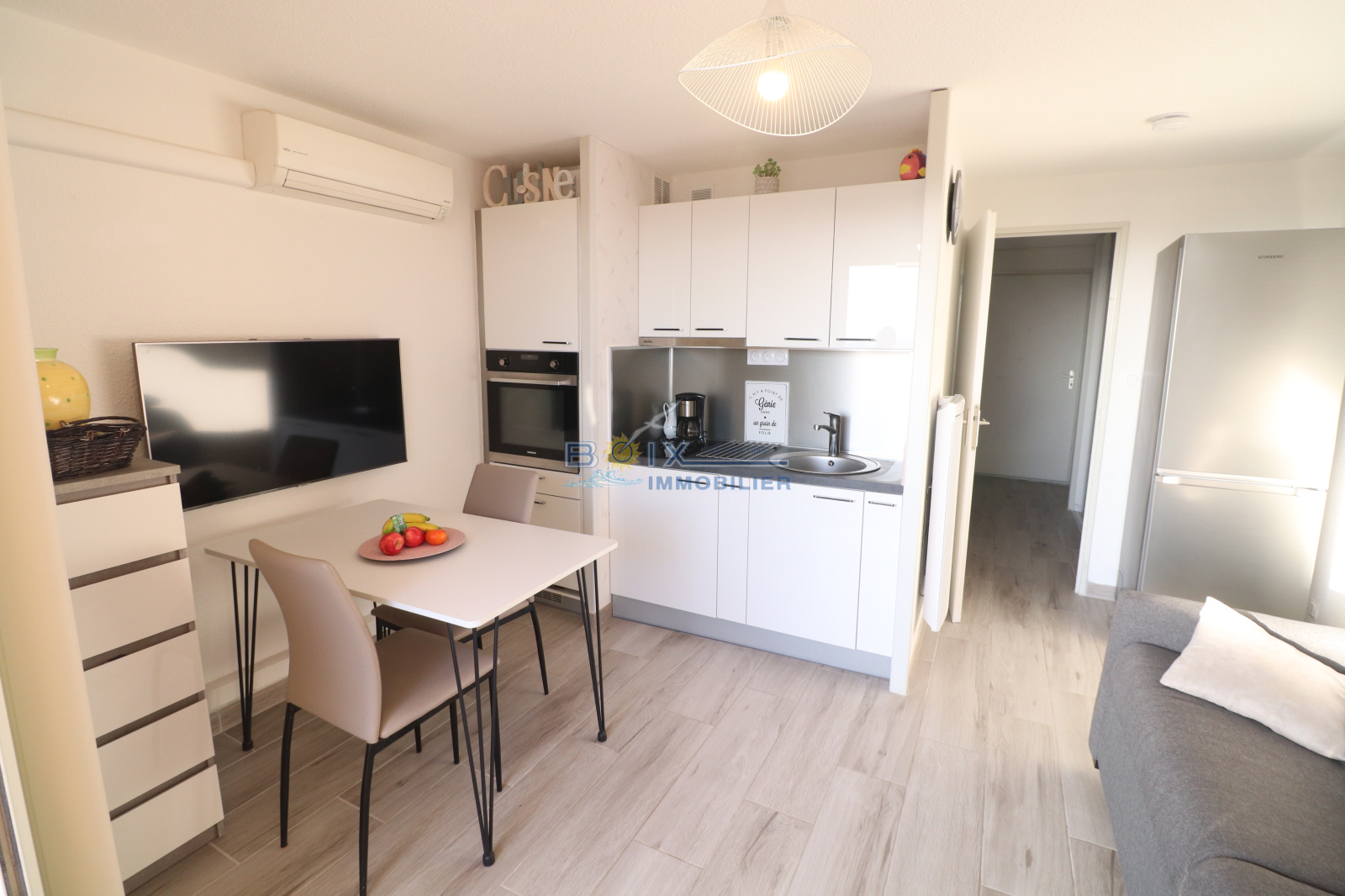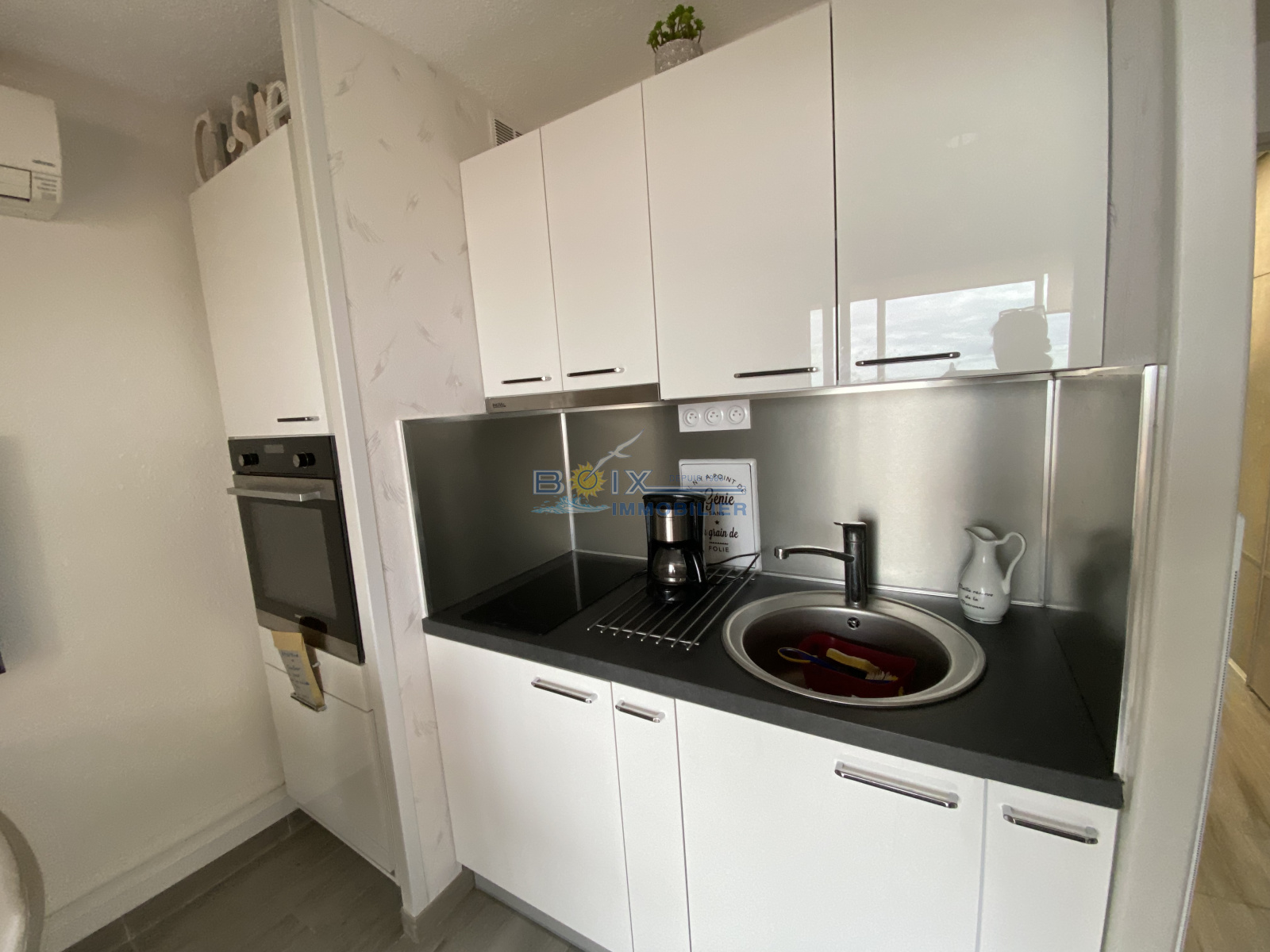 Vend à la Corniche, deux pièces meublé et entièrement rénové avec de belles prestations, climastisation, salle d'eau-WC refaite, cuisine américaine, baies vitrées neuves, penderies, chambre. Ce logement situé au 4ème étage avec ascenseur est exposé plein Sud avec une très jolie vue. Vous apprécierez la loggia fermée et le paking privatif sécurisé. A visiter sans tarder. Boix Immobilier 04 67 51 24 43