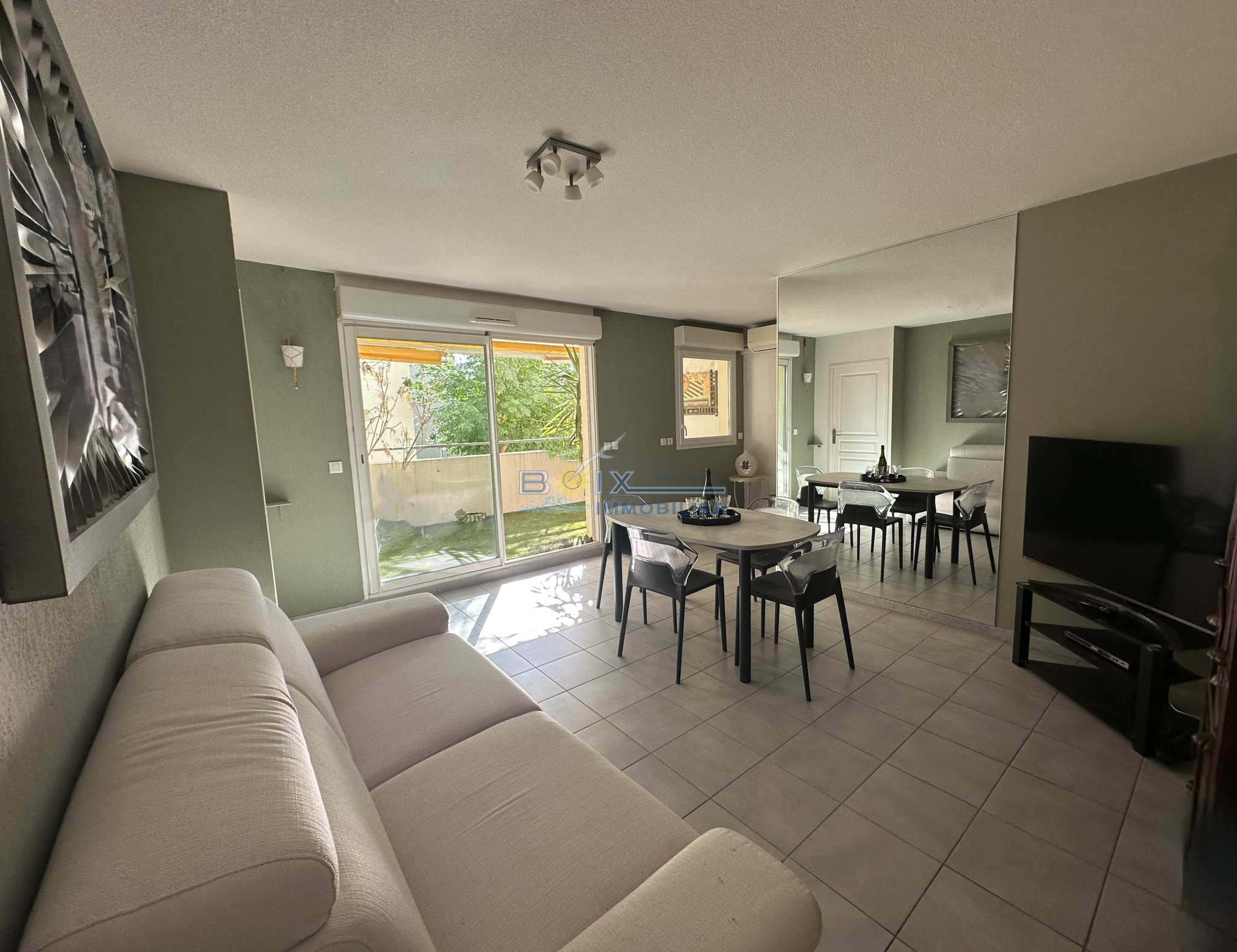 Vente 2 pièces quartier de Villeroy à Sète. A 100M de la mer. Composé: hall d'entrée, cuisine USA équipée séjour, suite parentale avec salle de bains, belle terrasse de 10M2 sans aucun vis à vis donnant sur le jardin. Vendu avec garage, meublé.Dans belle résidence standing avec ascenseur et piscine au milieux d'un magnifique parc arboré.