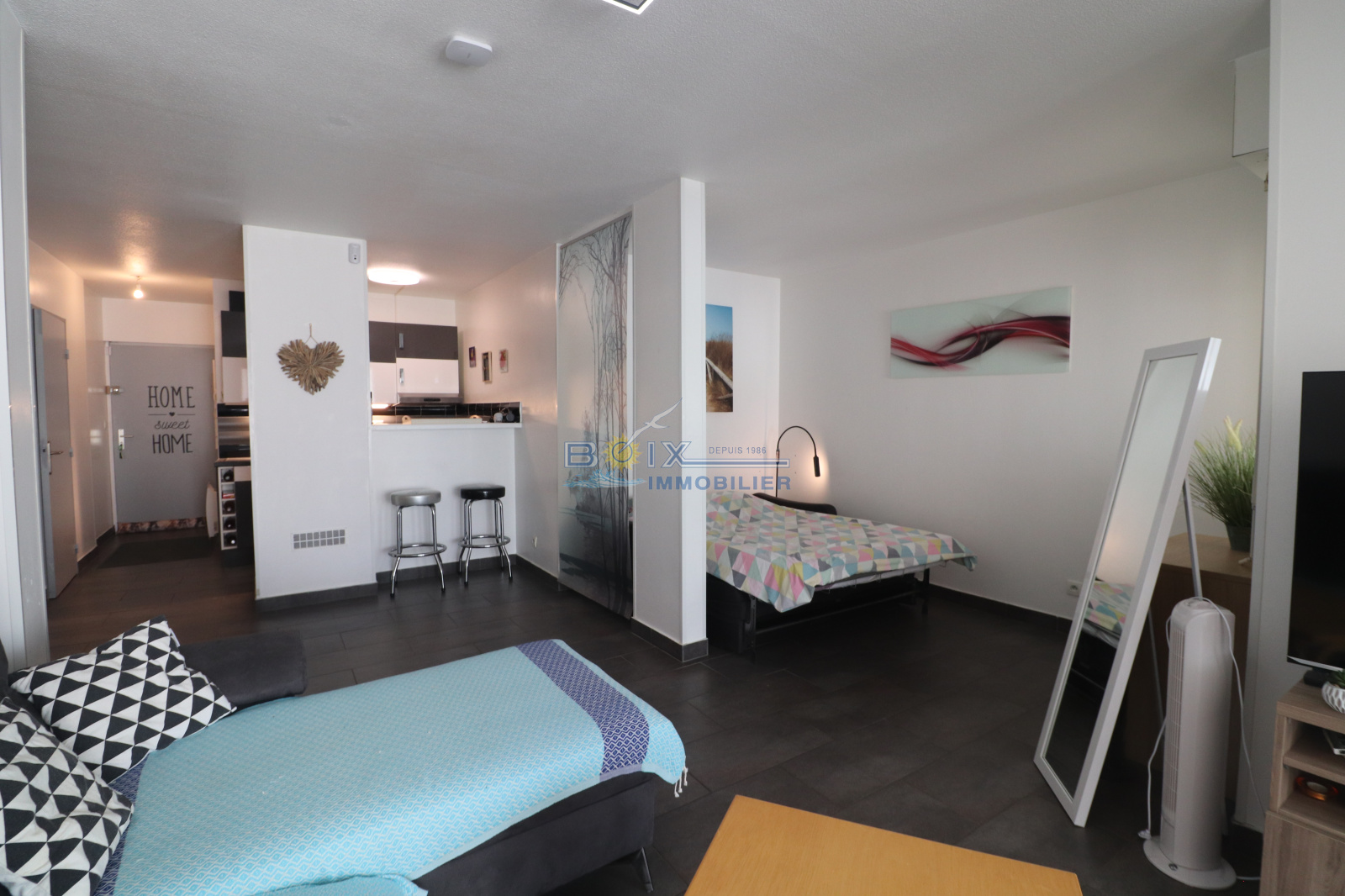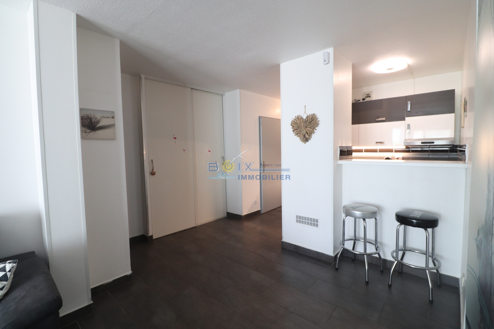 À vendre - Appartement contemporain à Sète, La Corniche Ne manquez pas ce superbe appartement de deux pièces avec cabine, idéalement situé au bord de la plage du Lazaret. Avec de grands volumes, cet appartement offre un séjour/salon confortable et fonctionnel, une cuisine équipée ouvrant sur une terrasse/loggia spacieuse de 19 m². Il dispose également d'une chambre spacieuse, d'une cabine meublée avec lits superposés et fenêtre, d'une salle d'eau rénovée et de WC séparés. Parfait pour des vacances en bord de mer, cet appartement peut également convenir pour une résidence principale. Pour plus d'informations ou pour organiser une visite, contactez Gérard Boix chez Boix Immobilier au 04 67 51 50 50.