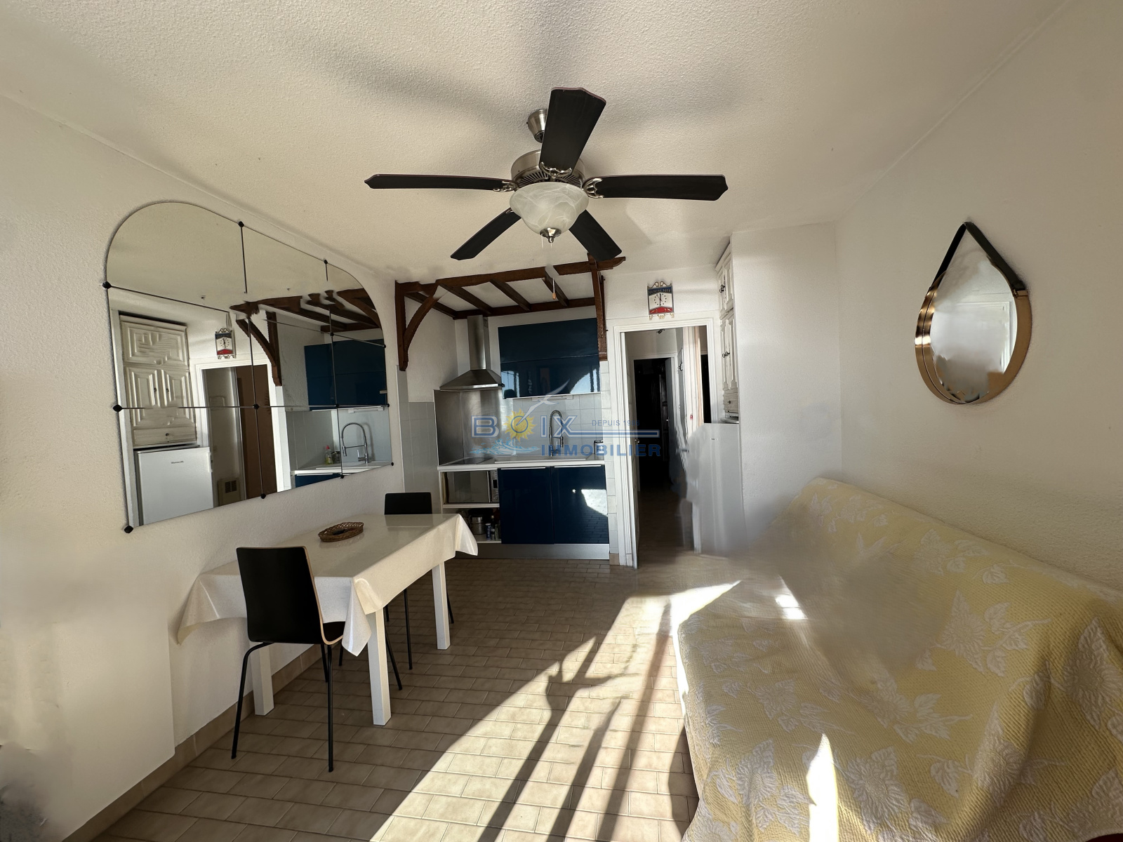Vente coeur des Quilles à Sète. Situé en première ligne, ce joli appartement T2 SH 29M2 offre un cadre agréable et fontionnel.Il se compose d'une kitchenette ouverte sur le séjour/salon,d'une chambre lumineuse,d'une loggia idéale pour profiter de l'extérieur ,ainsi qu'un parking privé.Vendu meublé.