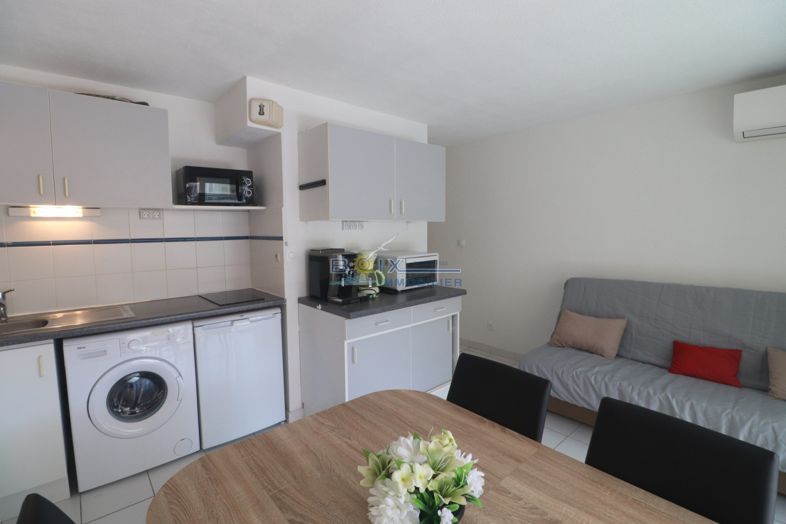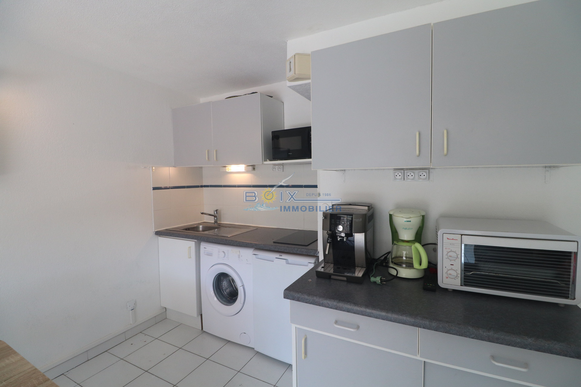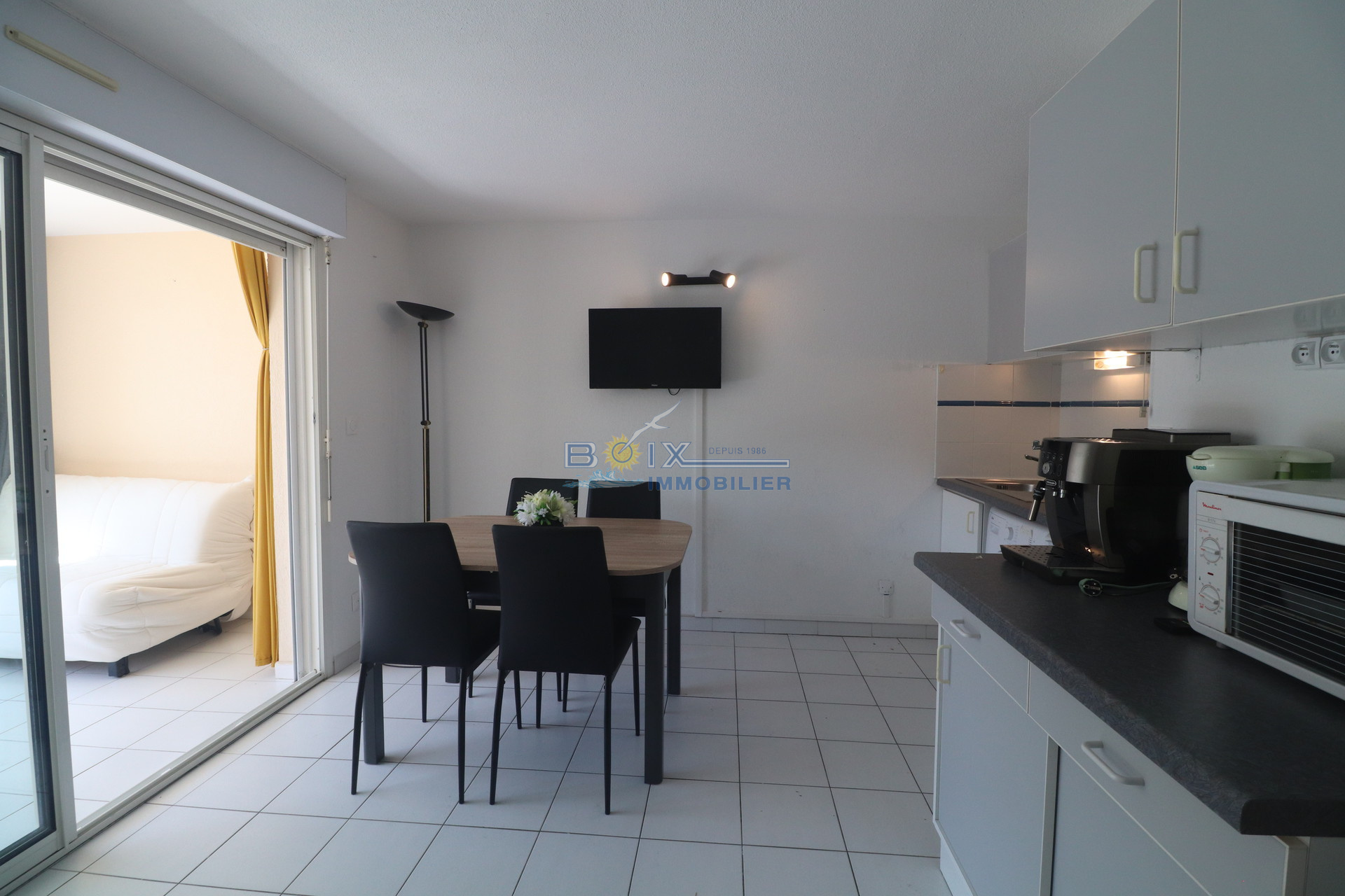 Vente appartement vue mer à la Corniche à Sète. Dans une résidence sécurisée avec piscine, joli 2 pieces de 29 m² habitable environ plus loggia fermée de 11 m² plus terrasse. Il se compose d'une chambre avec placard,, d'une salle de bains, d'un wc indépendant et d'un séjour avec une kitchenette équipée.. Visite et renseignements : BOIX Gérard, 04.67.51.50.50 ; infos@boix-immobilier.fr