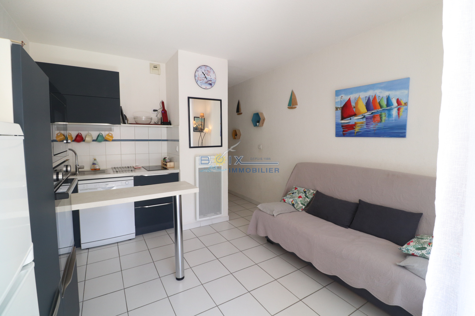 À vendre : Joli 2 pièces avec vue mer, résidence avec piscine et accès direct à la plage. Situé au 1er étage, cet appartement 2 pièces vous séduira par sa vue imprenable sur la mer et son environnement privilégié. Dès l’entrée, vous découvrirez une pièce de vie lumineuse ouvrant sur une loggia de 10m² exposée Est, idéale pour profiter du soleil levant et de la douceur du climat dès le matin. La cuisine récente, entièrement équipée, ravira les amateurs de gastronomie et offre un espace fonctionnel et moderne. La chambre, calme et confortable, bénéficie également d’un placard. La salle d’eau, entièrement rénovée apporte une touche contemporaine et élégante à l’ensemble. La résidence sécurisée dispose d’une superbe piscine, d’un accès direct à la plage ainsi que d’un parking commun, offrant un confort de vie exceptionnel. Proche des commodités et des plages, cet appartement est idéal en résidence principale, secondaire ou pour un investissement locatif. Une opportunité rare à visiter sans tarder ! Pour toute visite: Gérard Boix - Boix Immobilier 04.67.51.50.50 ou infos@boix-immobilier.fr