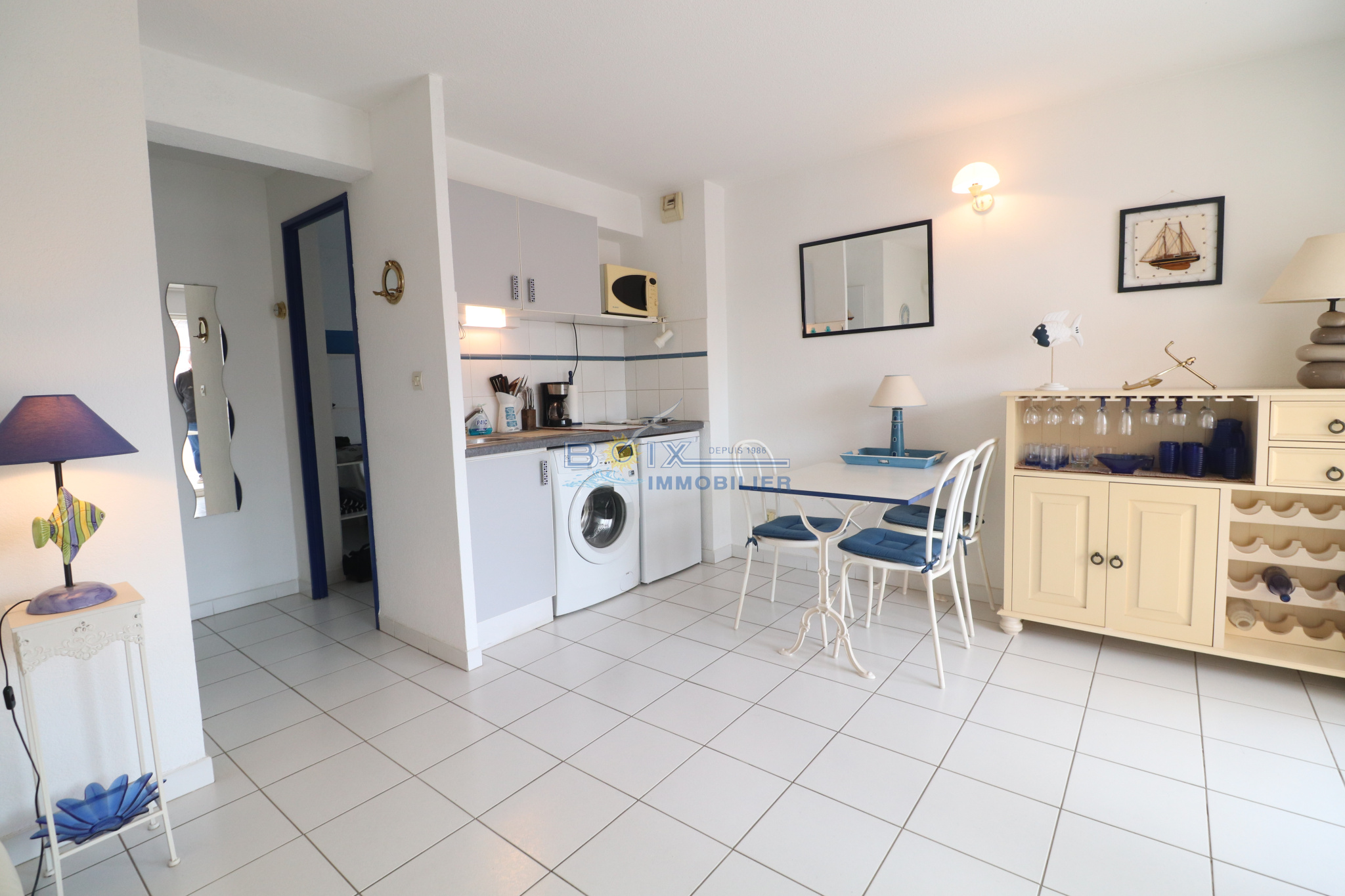 Vend appartement à la Corniche à Sète. Dans une résidence sécurisée, joli 2 pièces de 28m² habitable au 4ème étage avec ascenseur. Il se compose d'un séjour avec kitchenette équipée o, d'une chambre avec placard et fenêtre, d'une salle d'eau, d'un wc et d'une loggia.Possibilite de garage privatif en option. Résidence avec piscine et accès direct à la mer, commerces du centre de la Corniche à proximité proche; Accès au parking commun de la résidence. Contact et visite : BOIX Gérard, 04.67.51.50.50 - infos@boix-immobilier.fr