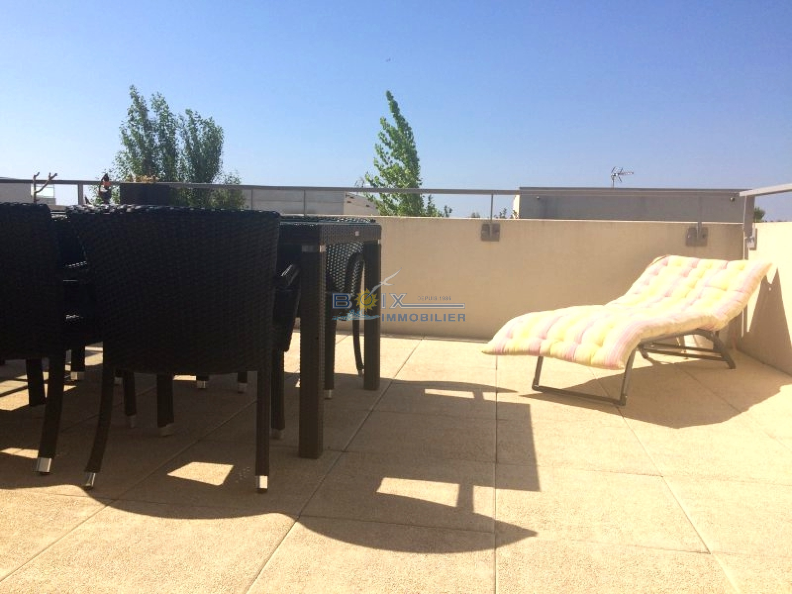 donnat sur une terrasse de 20 M2, 2 chambres , salle de bains , possibilité de garage.Dans belle résidence standing