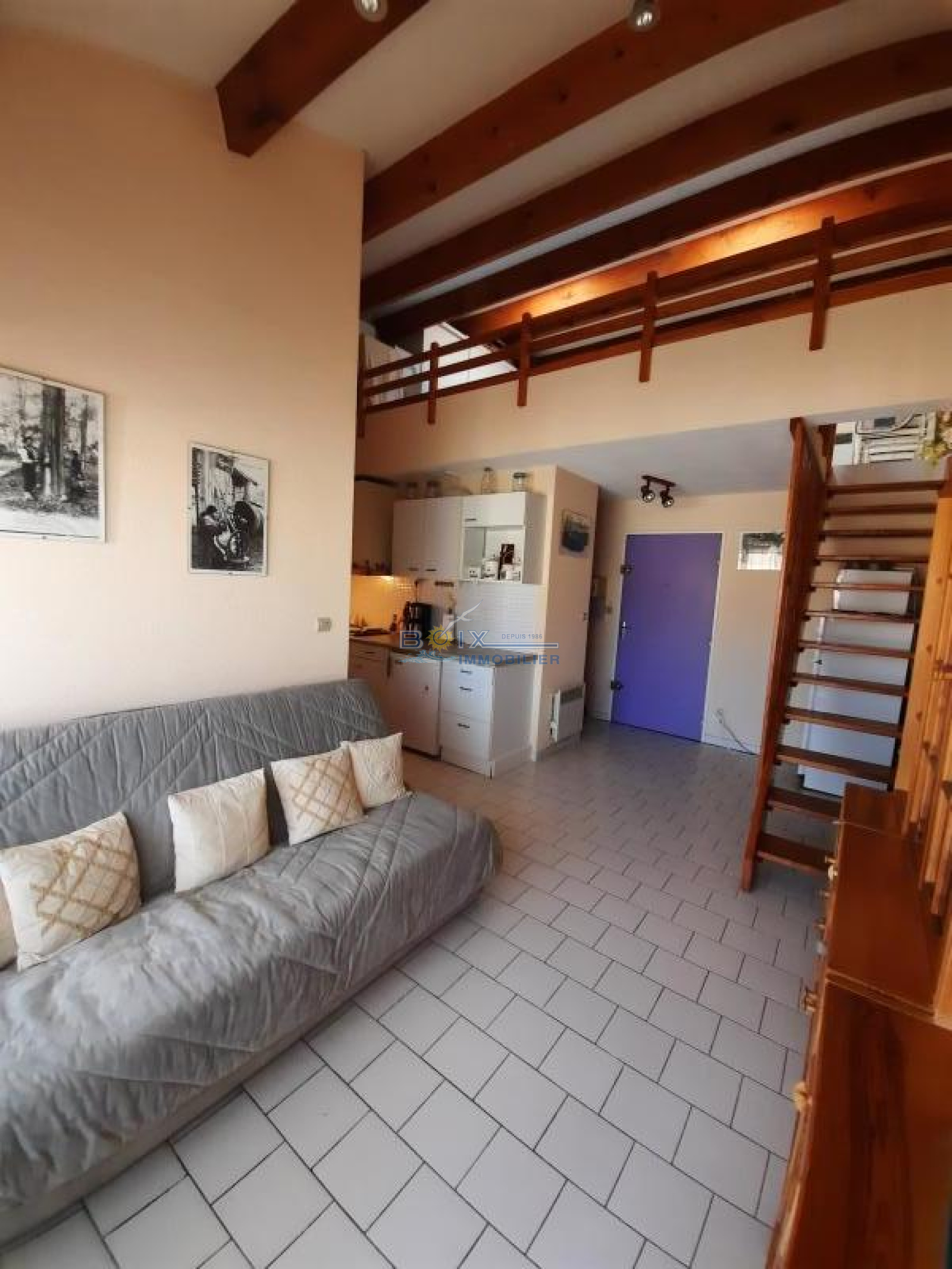 cuisine équipée ouverte sur le séjour et salon , 1 chambre, salle de bains, toilette,