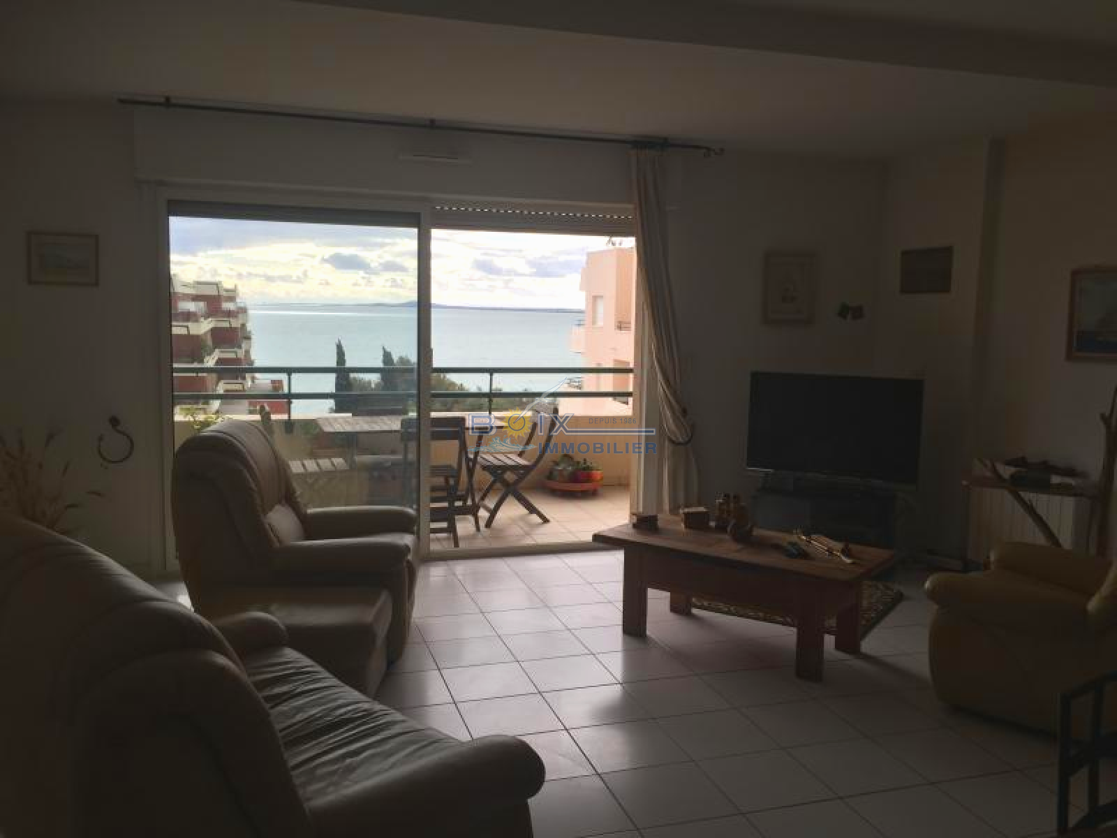 Vend appartement à Sète à la Corniche en bord de plage et proche du centre de la Corniche. Dans une résidence avec ascenseur, ce logement de 5 pièces situé à l'avant dernier étage dispose d'un spacieux séjour/salon de 35 m² ouvrant sur une terrasse Sud/ouest avec vue mer. La cuisine équipée est séparée. Toutes les pièces du logement donnent sur une terrasse. Il propose deux salles d'eau et un wc. Situé en angle, traversant cet appartement bénéficie d'un très bon ensoleillement et des vues sur la mer et sur le Mont St Clair. Vendu avec garage et cellier. Renseignements et visites : Gérard BOIX - 04 67 51 50 50, infos@boix-immobilier.fr.